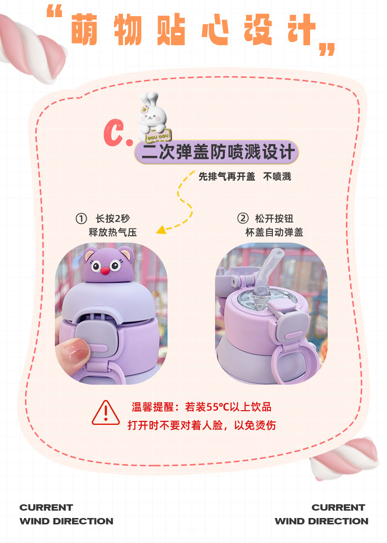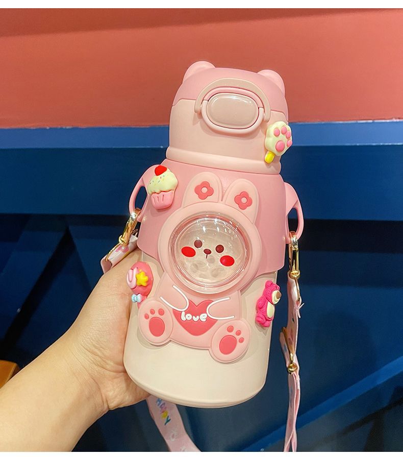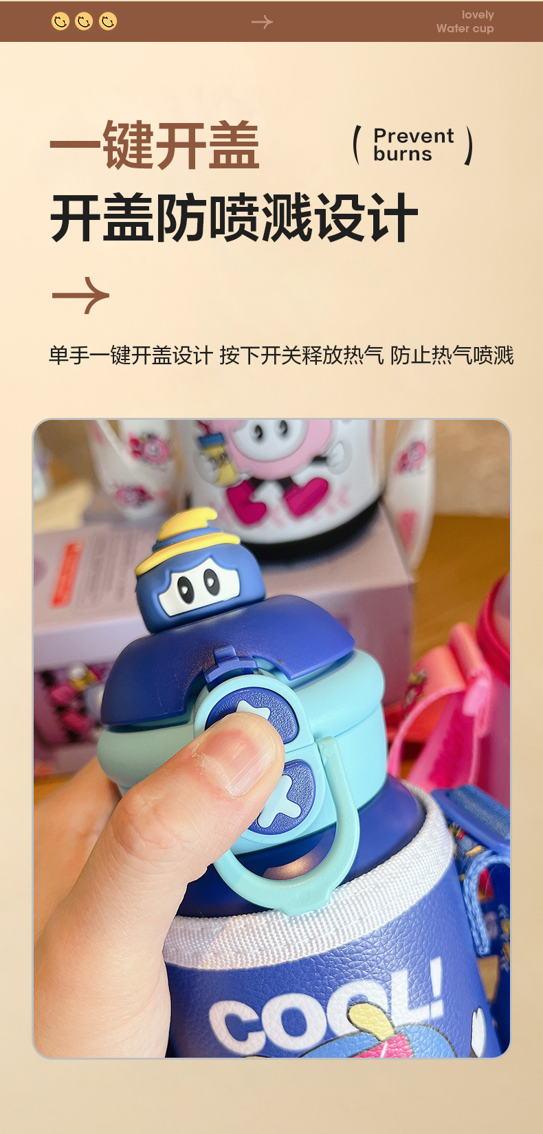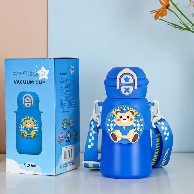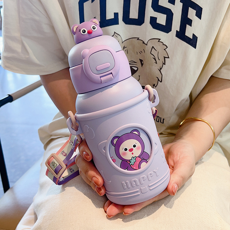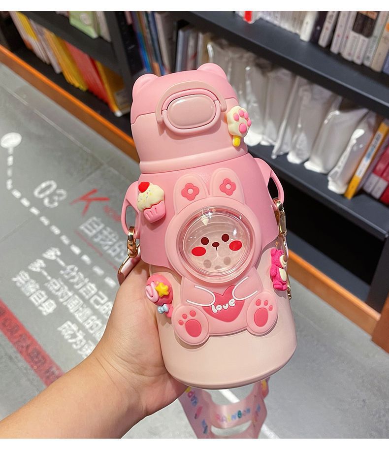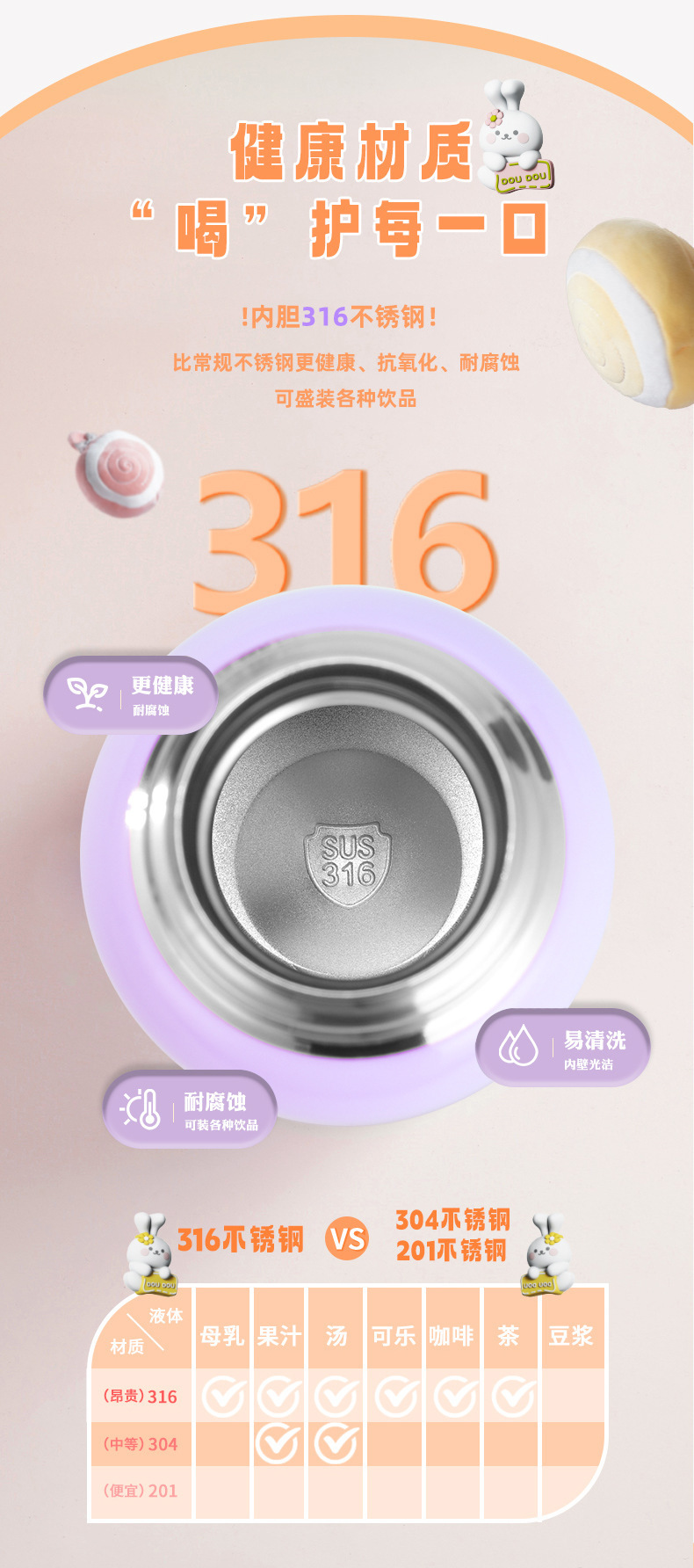 귀여운 재미 어린이 진공 컵 316 스테인레스 스틸 식품 학년 물 컵 만화 휴대용 학생 어린이 밀짚 컵