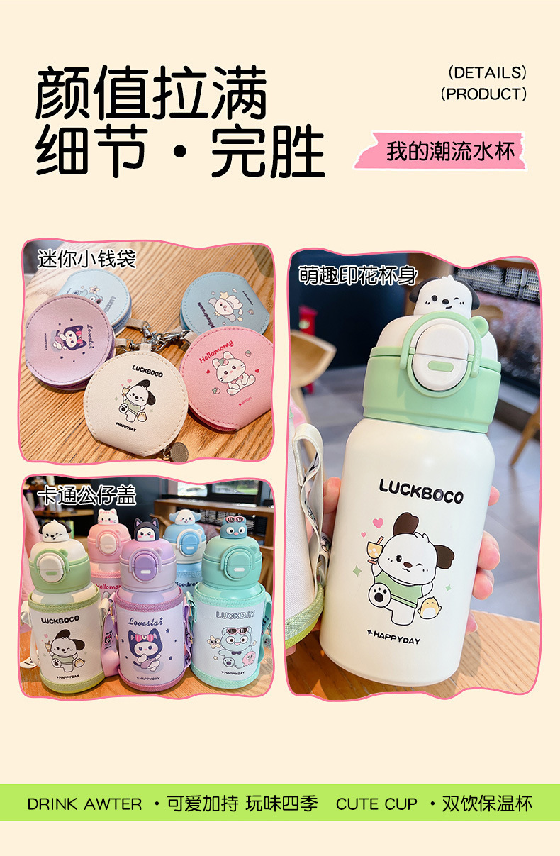 귀여운 재미 어린이 진공 컵 316 스테인레스 스틸 식품 학년 물 컵 만화 휴대용 학생 어린이 밀짚 컵스토어 가기