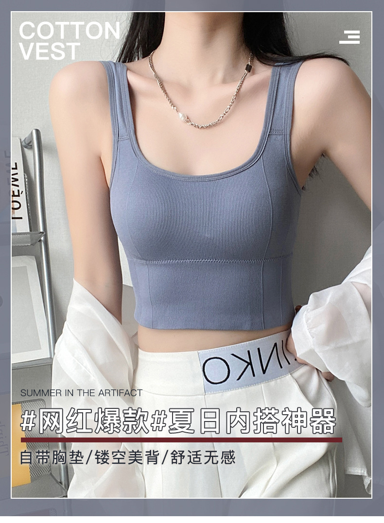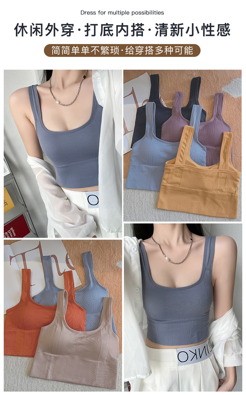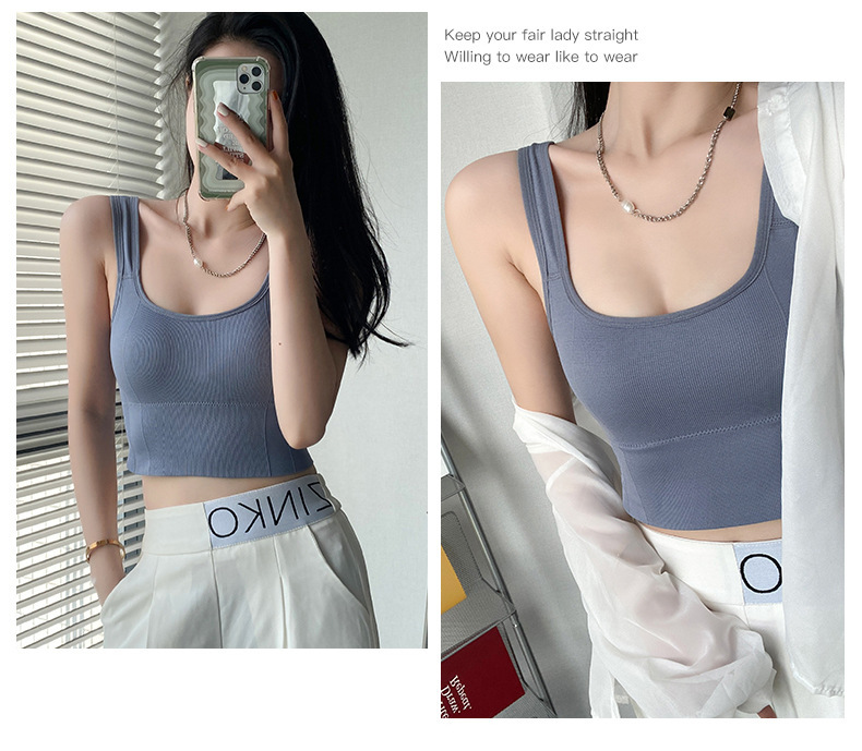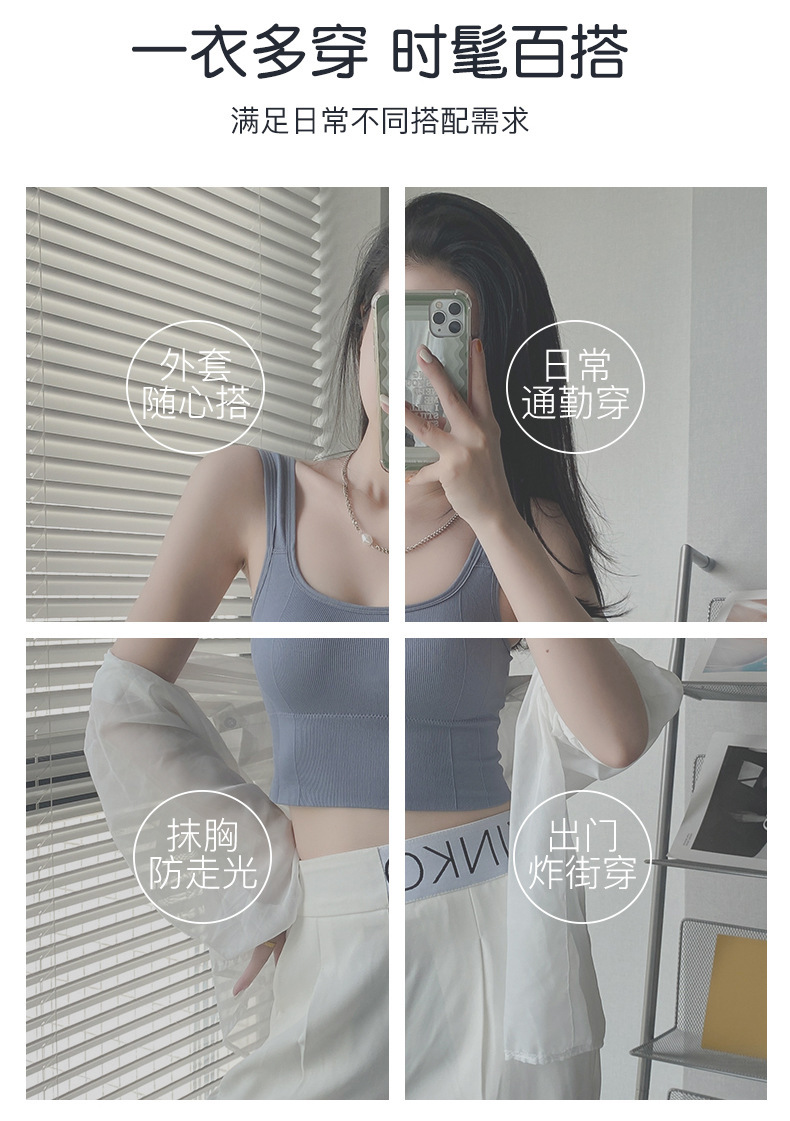 우아한 칼라 뷰티 백 조끼 U 자형 슬링 포장 가슴 패드로 완벽하게 포장 된 가슴 패드는 스틸 링 스포츠 소녀 받침대가 외부에서 착용 할 수 있습니다.스토어 가기