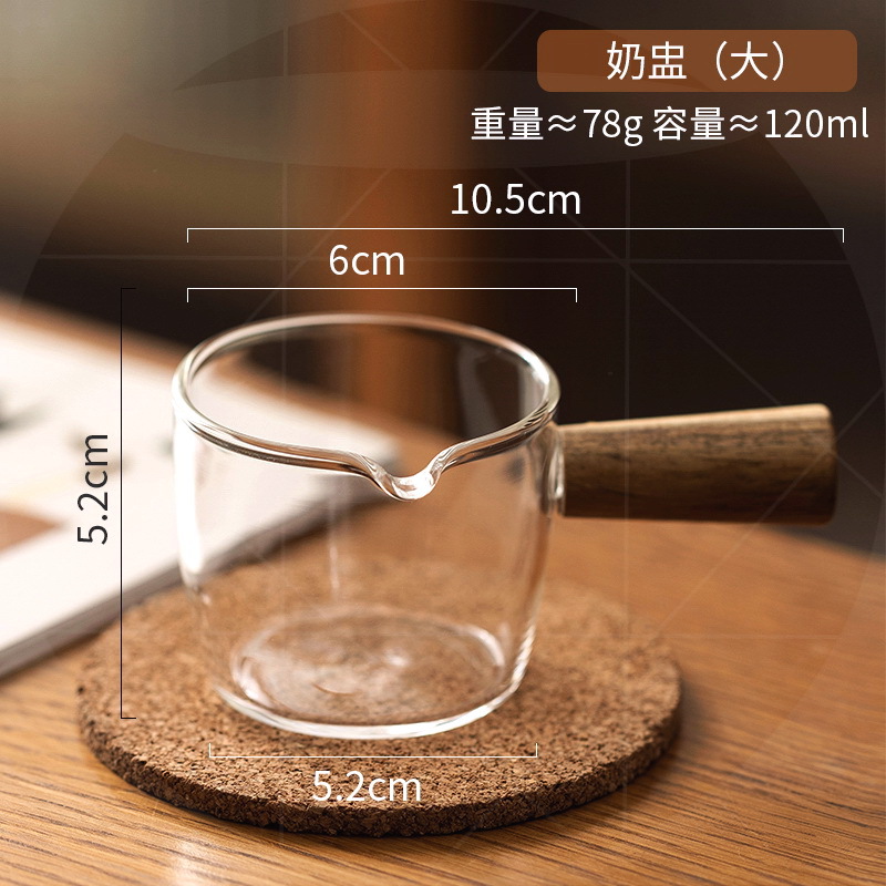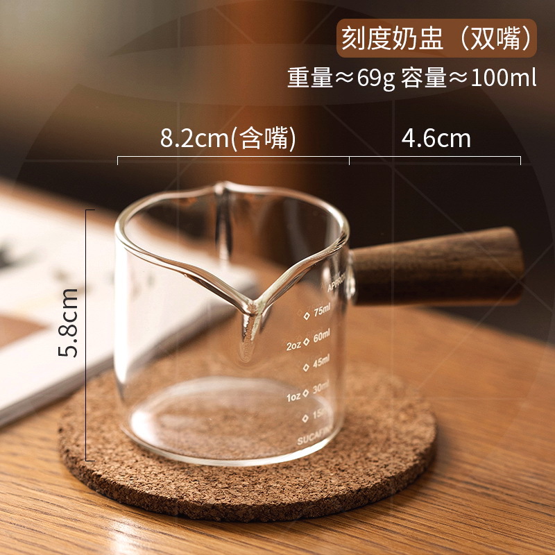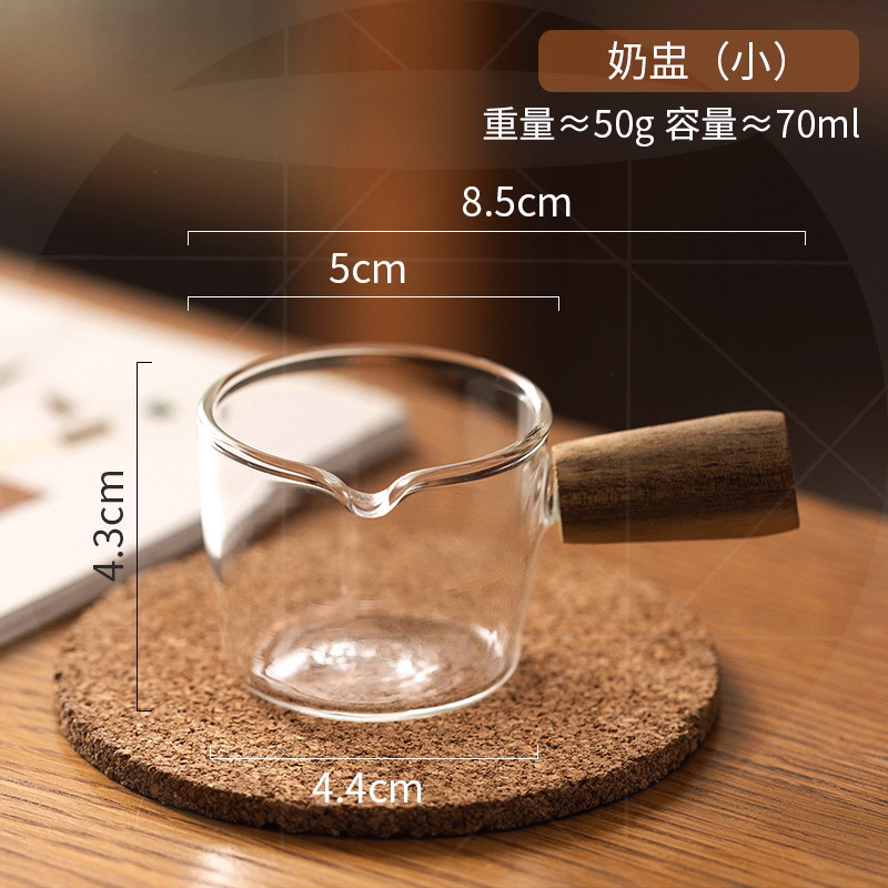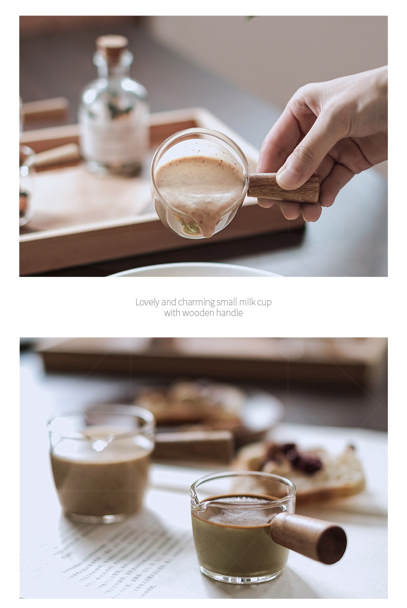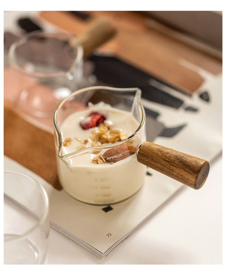 도매 내열 유리 작은 우유 컵 커피 추출 컵 베이킹 측정 컵 아카시아 나무 손잡이 온스 컵 미니 작은 우유 주전자스토어 가기