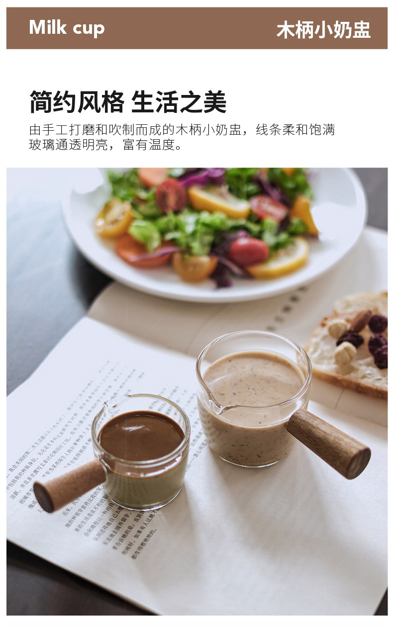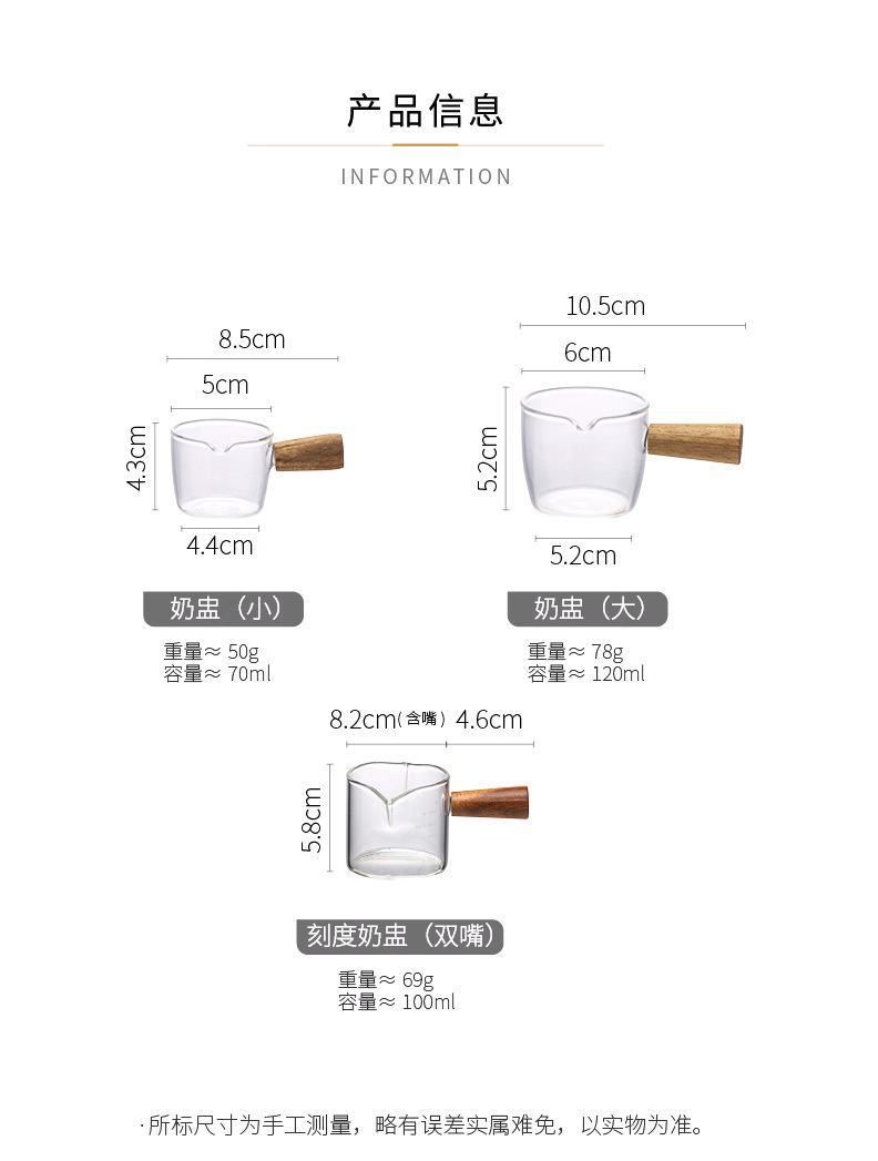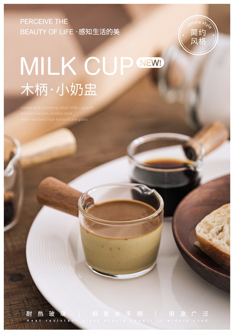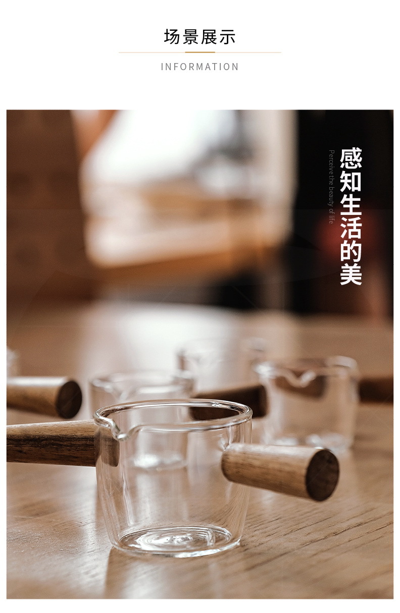 도매 내열 유리 작은 우유 컵 커피 추출 컵 베이킹 측정 컵 아카시아 나무 손잡이 온스 컵 미니 작은 우유 주전자스토어 가기