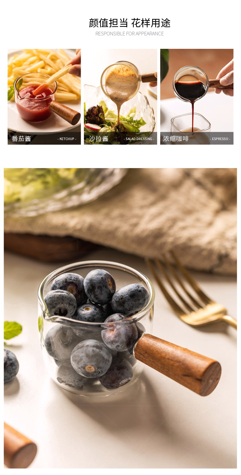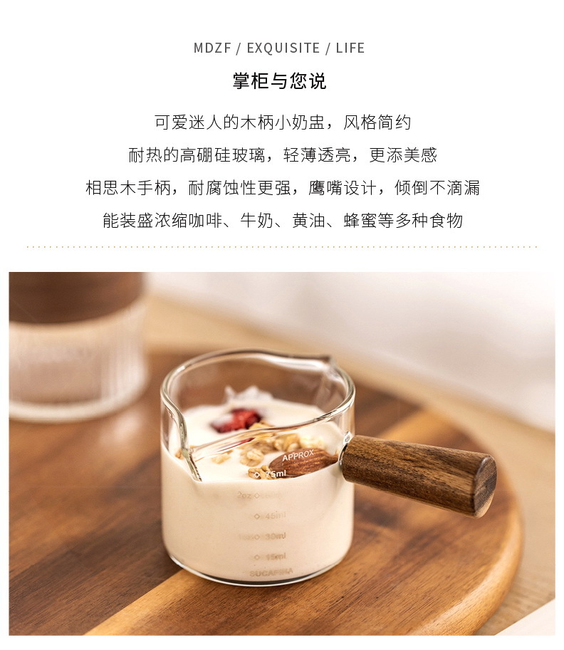 도매 내열 유리 작은 우유 컵 커피 추출 컵 베이킹 측정 컵 아카시아 나무 손잡이 온스 컵 미니 작은 우유 주전자