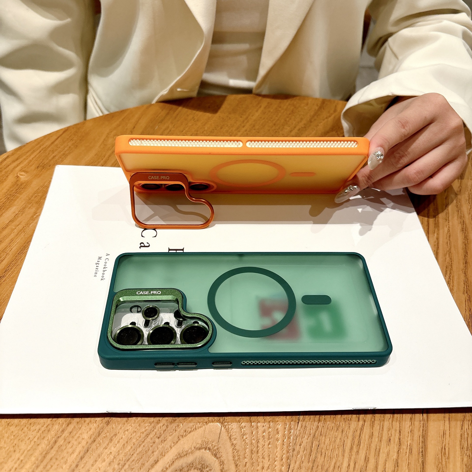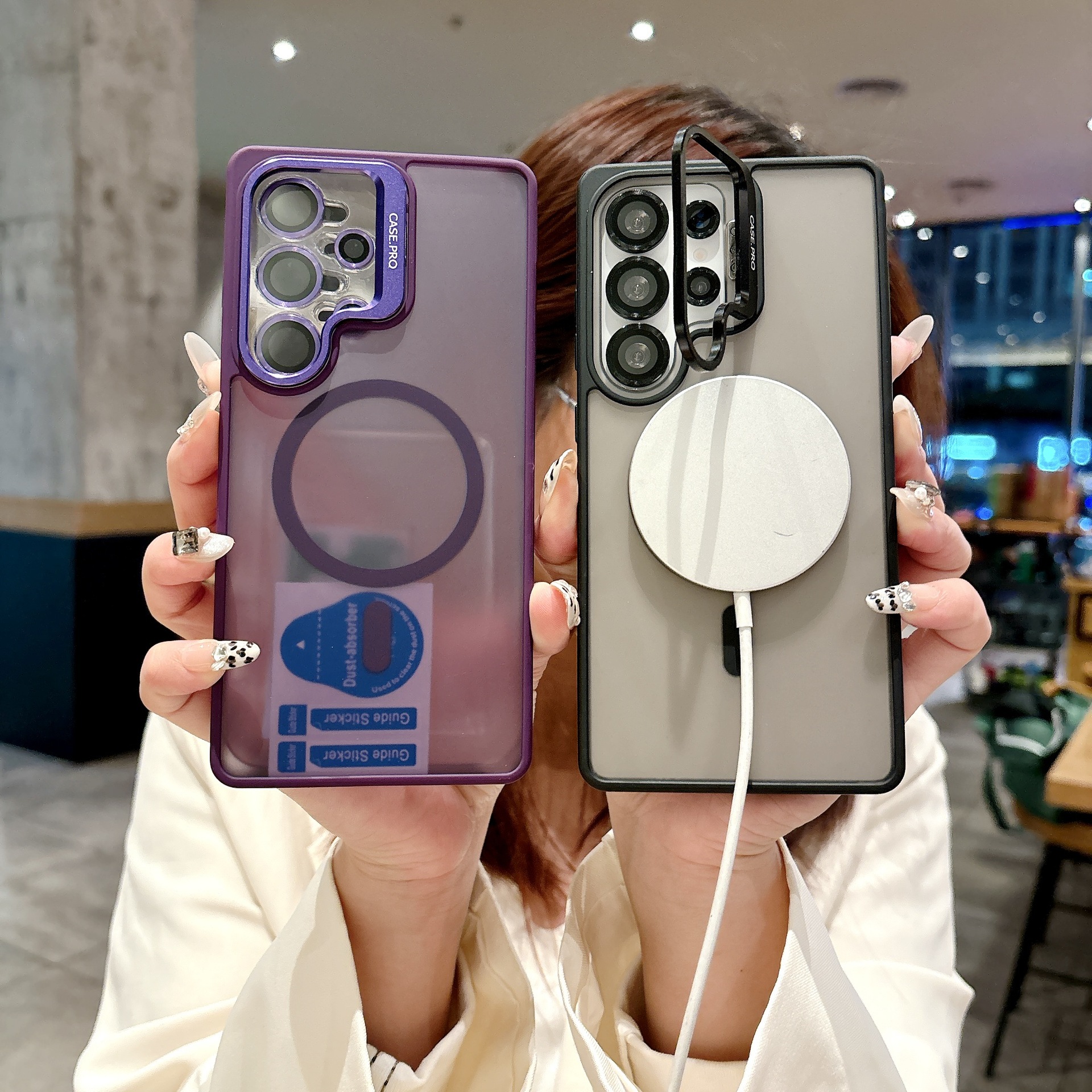 삼성 S26 울트라 마그네틱 휴대폰 케이스는 S25 렌즈 홀더와 피부처럼 부드러운 무광 S24 렌즈 필름 보호 커버와 호환됩니다.