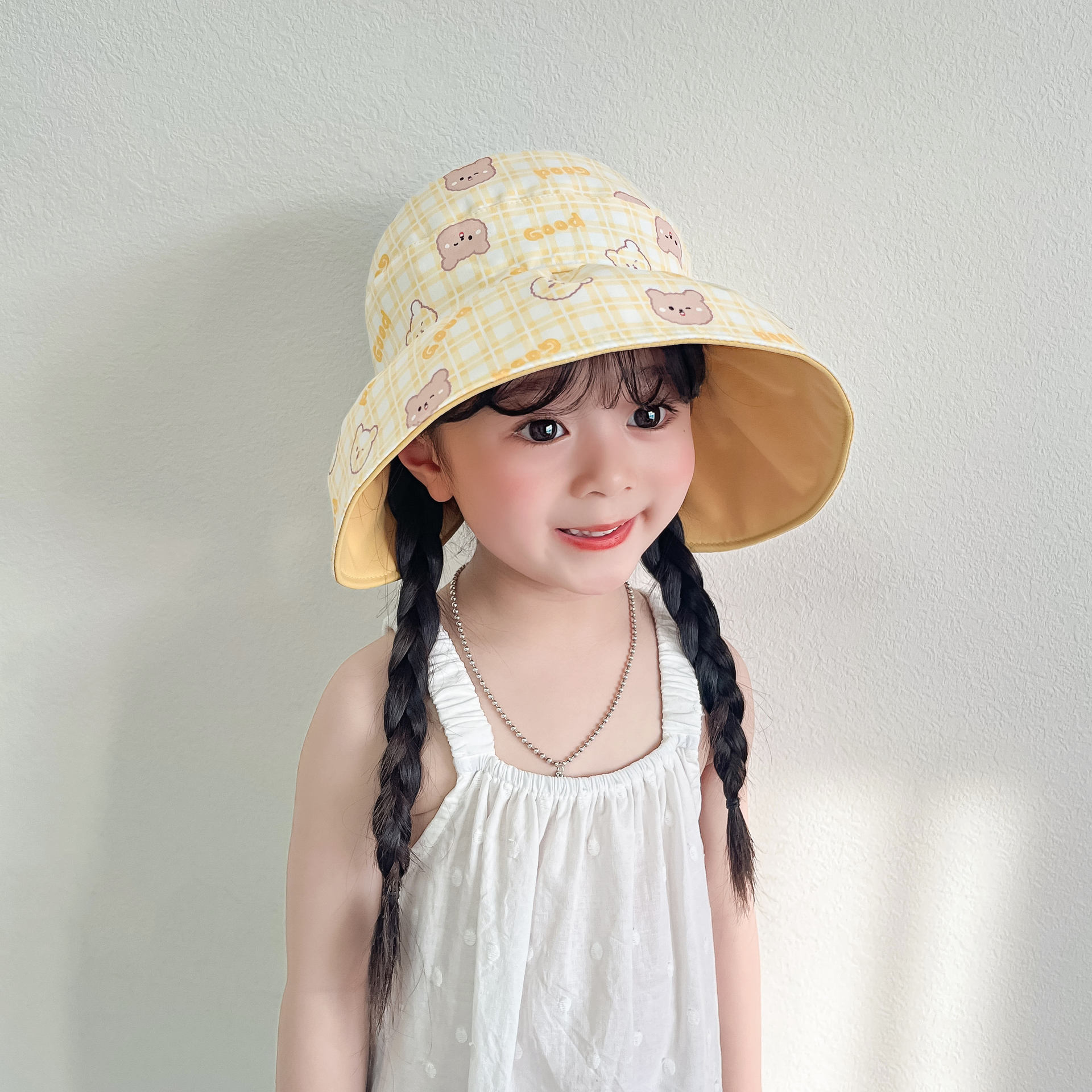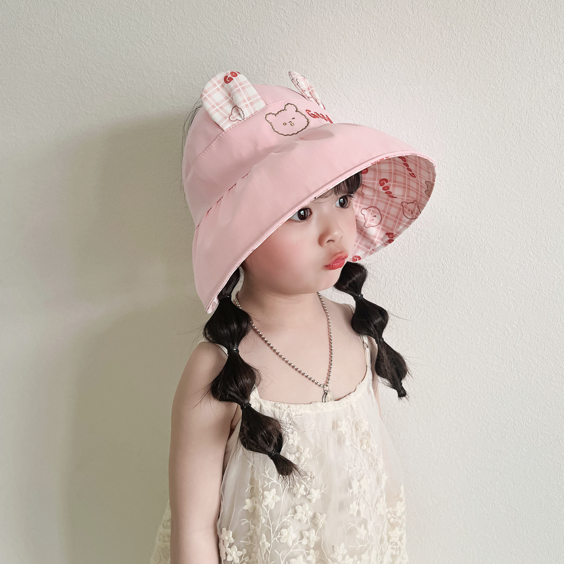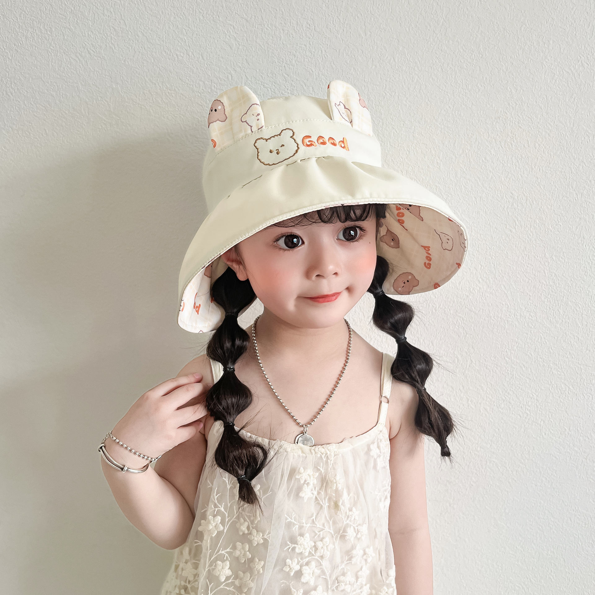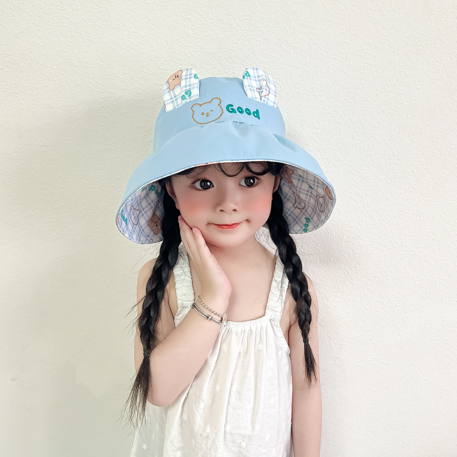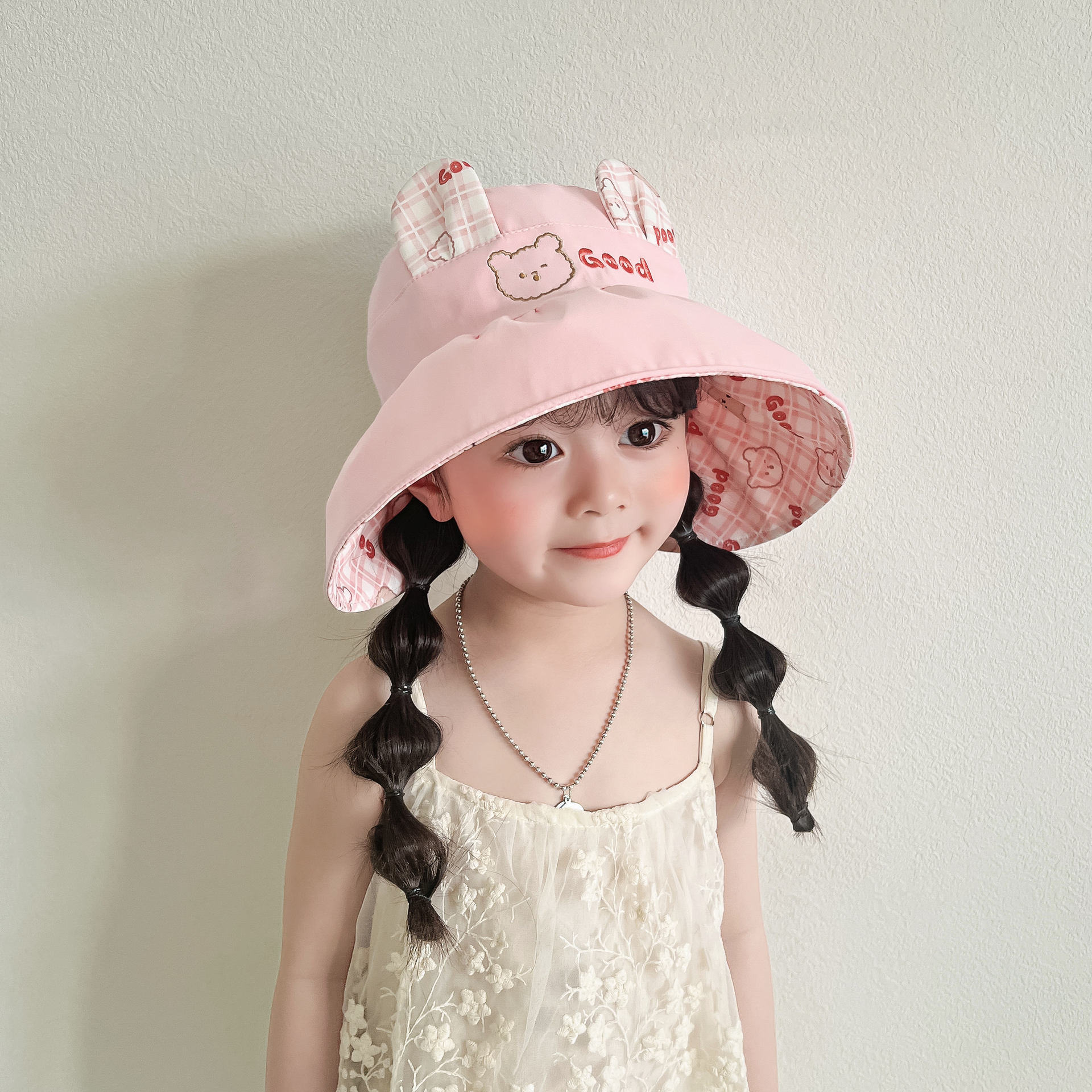 봄과 여름 새로운 어린이 빈 탑 선 스크린 모자 어부 모자 귀여운 곰 양면 웨어러블 야외 스포츠 태양 모자
