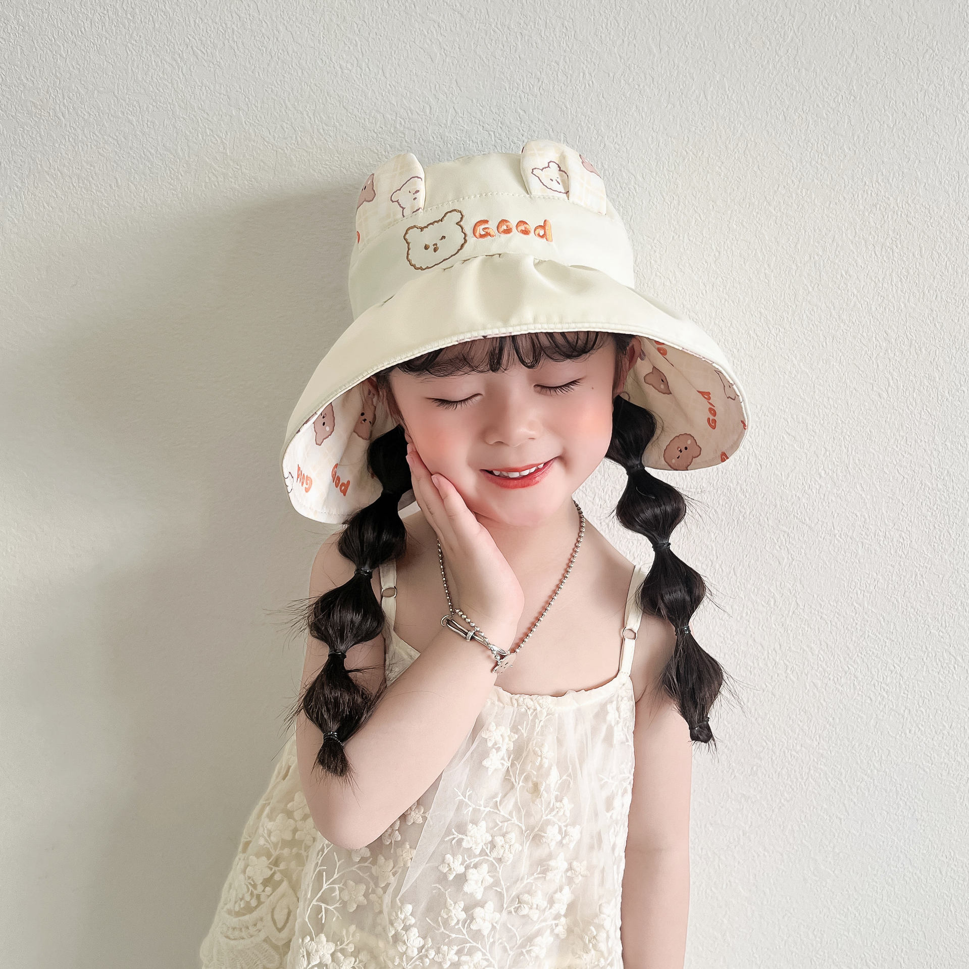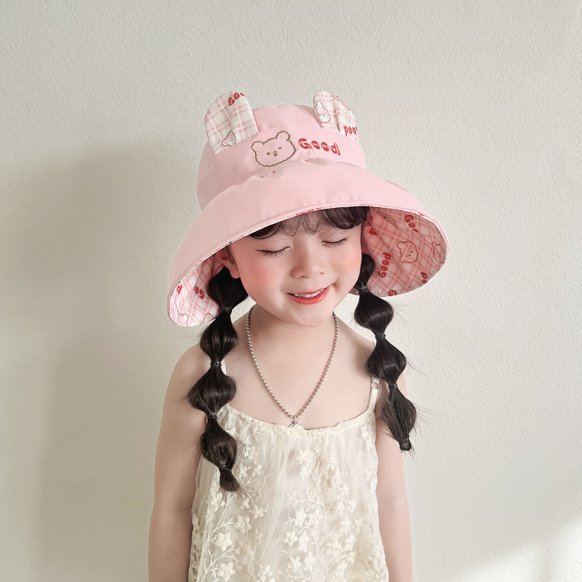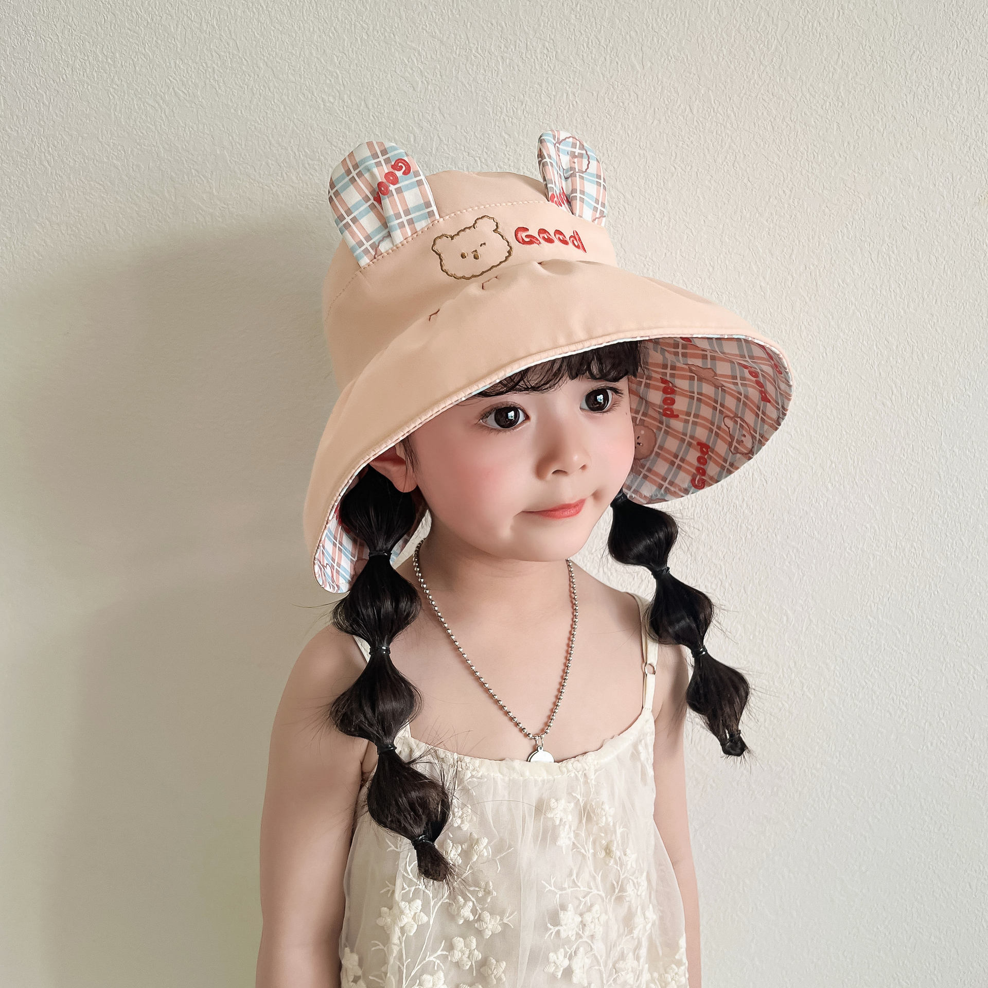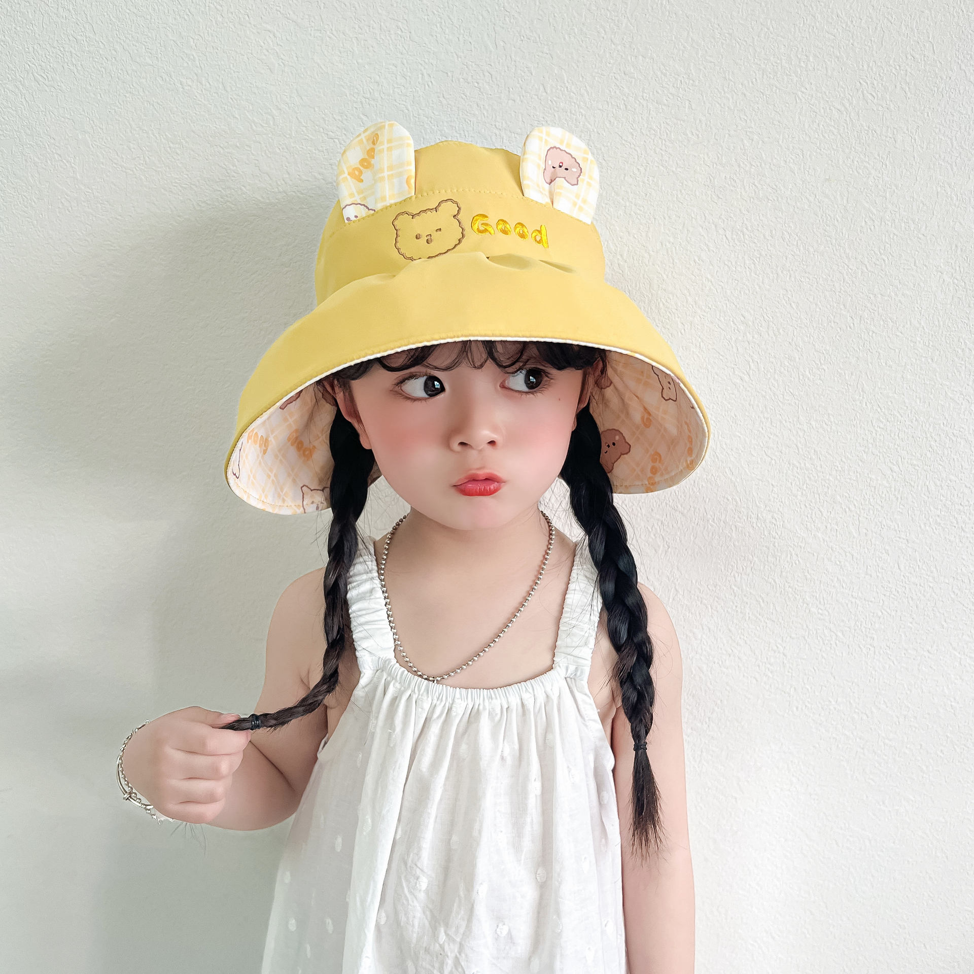 봄과 여름 새로운 어린이 빈 탑 선 스크린 모자 어부 모자 귀여운 곰 양면 웨어러블 야외 스포츠 태양 모자