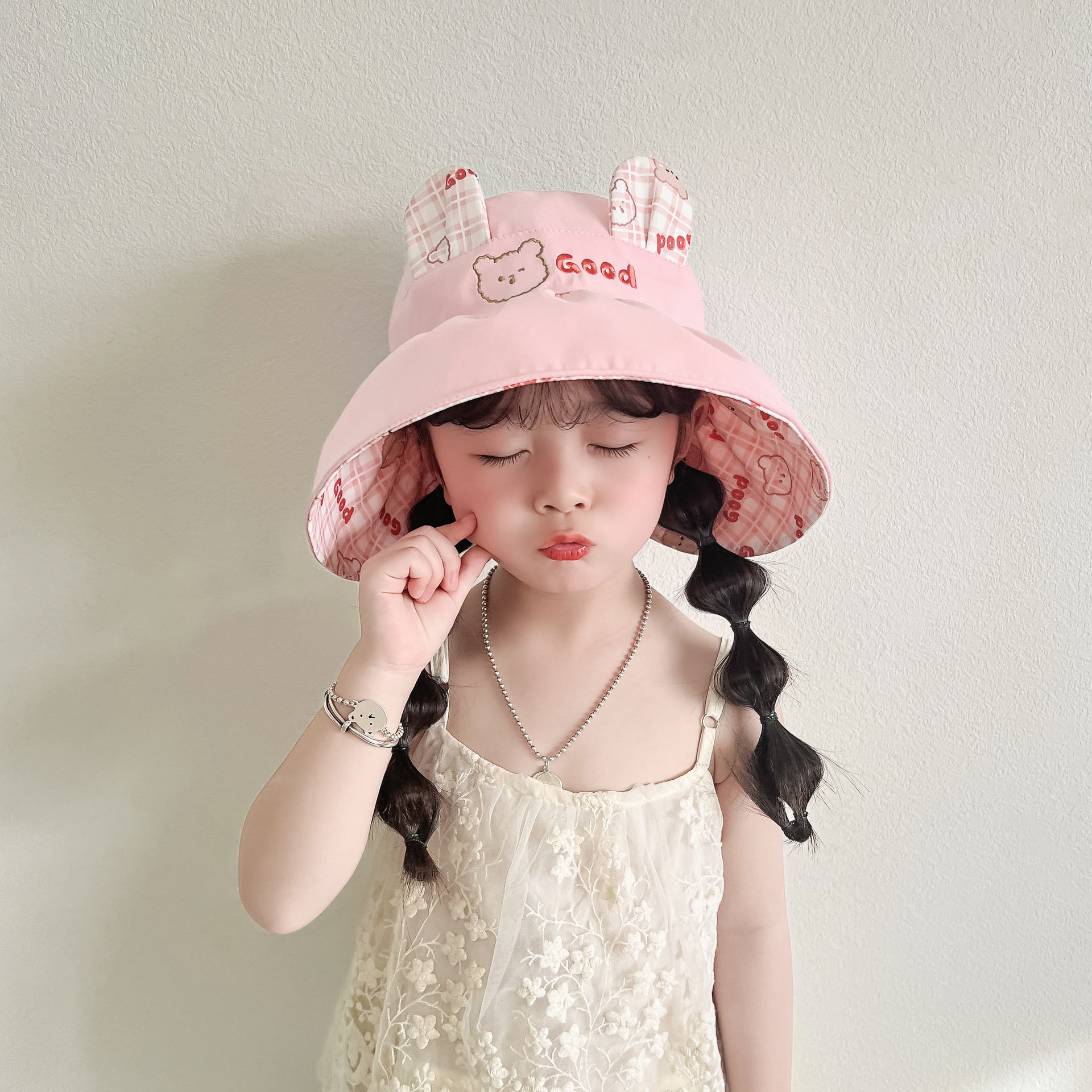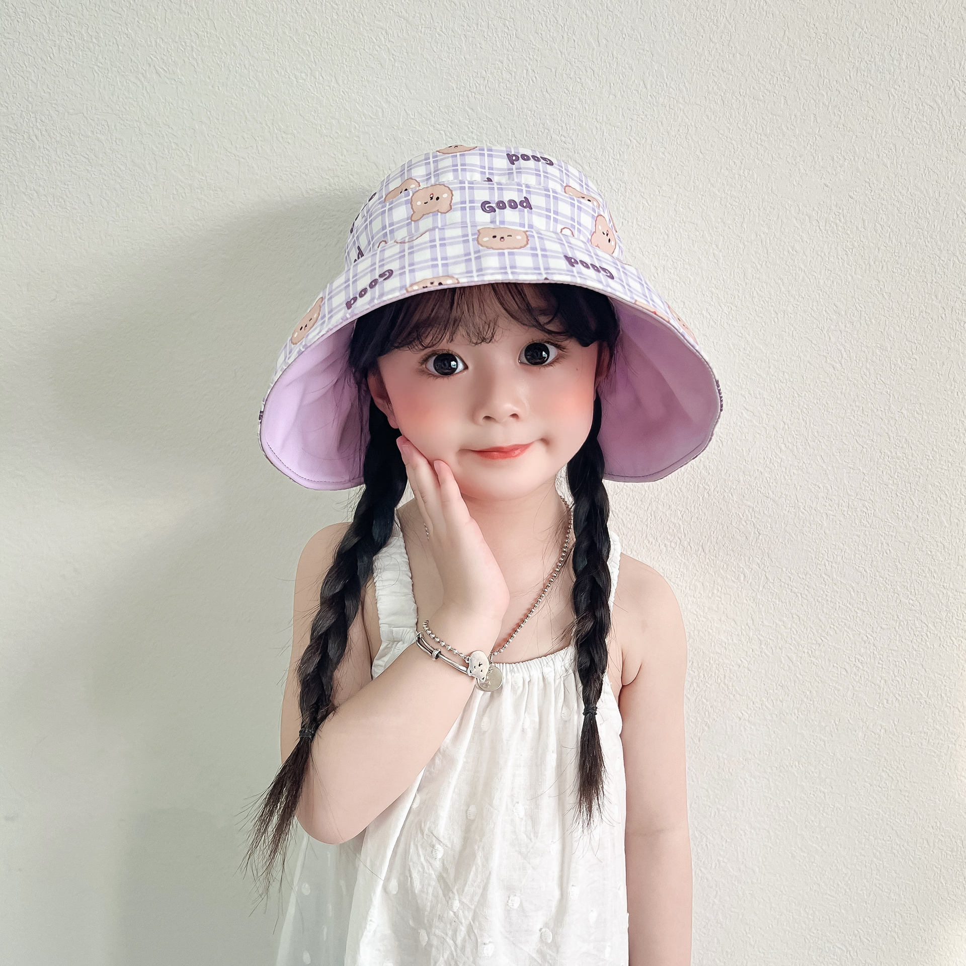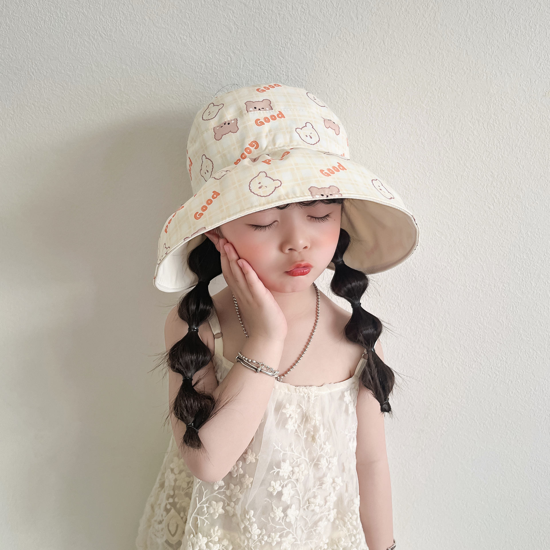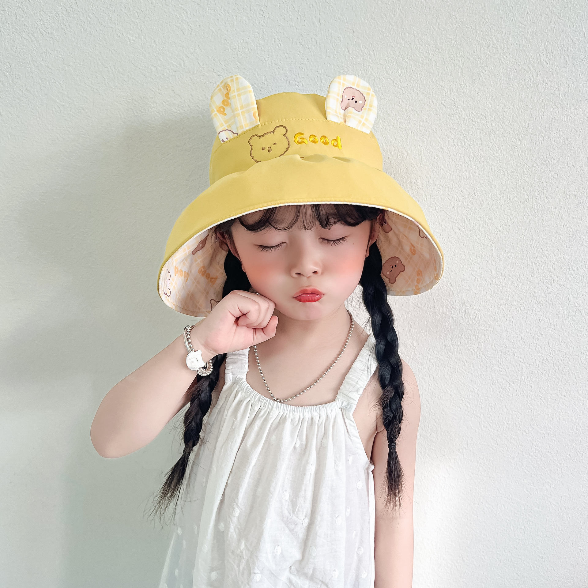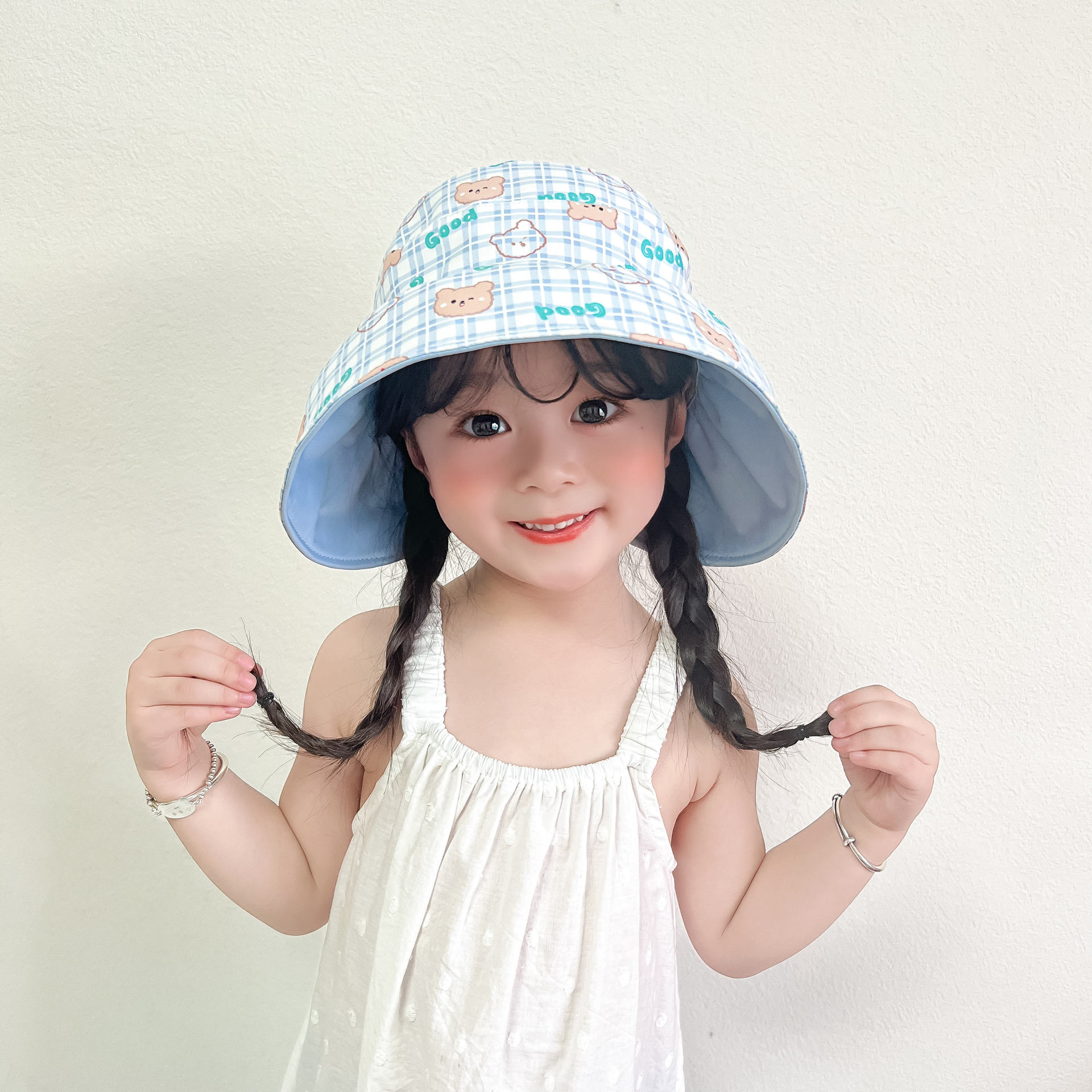 봄과 여름 새로운 어린이 빈 탑 선 스크린 모자 어부 모자 귀여운 곰 양면 웨어러블 야외 스포츠 태양 모자