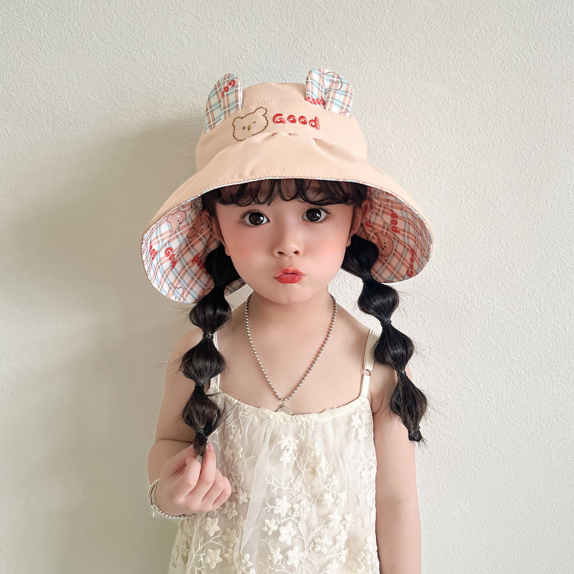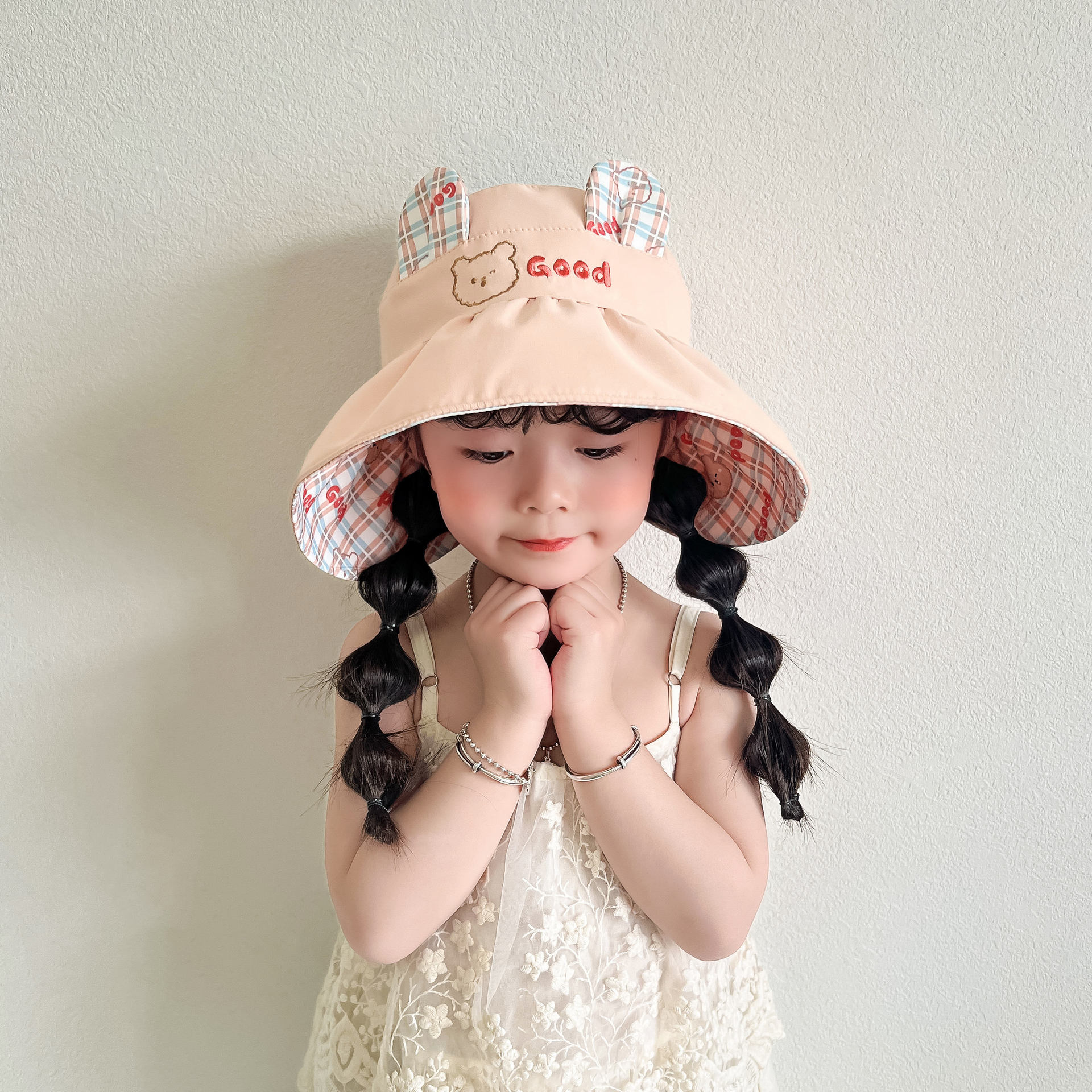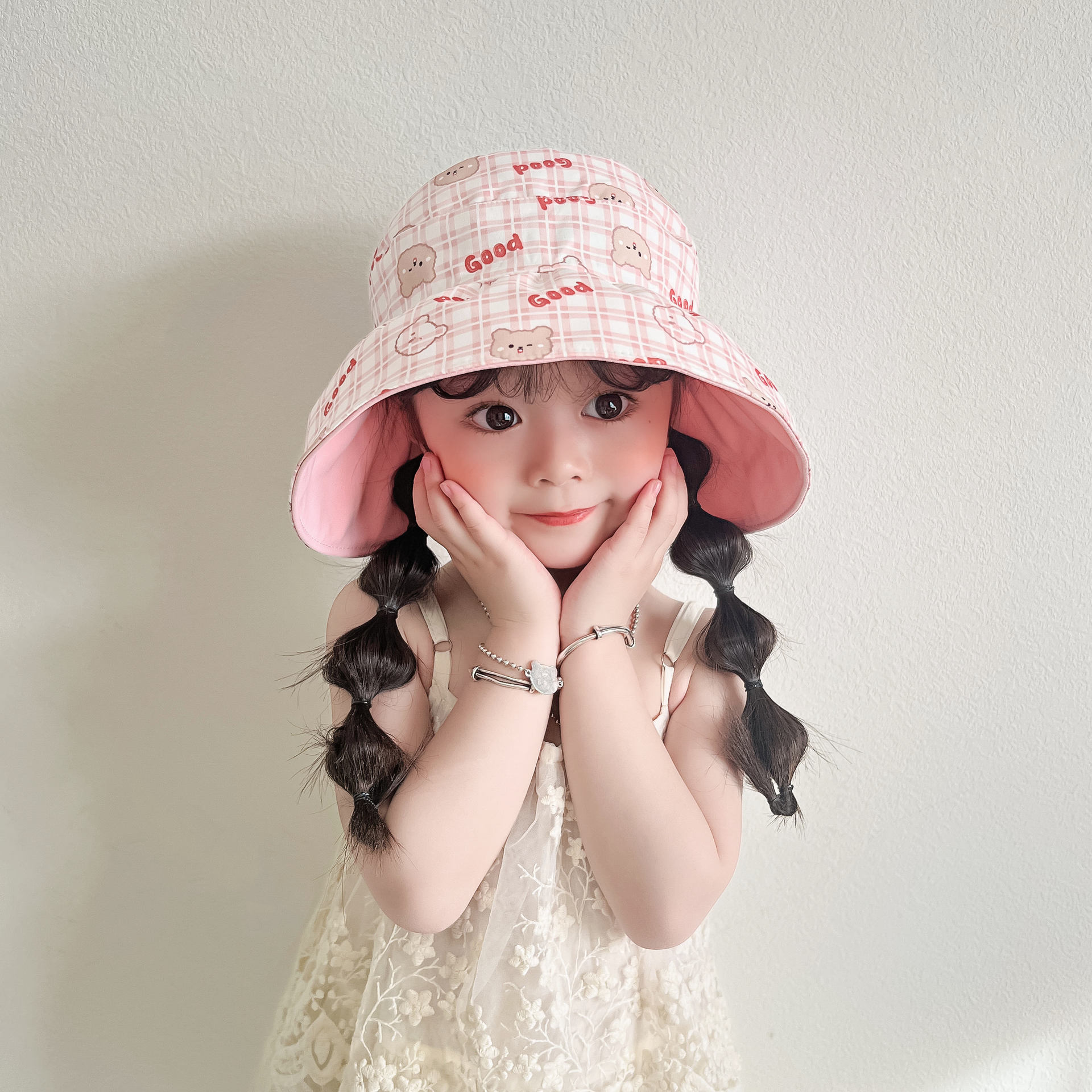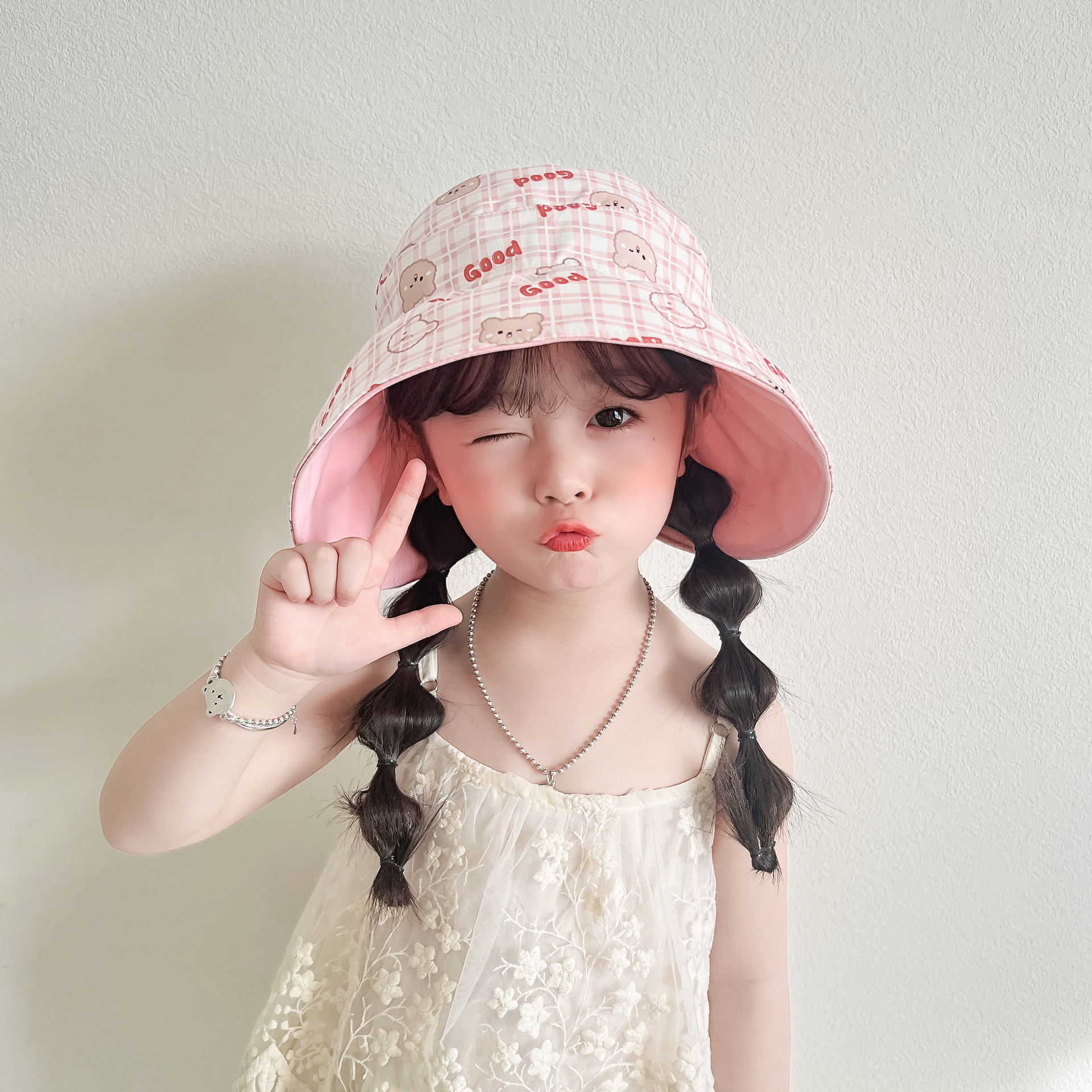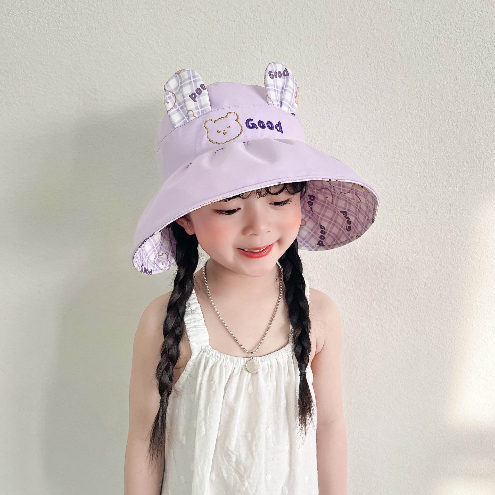 봄과 여름 새로운 어린이 빈 탑 선 스크린 모자 어부 모자 귀여운 곰 양면 웨어러블 야외 스포츠 태양 모자
