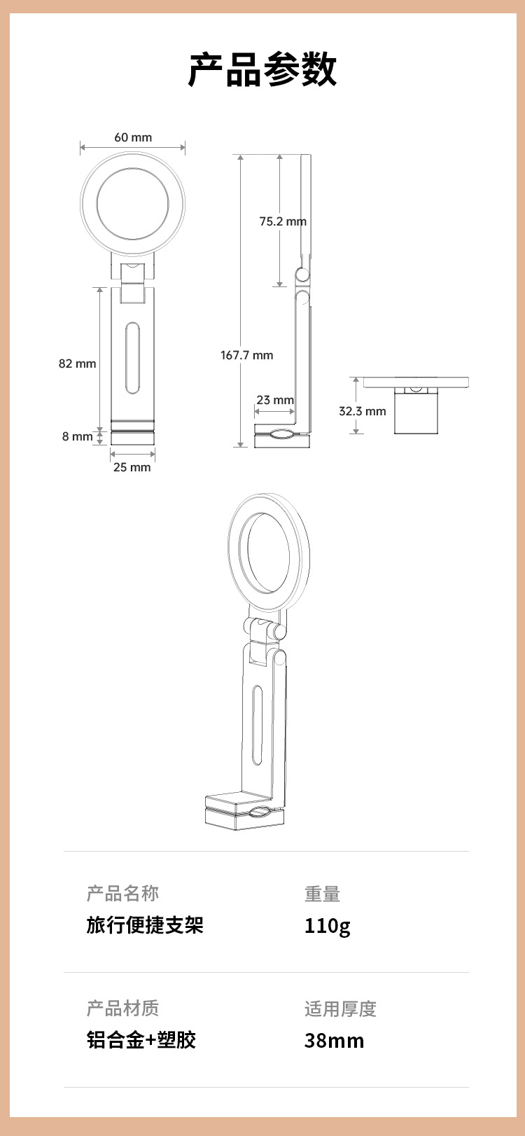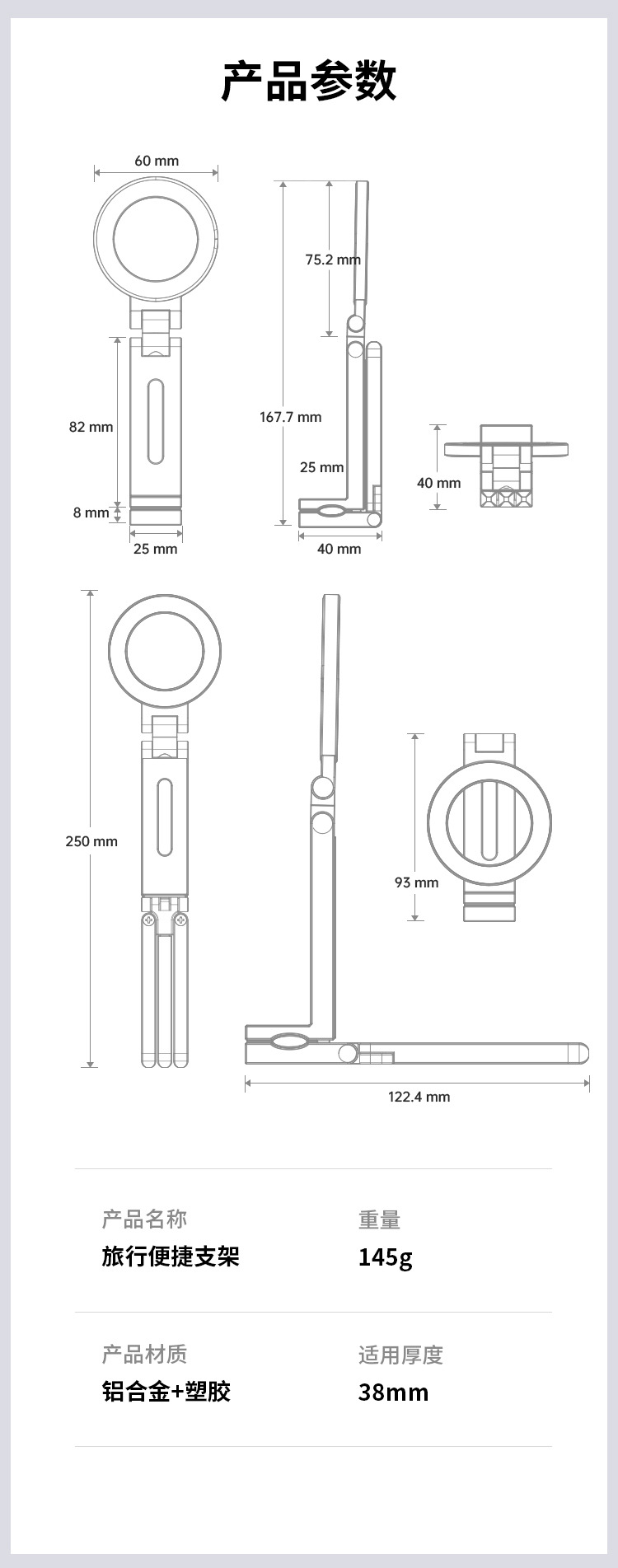 Qirui boneruy 휴대용 자기 휴대 전화 홀더 항공기 고속 열차 접이식 특별 여행 브래킷