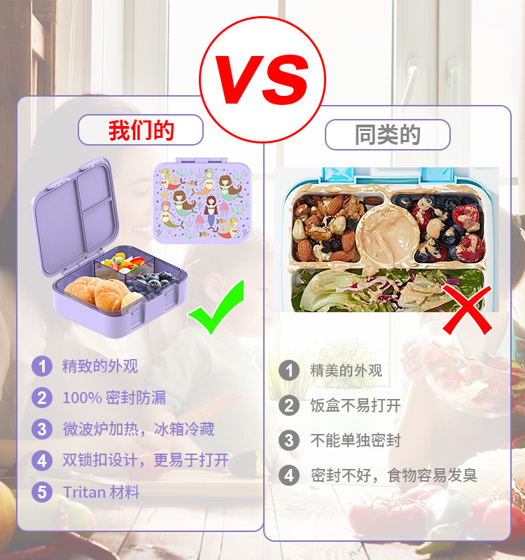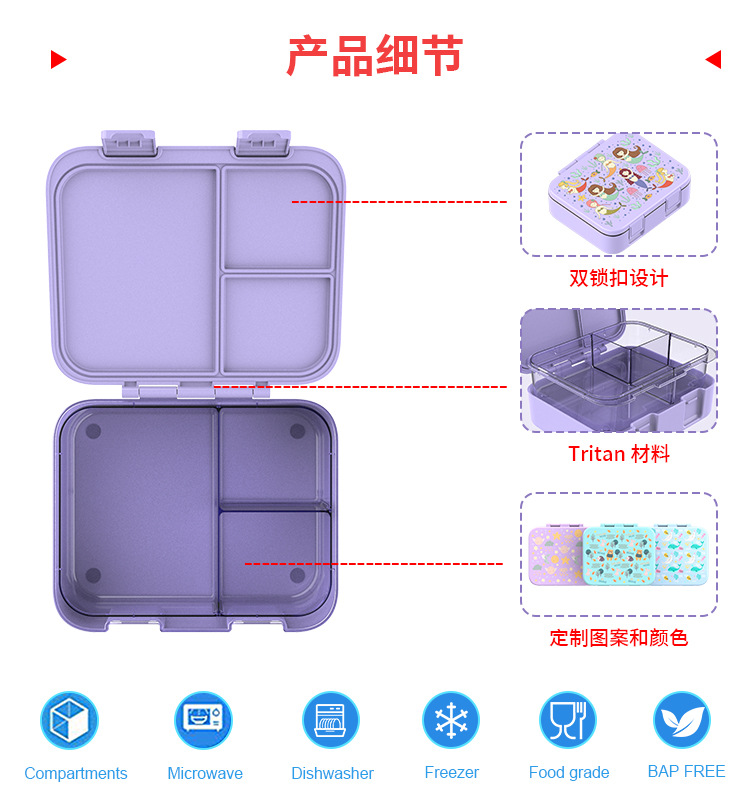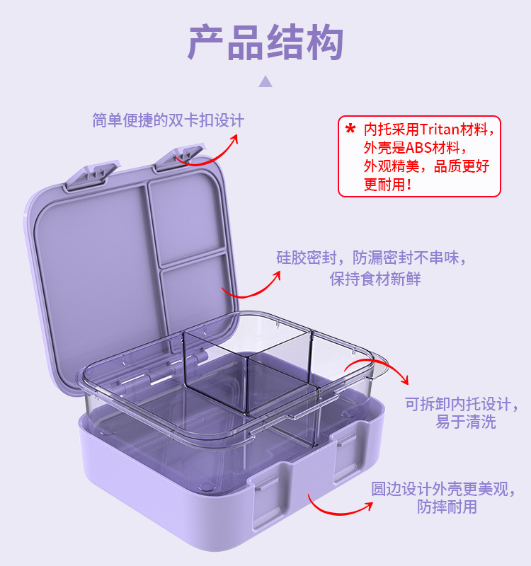 국경을 넘는 새로운 Tritan 어린이 도시락 상자 안전 밀봉 누출 방지 도시락 상자 학교 피크닉 도시락 상자
