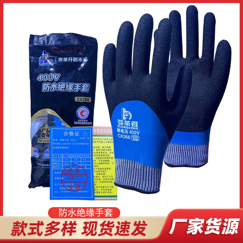 Chuangxin 장갑 400V 전압 방지 방수 절연 장갑 건설 현장 반도체 미끄럼 방지 마모 두꺼운 장갑스토어 가기