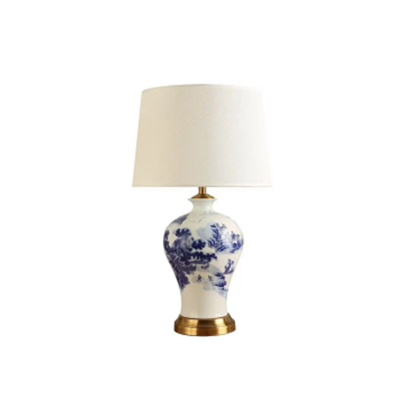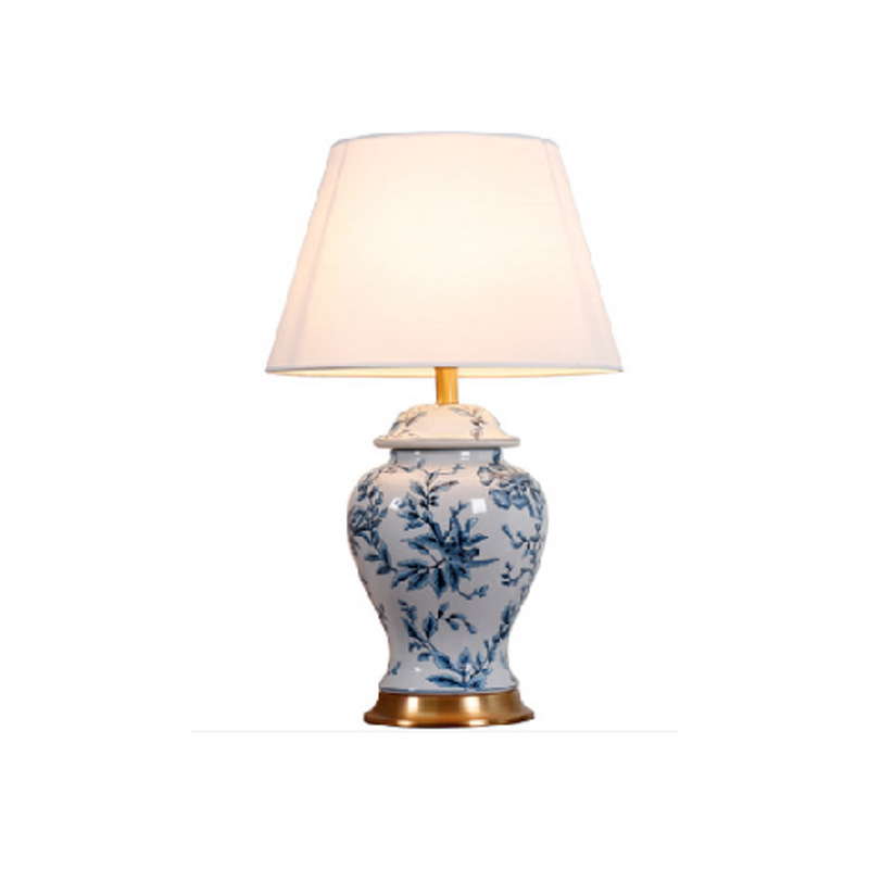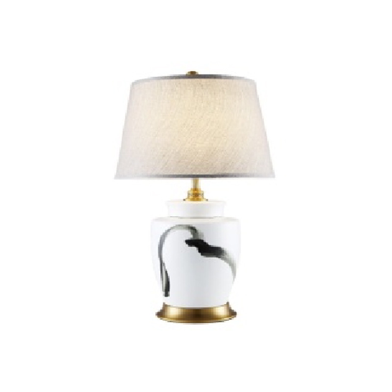 북유럽 빛 고급 미국 세라믹 테이블 램프 침실 침대 옆 램프 순수한 구리 창조적 인 간단한 현대 가정 거실 새로운 중국 스타일스토어 가기