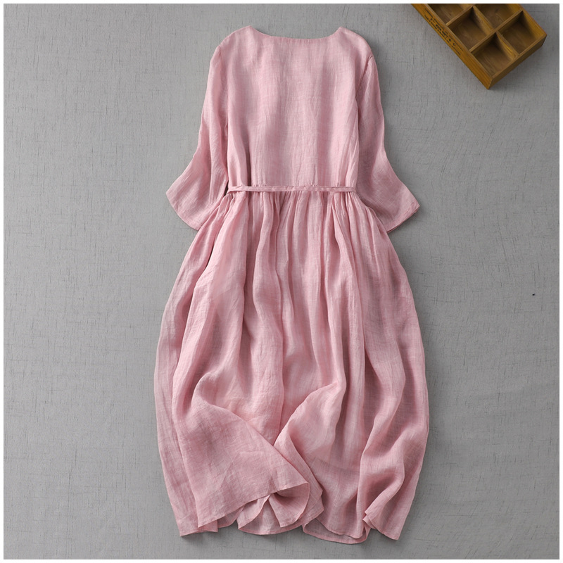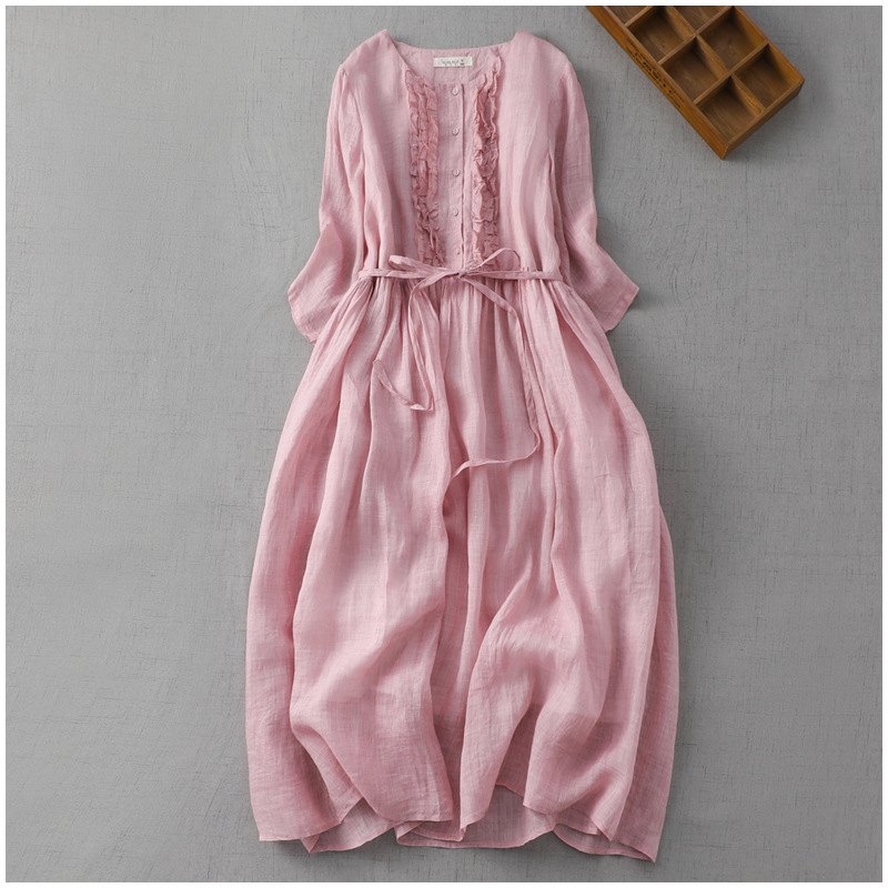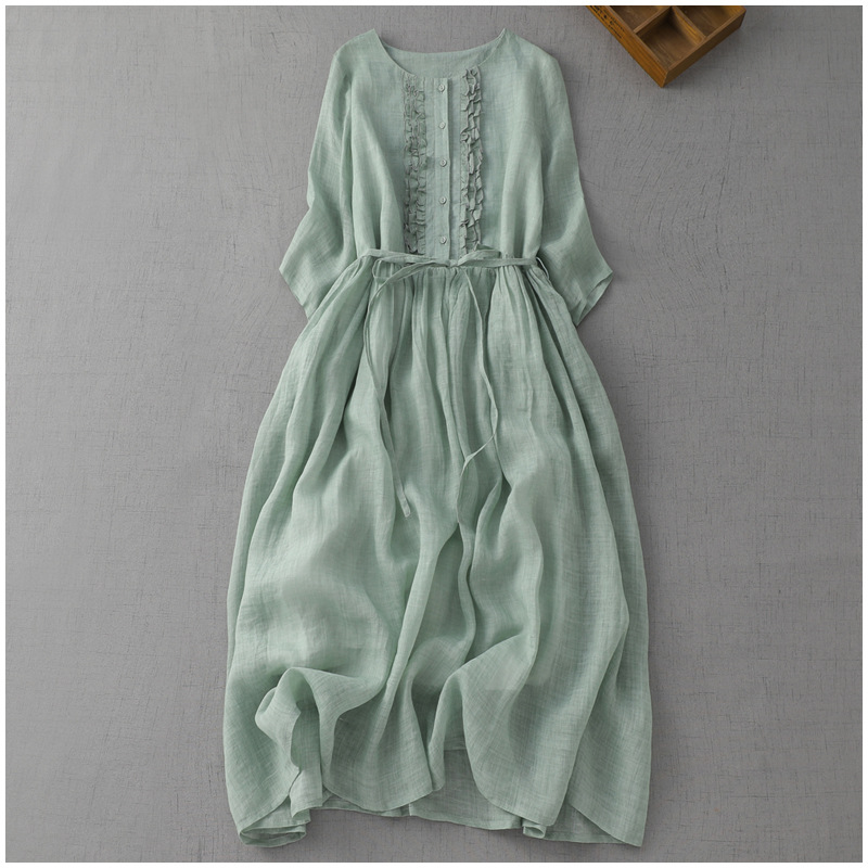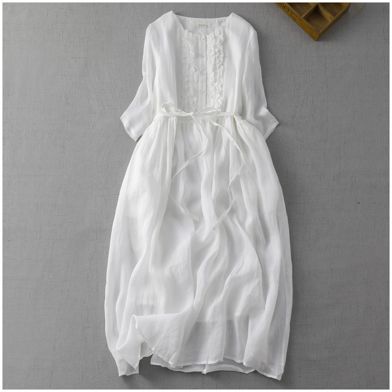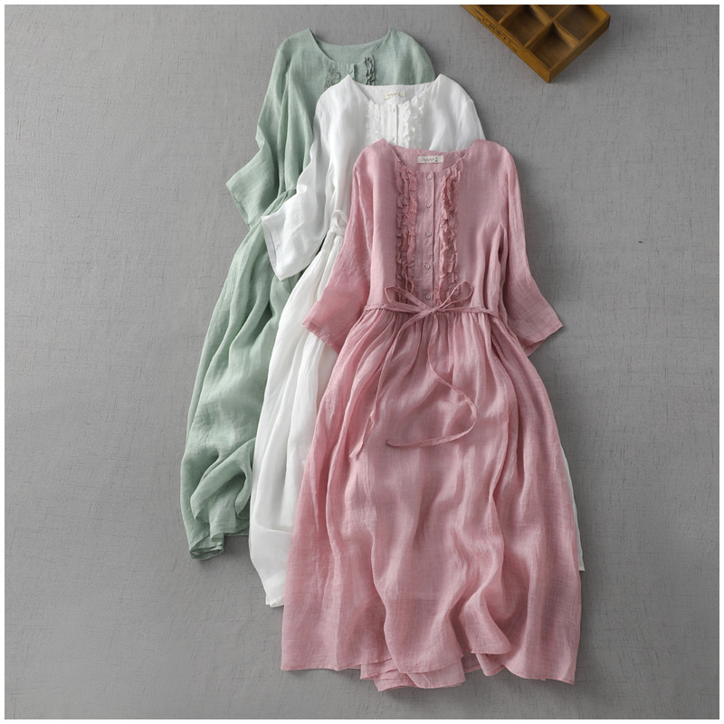 2023 여름 예술적 레트로 라운드 넥 더블 레이어 페어리 스타일 레이스 업 허리 중간 길이의 여행 및 휴일 원피스 여성의 얇은