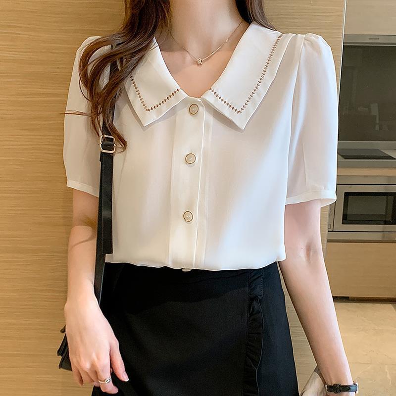 2024 여름 새로운 스타일의 인형 칼라 화이트 올 매치 셔츠 여성의 세련된 기질 디자인 감각 틈새 세련된 탑