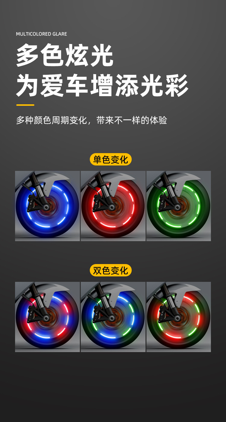 자동차 운반 밸브 캡 자전거 오토바이 타이어 빛나는 빛 유도 수정 장식 다채로운 휠 경고등