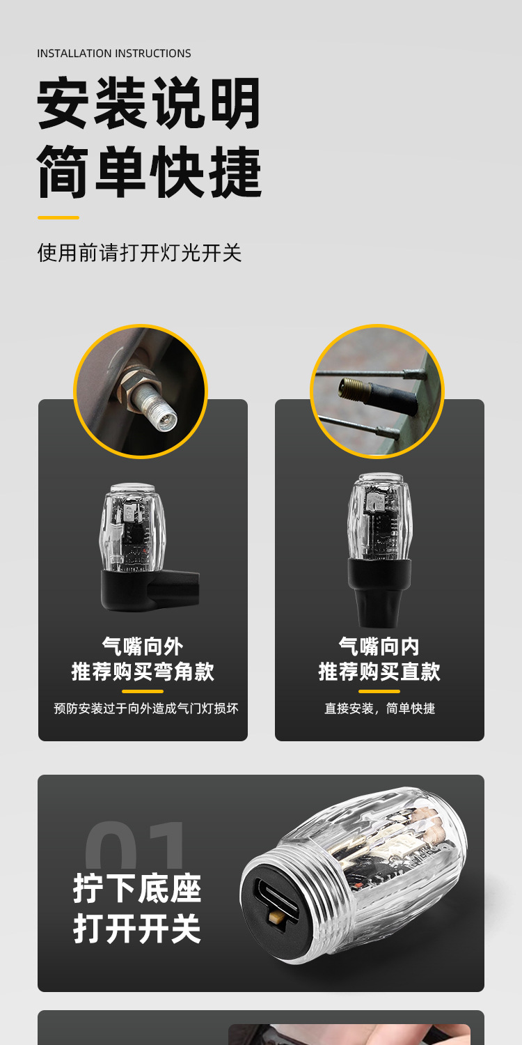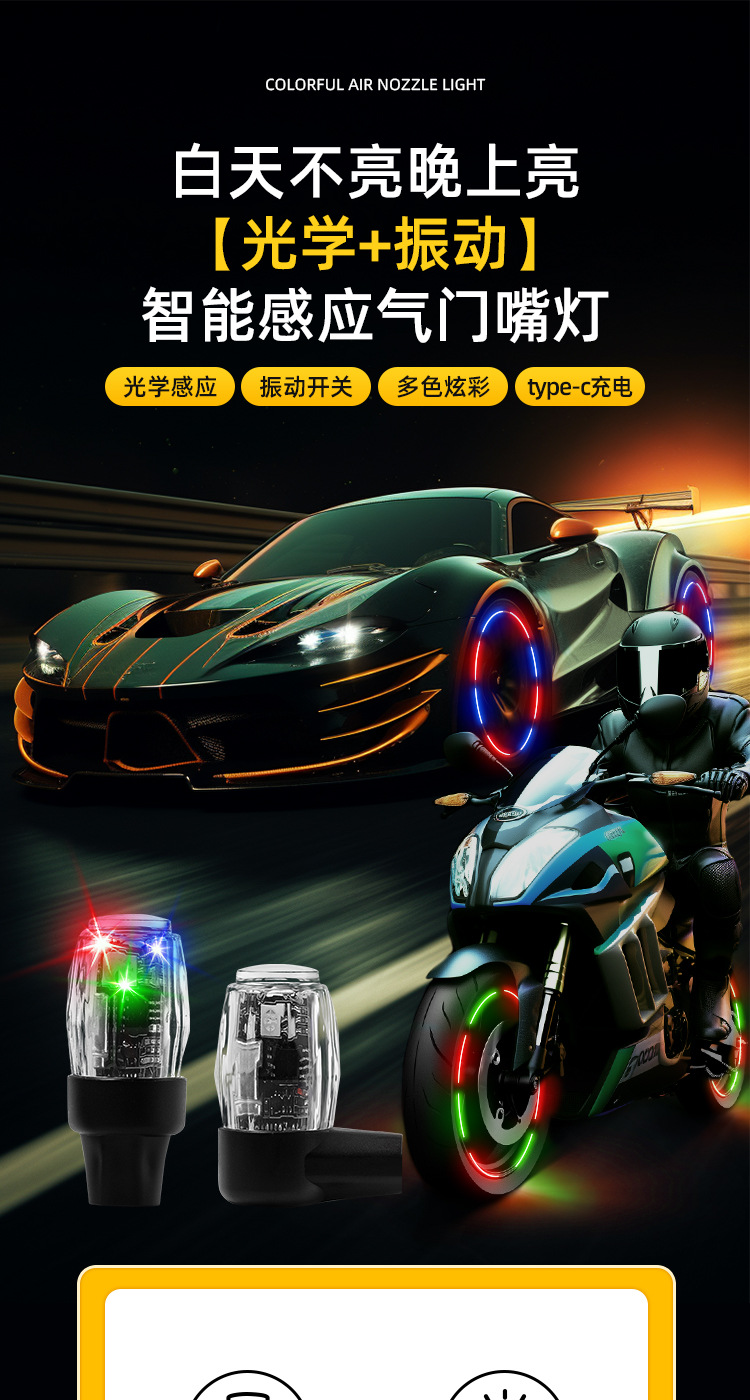 자동차 운반 밸브 캡 자전거 오토바이 타이어 빛나는 빛 유도 수정 장식 다채로운 휠 경고등스토어 가기