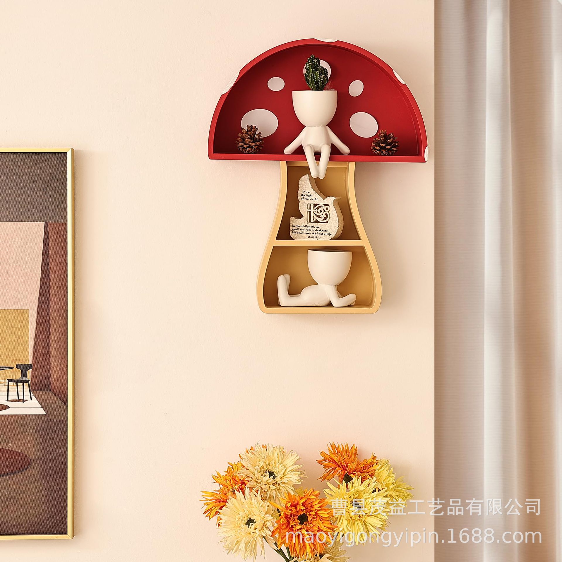 어린이 방 벽 장식 보관 랙 벽 교수형 책장 만화 버섯 랙 책 보관 랙 매달려 떠 다니는 랙스토어 가기