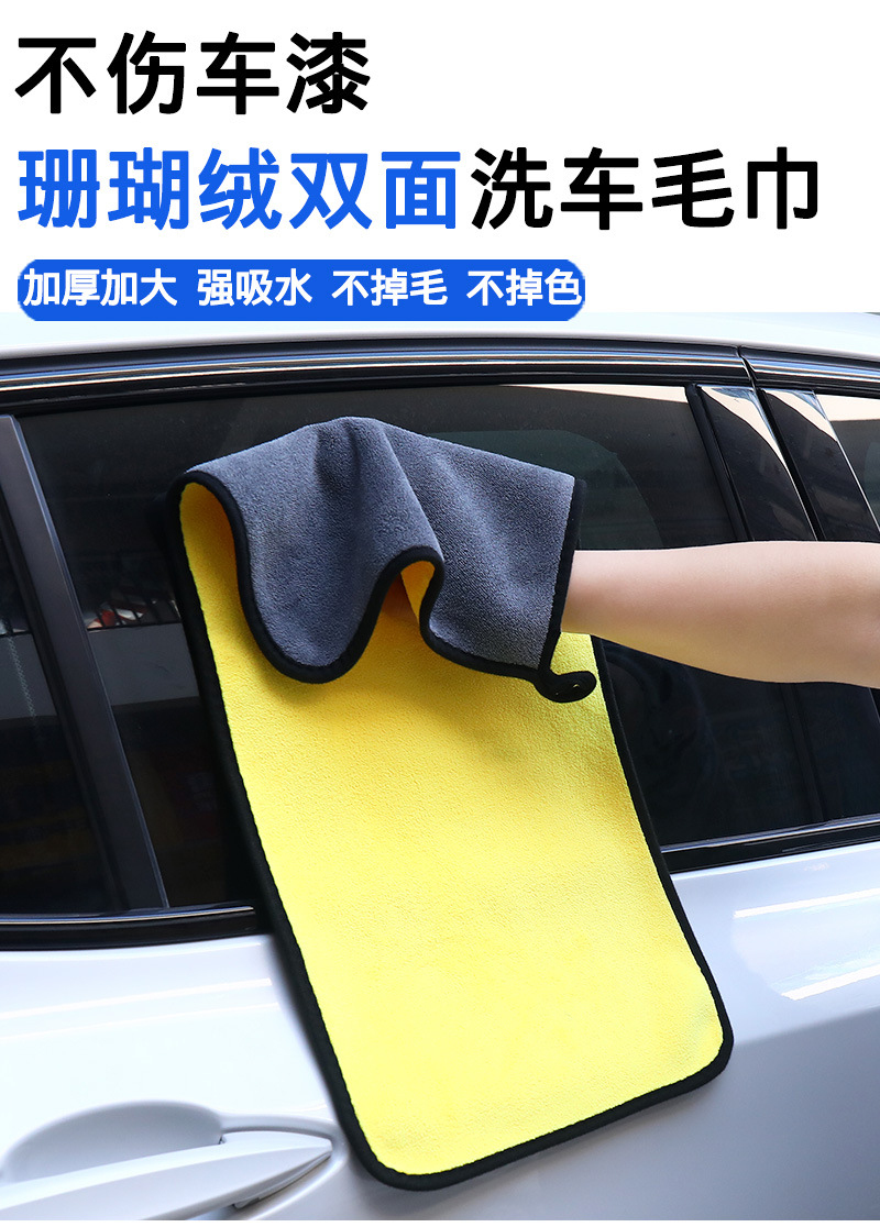 세차 수건 2 색 산호 양털 자동차 청소 수건 흡수성 린트 무료 자동차 특수 자동차 청소 수건 유리 헝겊