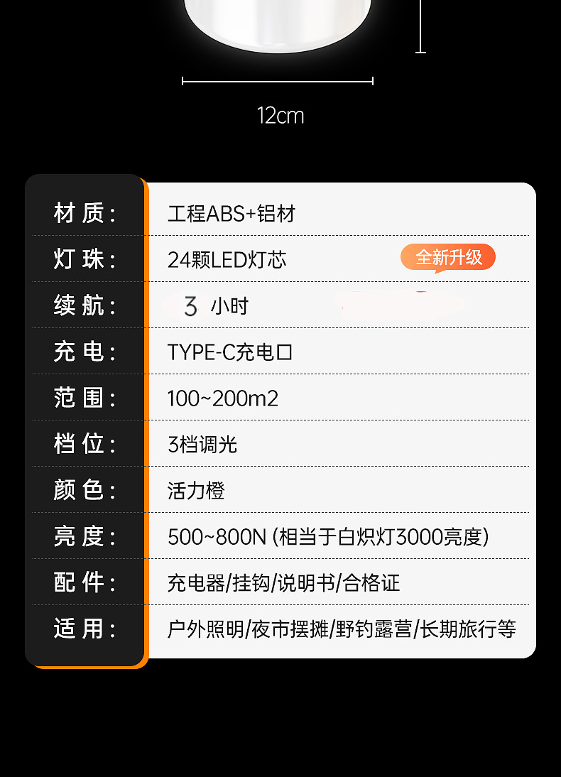 충전식 조명 램프 야외 강한 빛 슈퍼 긴 지구력 야생 캠핑 가정용 정전 비상 전구 실속 라이트 나이트 마켓 라이트