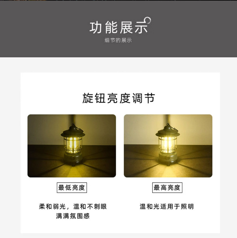 캠핑 랜턴, 야외 조명, 등불, 캠핑 라이트, 충전식 야외 텐트 라이트, 조광 가능 LED 라이트, 강한 빛