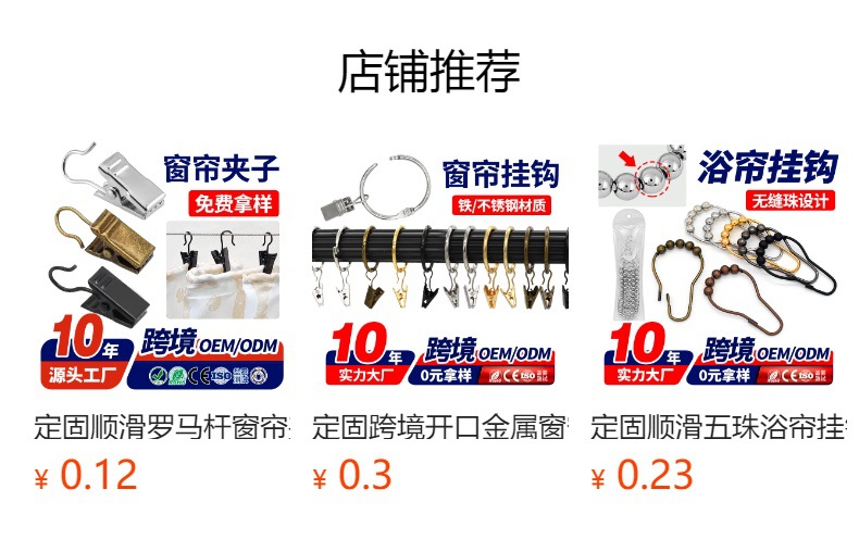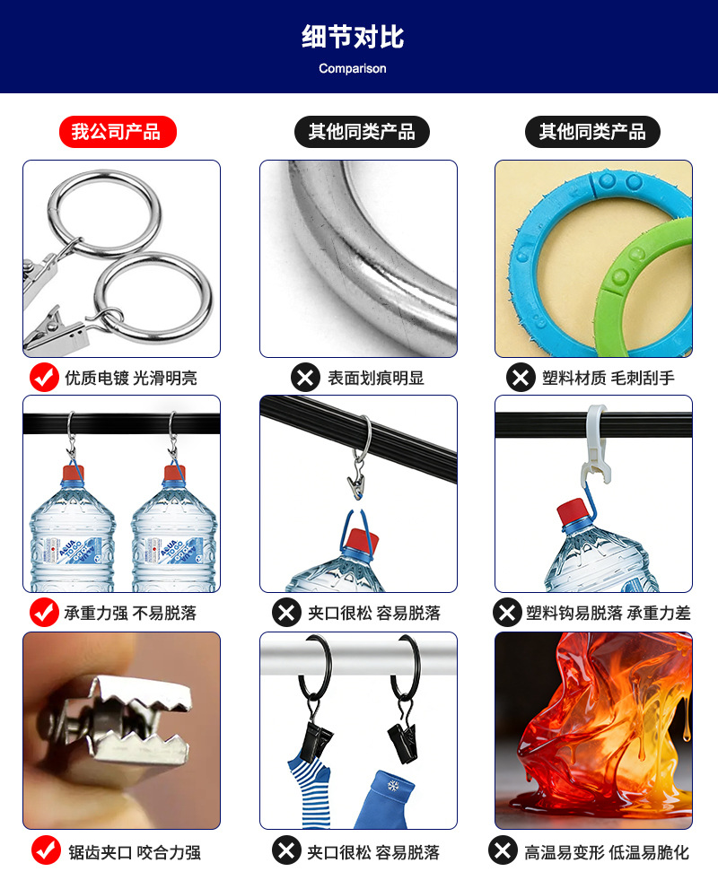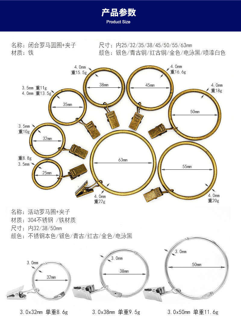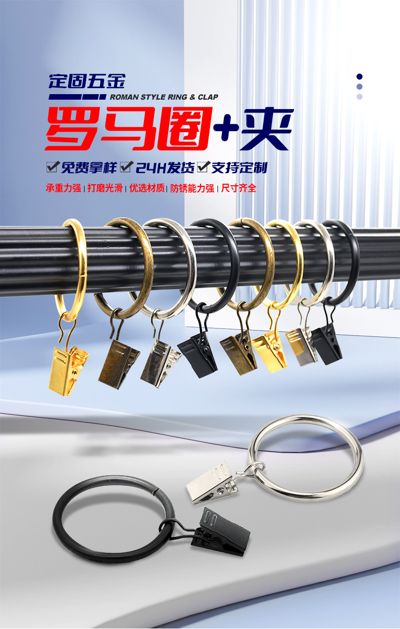 浴帘挂钩、窗帘挂钩、窗帘环、浴帘环、窗帘扣、浴帘扣、窗帘夹子、浴帘夹子、罗马圈、罗马圈夹子、金属环、铁圈加夹子、挂环、浴帘挂环、窗帘配件、浴帘配件、