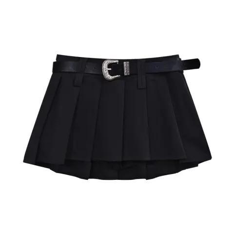 한국 스타일의 주름 치마 섹시한 뜨거운 소녀 단색 디자인 스커트 여름 새로운 올 매치 로우 허리 A 라인 플리츠 스커트