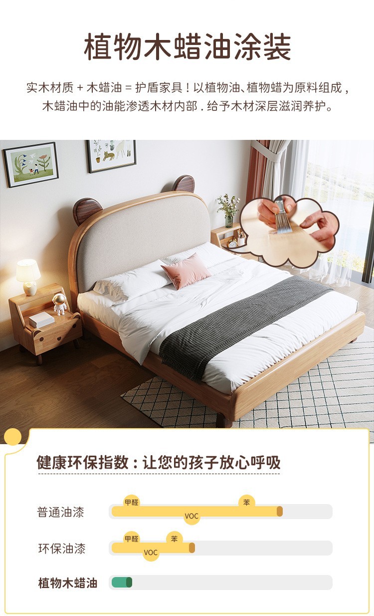 단단한 나무 너도밤 나무 어린이 침대 1.2 m 나무 왁스 오일 소년과 소녀 싱글 부드러운 침대 작은 아파트 1.5 공주 침대