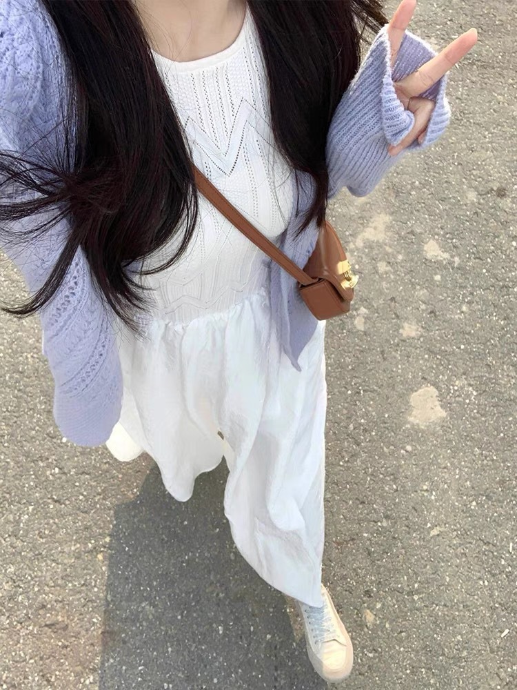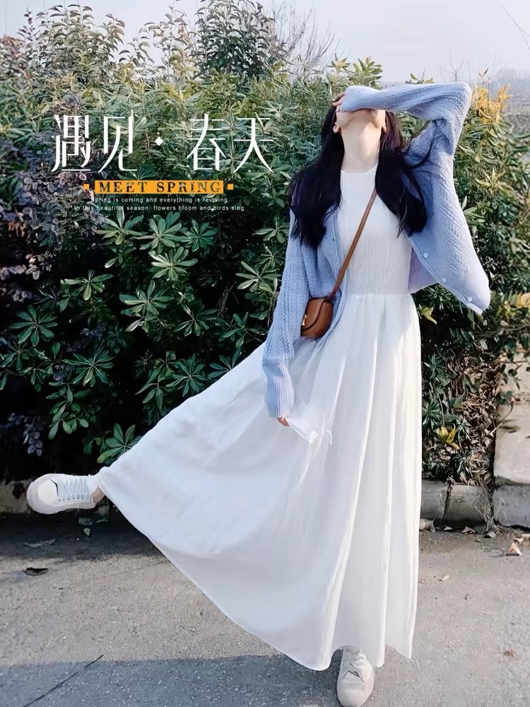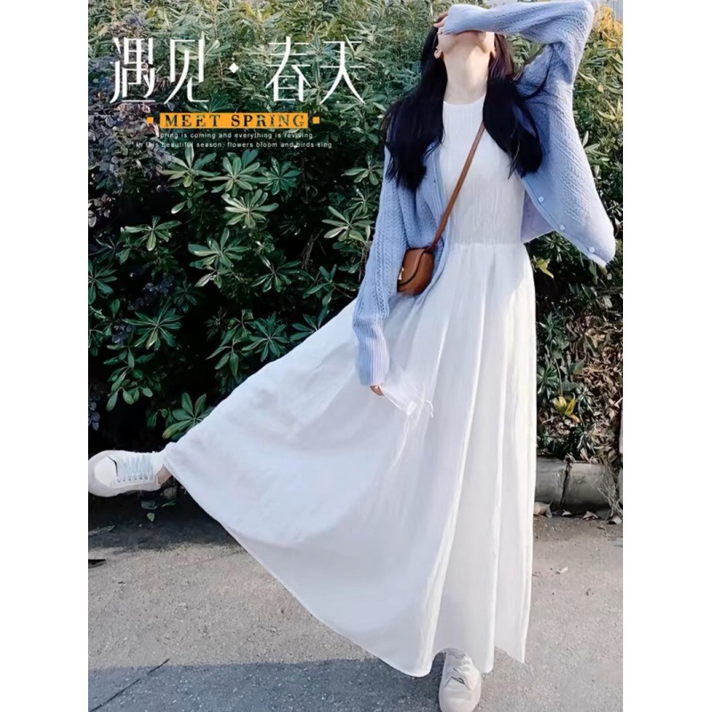 2024 이른 봄 여성의 첫사랑 세트 순수한 우유 달콤한 세트 흰색 허리 꽉 기질 원피스스토어 가기