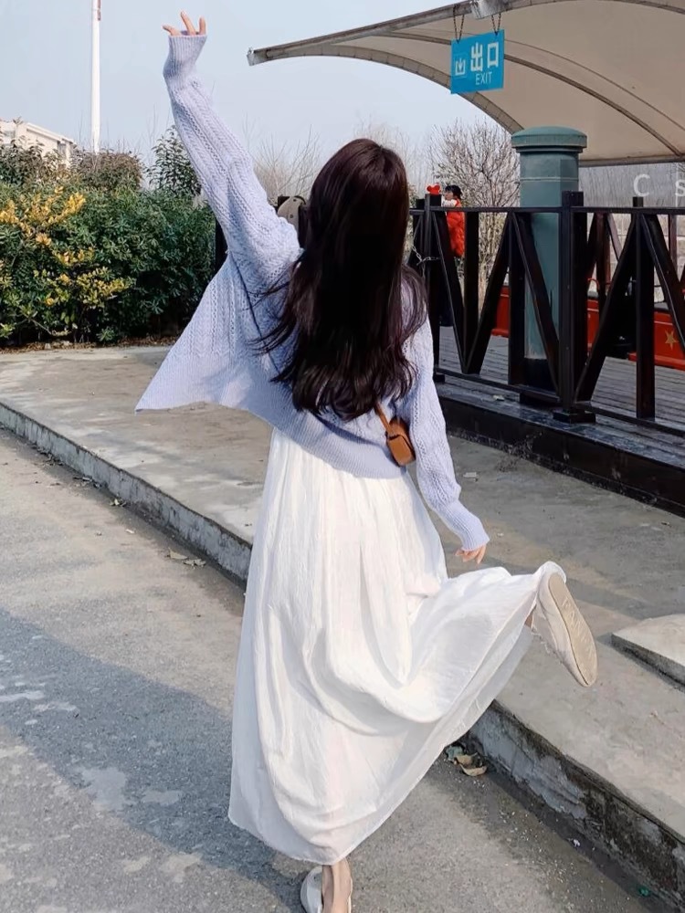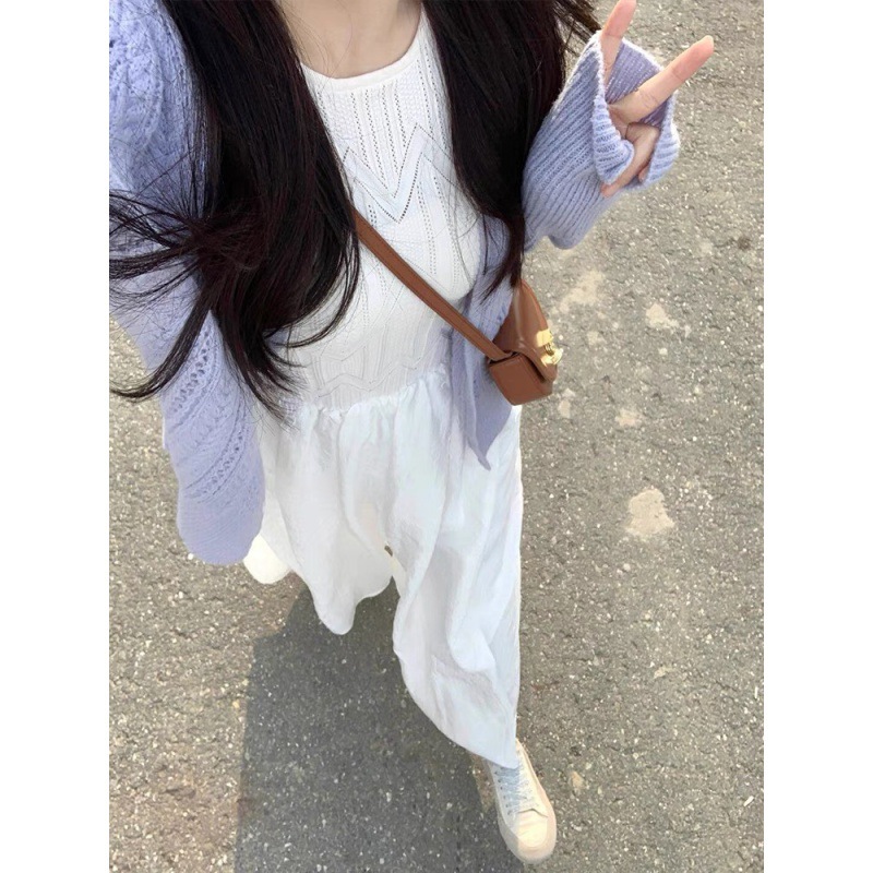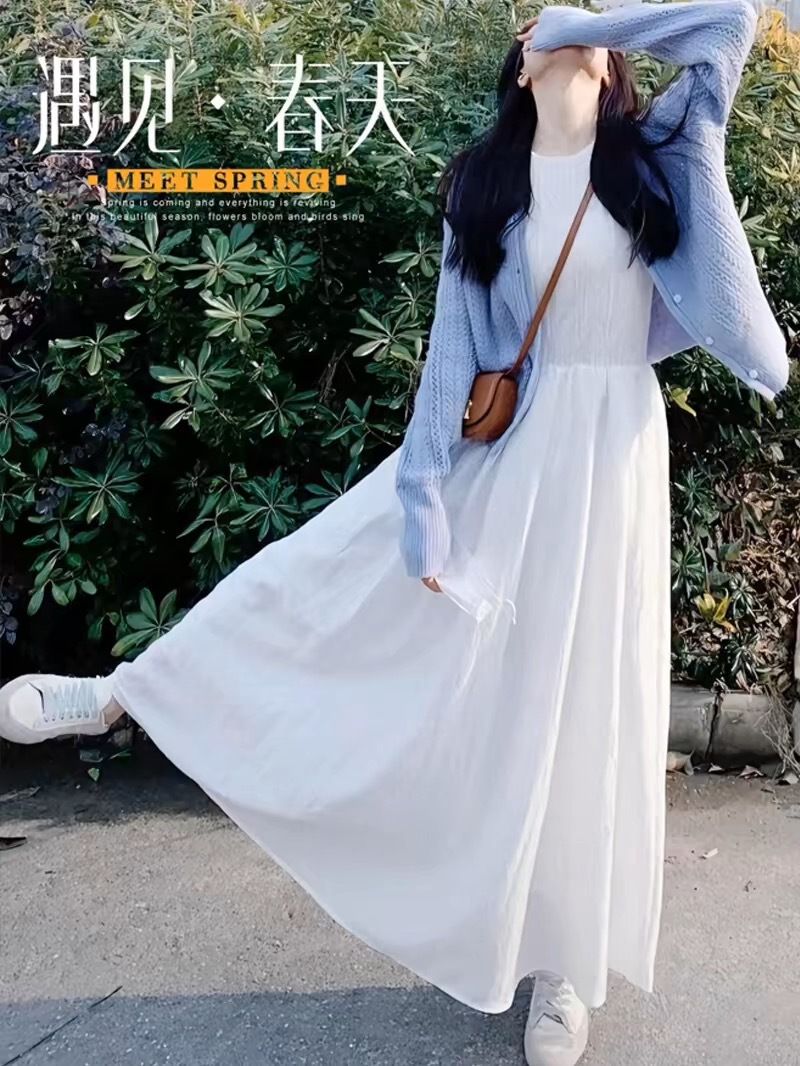 2024 이른 봄 여성의 첫사랑 세트 순수한 우유 달콤한 세트 흰색 허리 꽉 기질 원피스