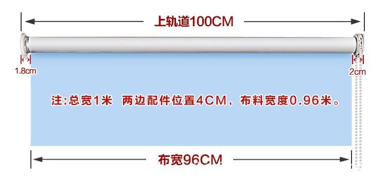 收到的卷帘布要比安装尺寸小3.5-4CM,因为还要加上二边安装码的尺寸,比如你报1米尺寸,收到的布是0.96
