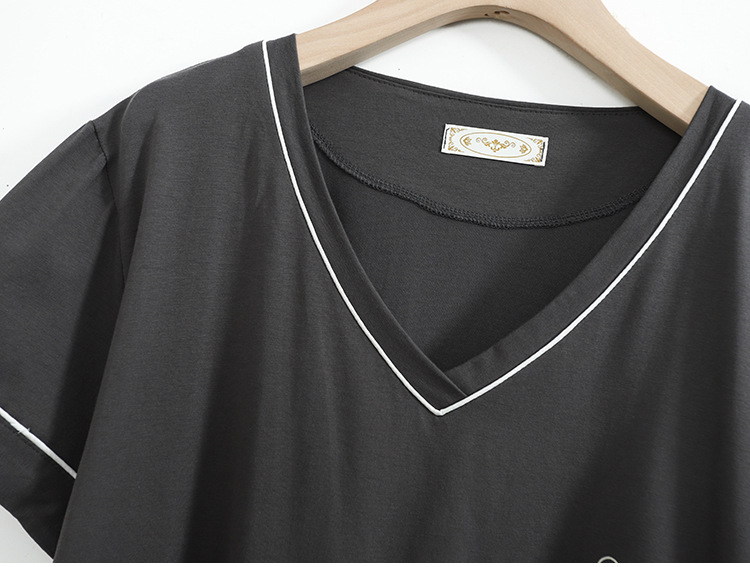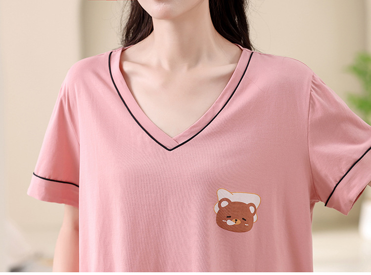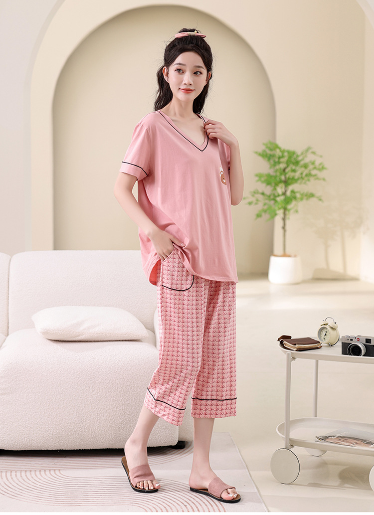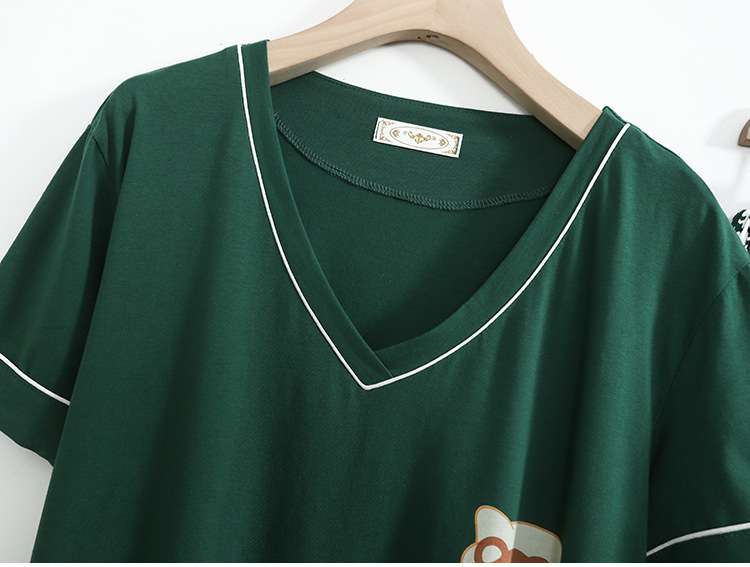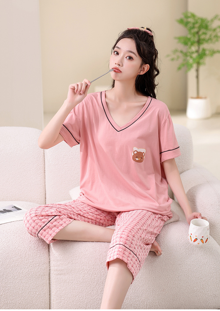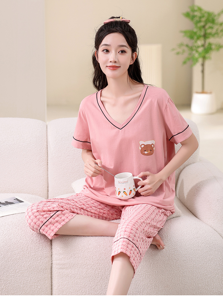 여름 플러스 사이즈 만화 홈웨어 여성용 프린트 파자마 반팔 크롭 팬츠 얇은 V 넥 느슨한 투피스 세트스토어 가기