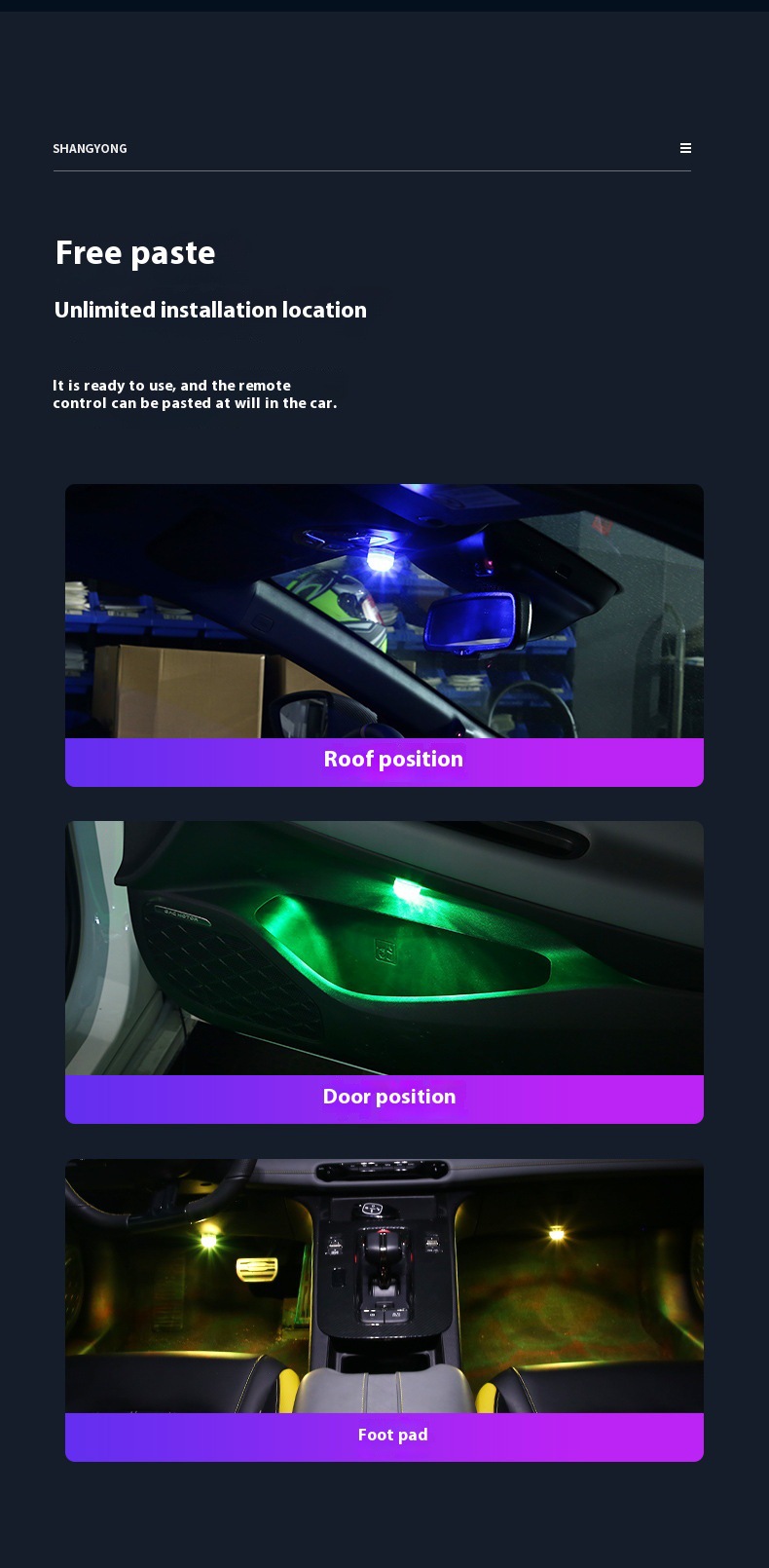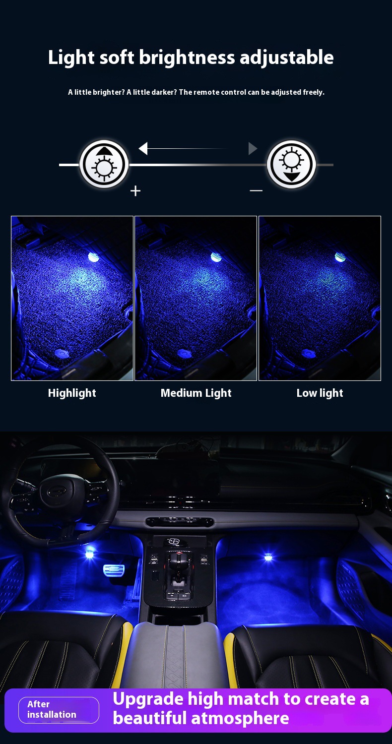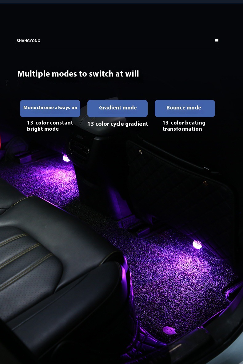 자동차 범용 LED 분위기등, 풋라이트, 장식등, 차량용 무선 다채로운 조명, 차량 내부 조명