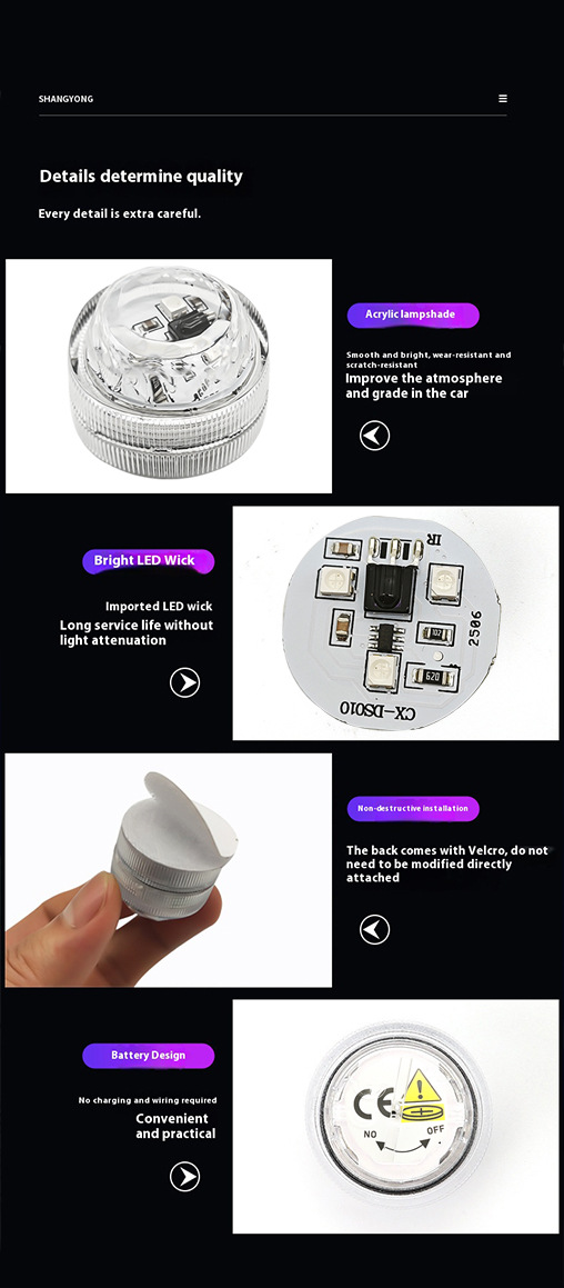 자동차 범용 LED 분위기등, 풋라이트, 장식등, 차량용 무선 다채로운 조명, 차량 내부 조명스토어 가기