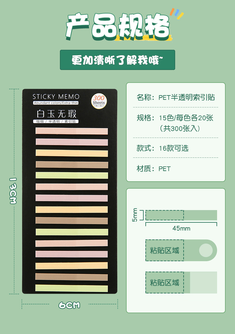300 조각 반투명 매우 미세한 PET 인덱스 스티커 색상 분류 마크 스티커 스티커 스티커 스티커 스티커 스티커