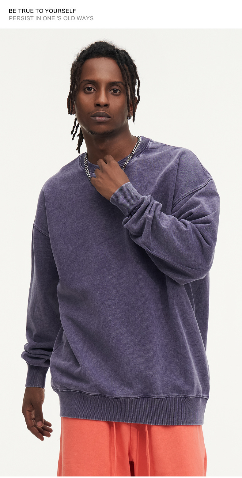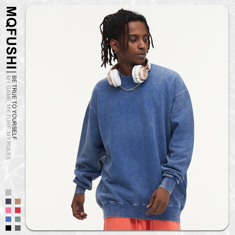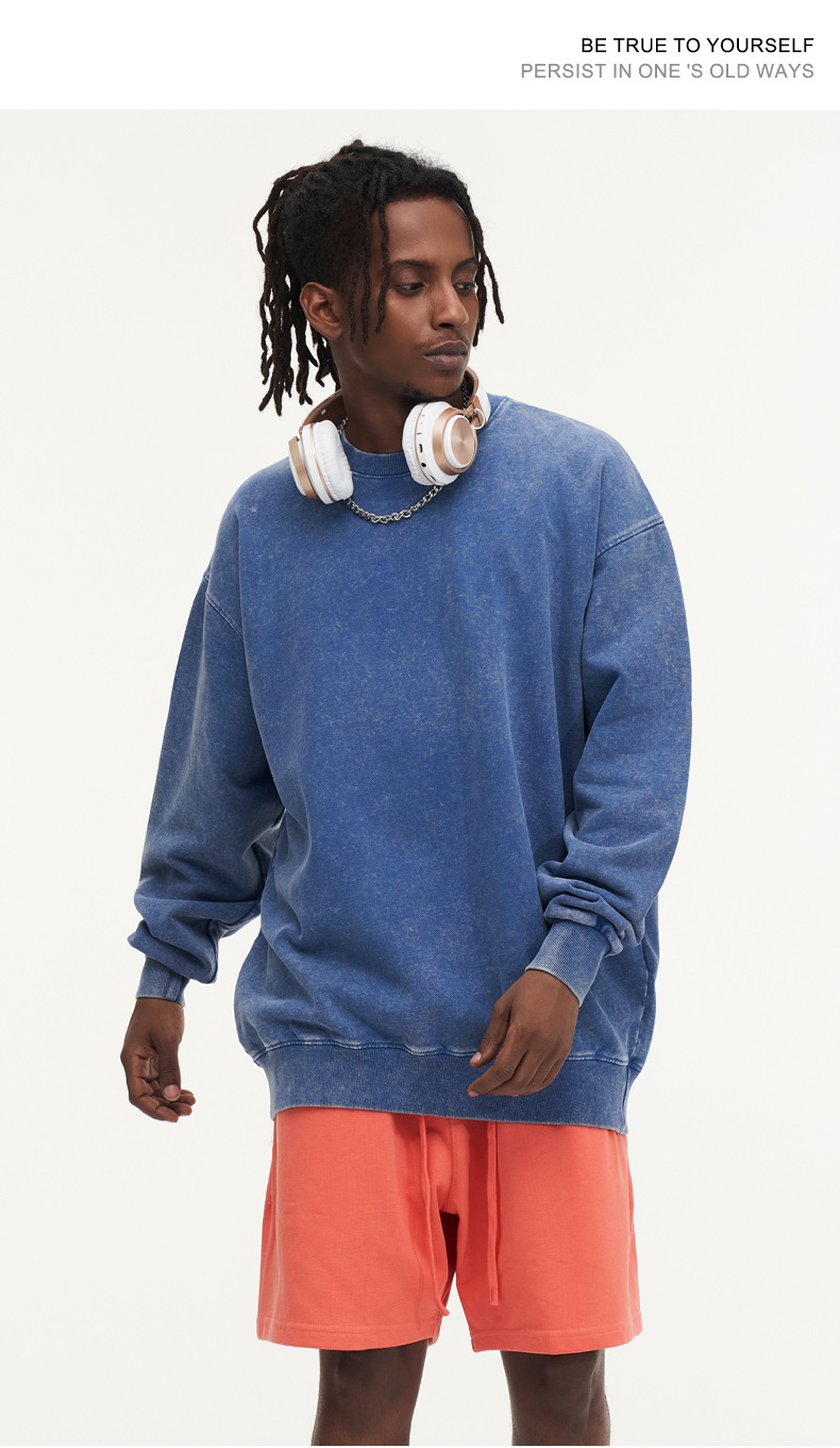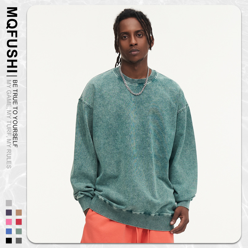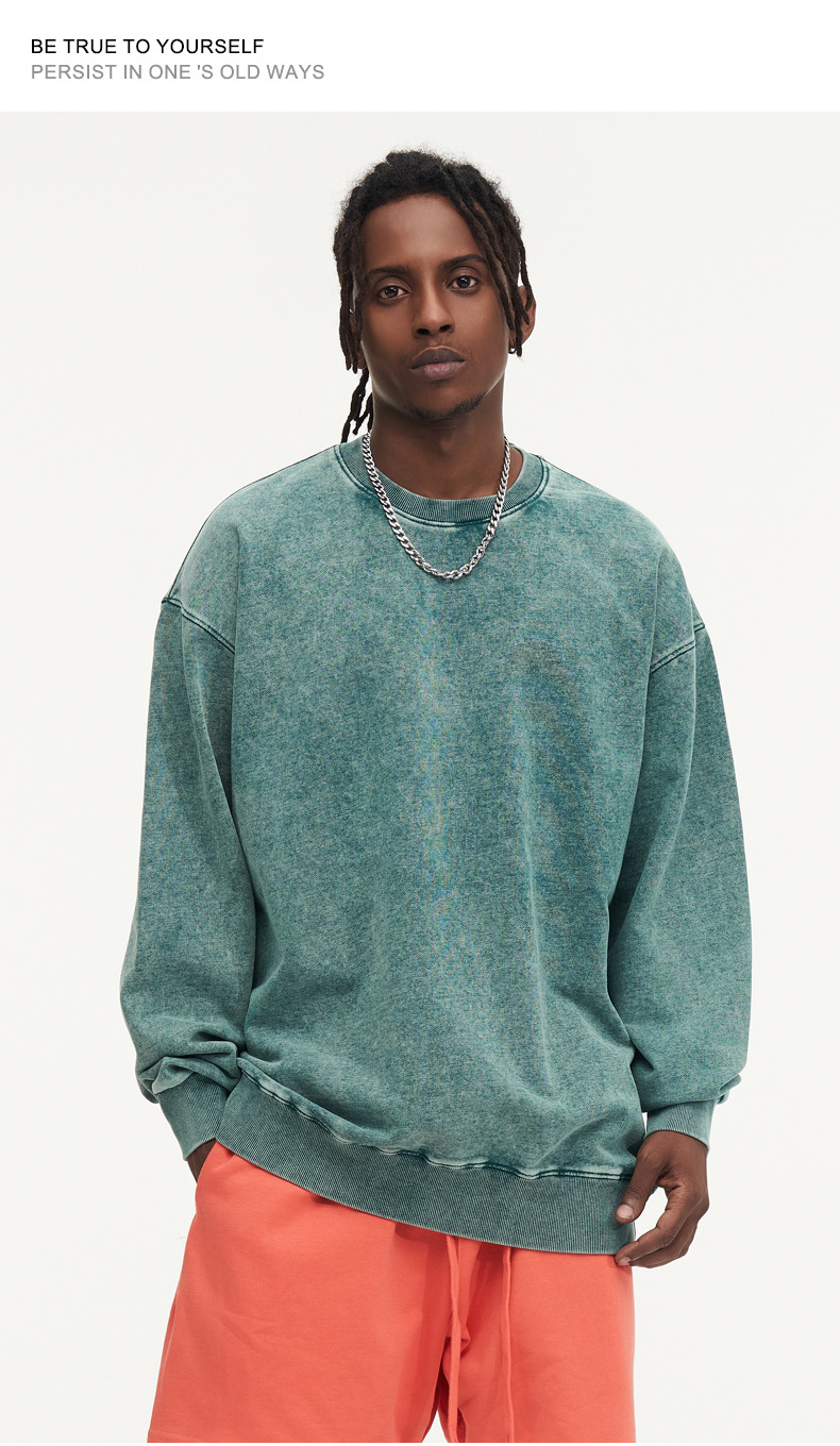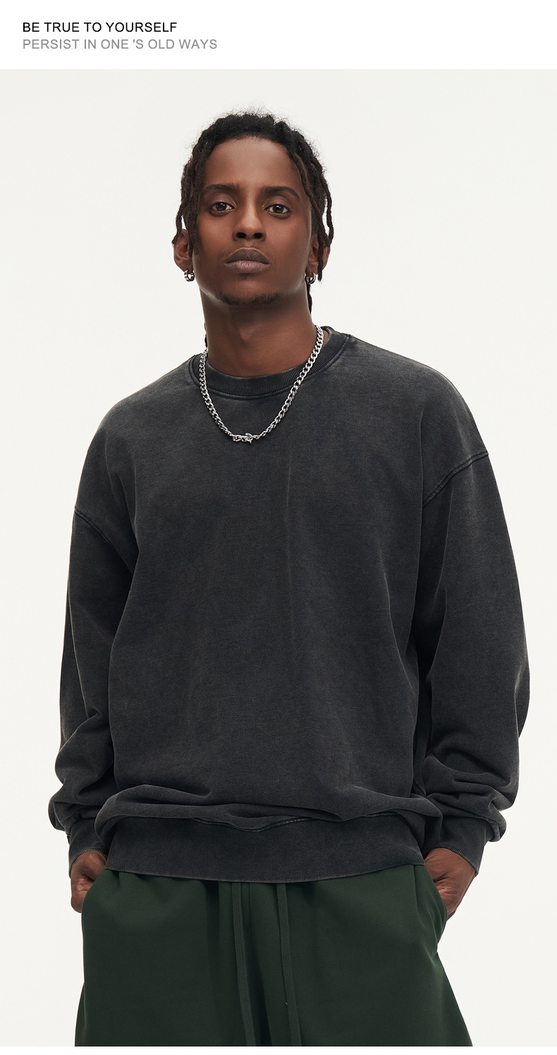 봄가을 425g 순면 왁스염색 워싱 빈티지 라운드넥 스웨트셔츠 루즈핏 블랙 풀오버 남성 유럽 사이즈 커플룩스토어 가기