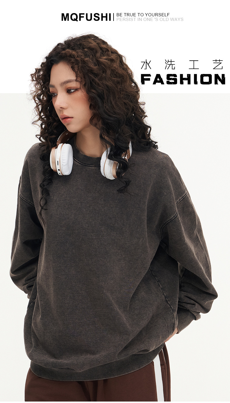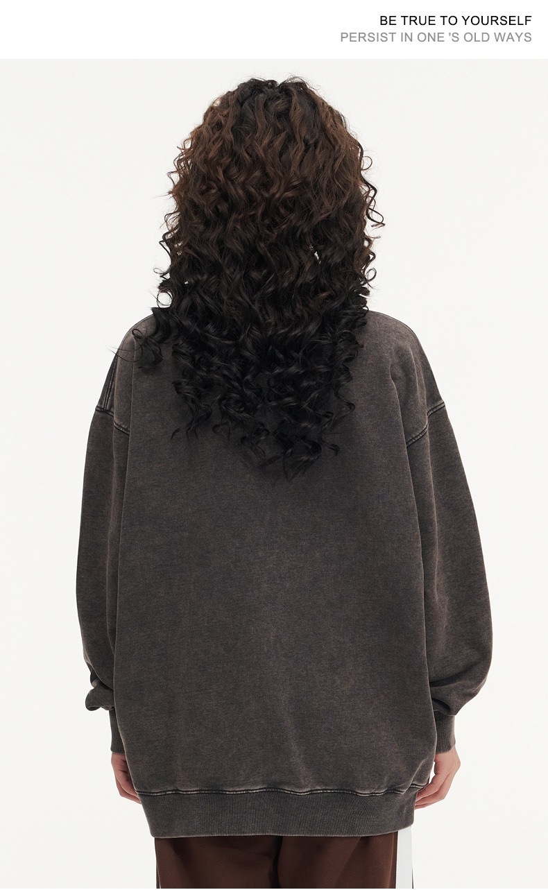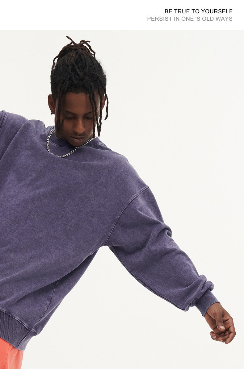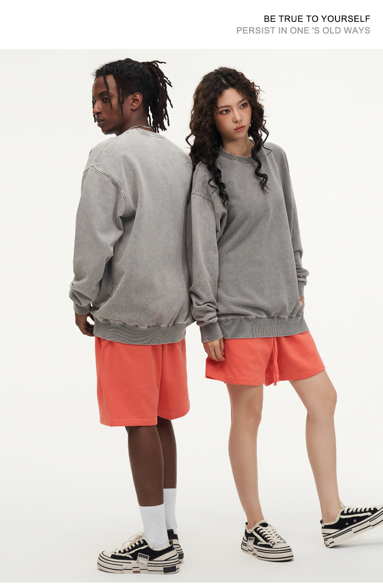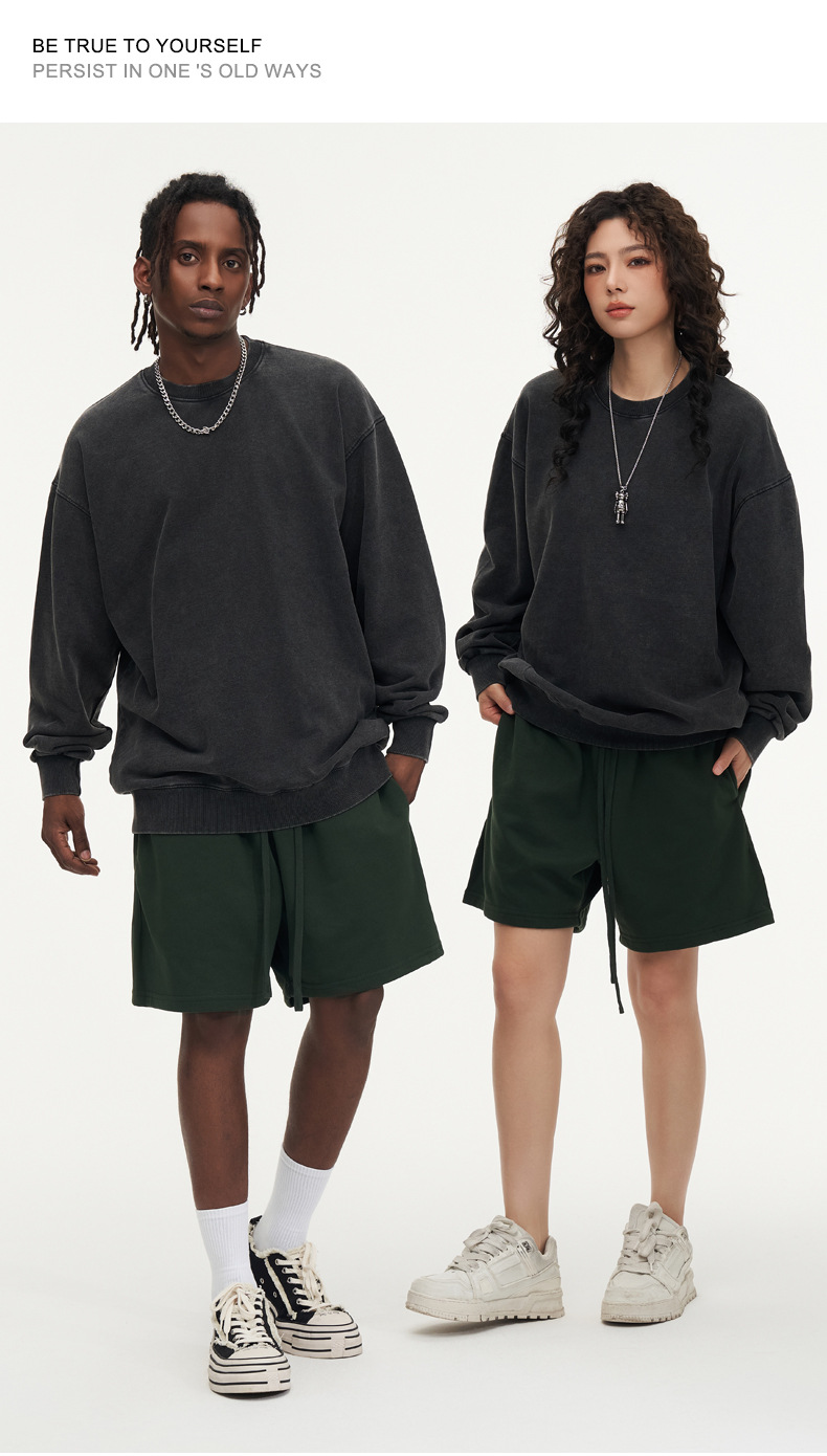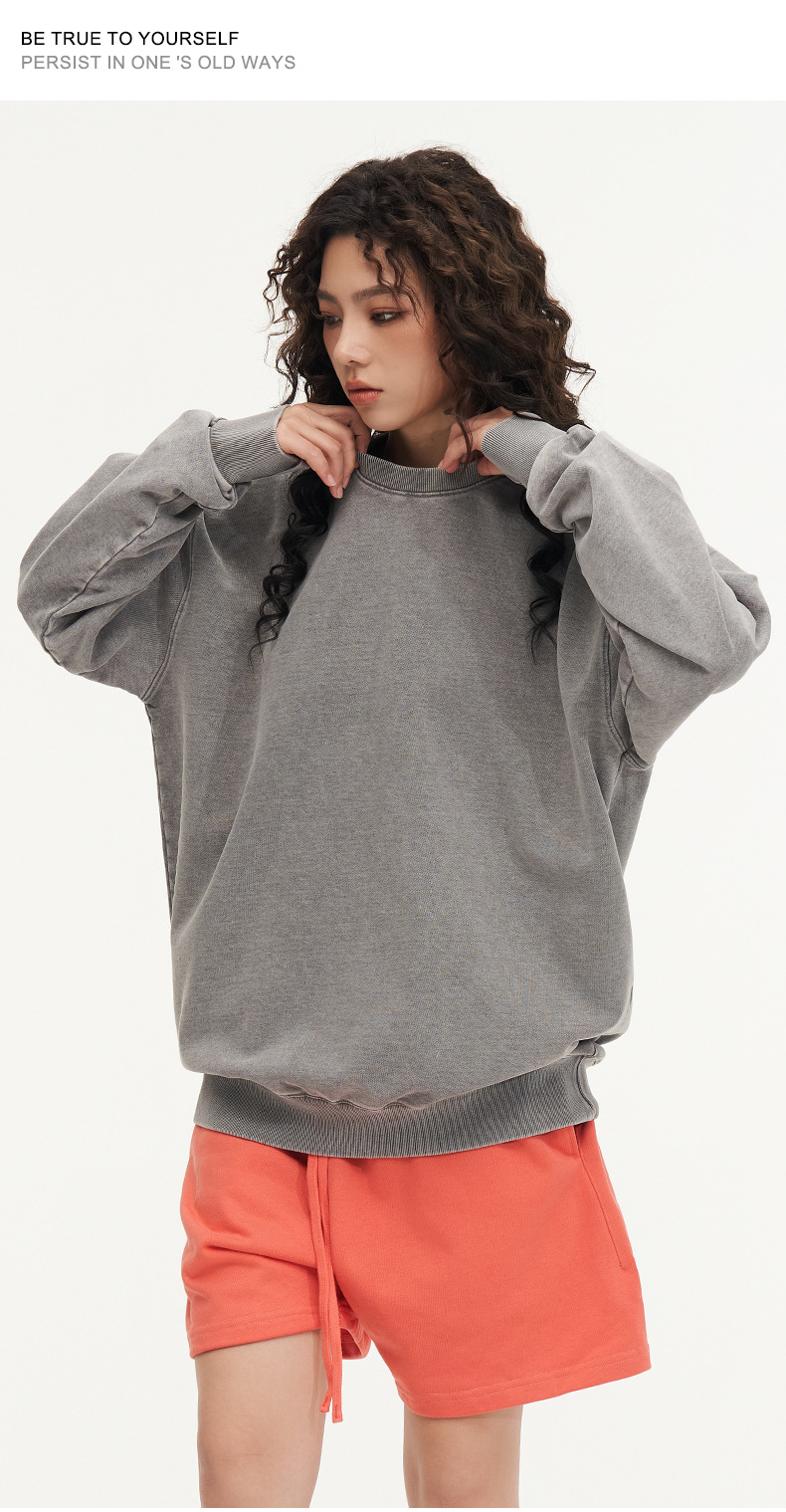 봄가을 425g 순면 왁스염색 워싱 빈티지 라운드넥 스웨트셔츠 루즈핏 블랙 풀오버 남성 유럽 사이즈 커플룩스토어 가기