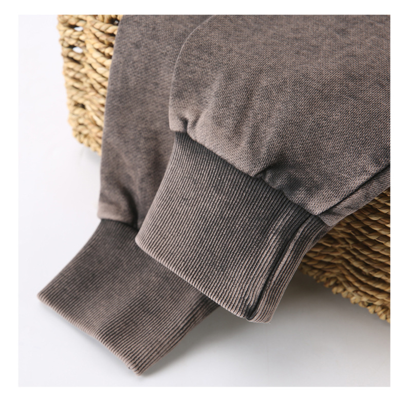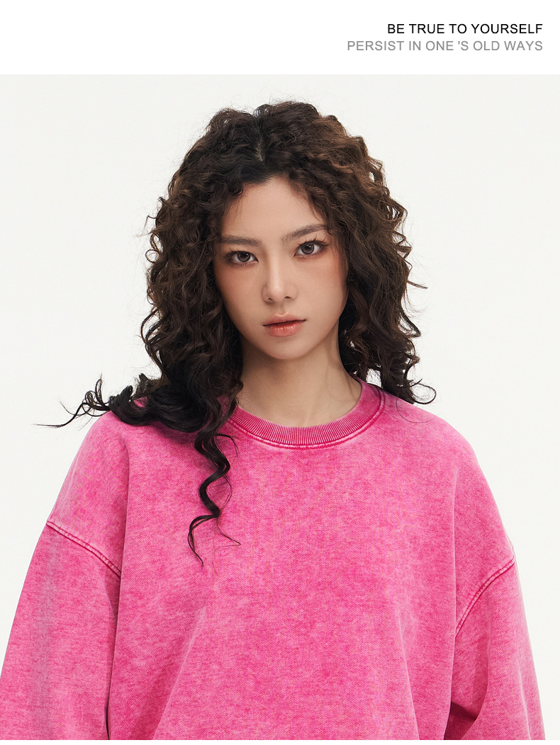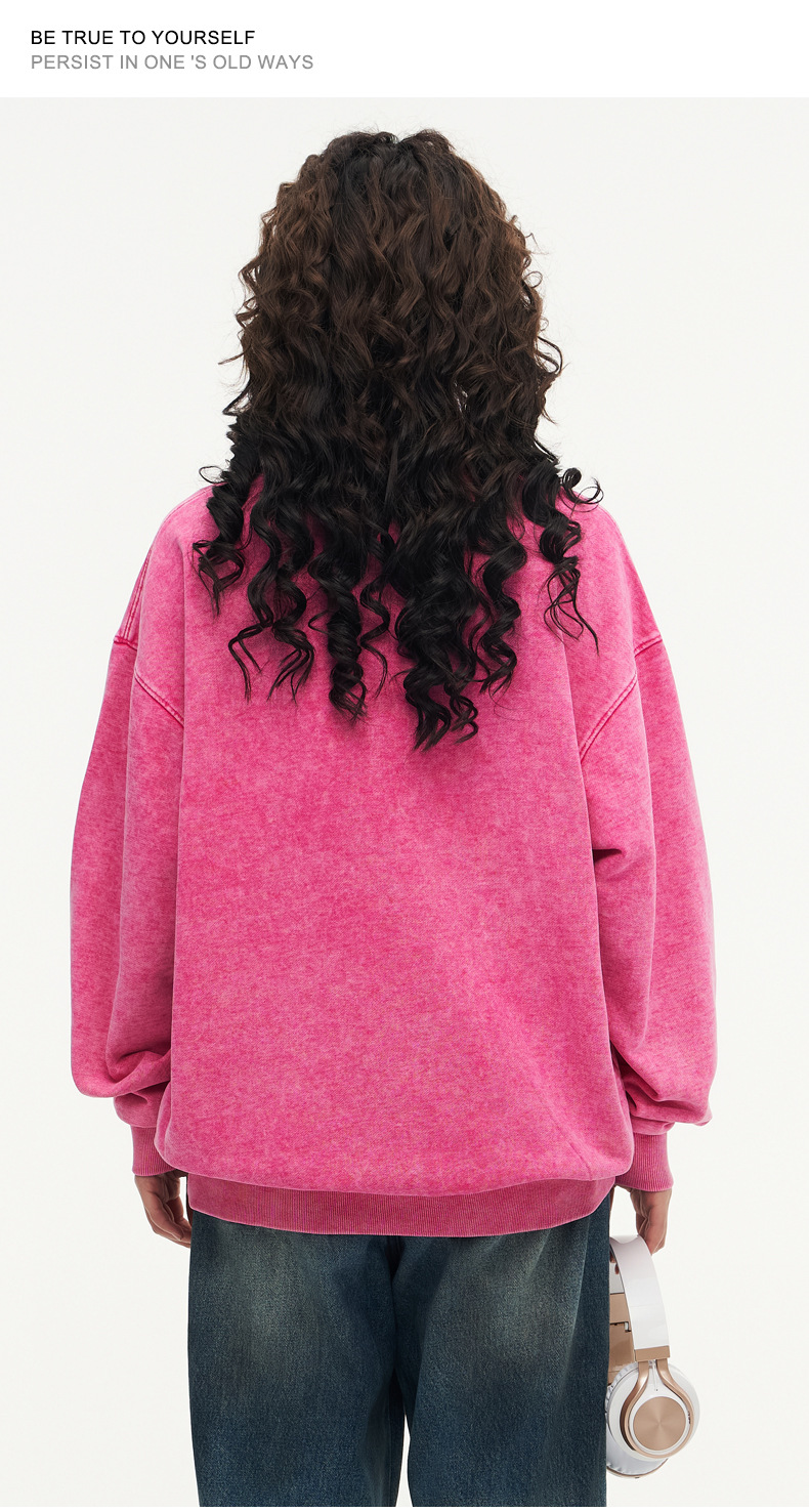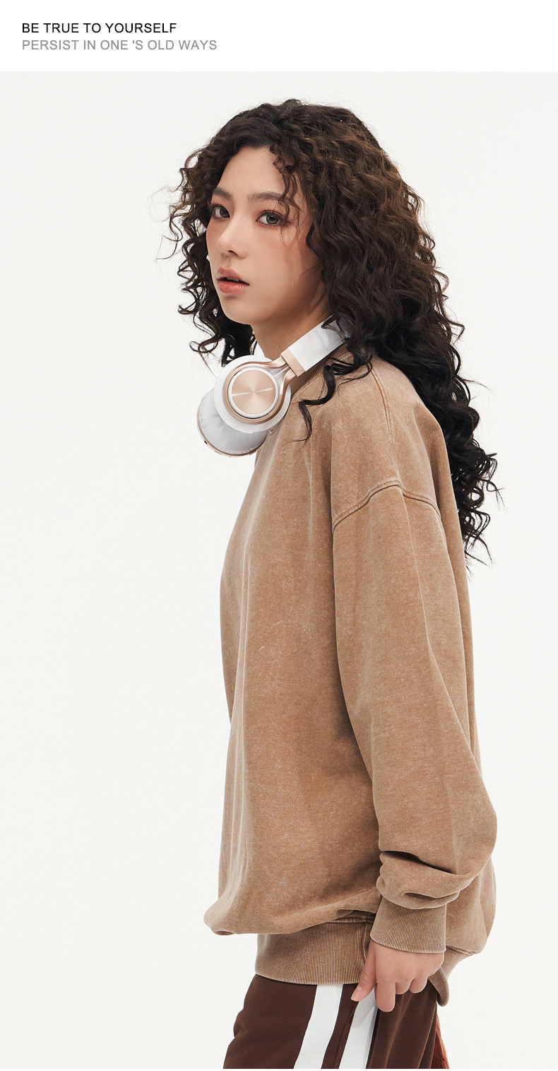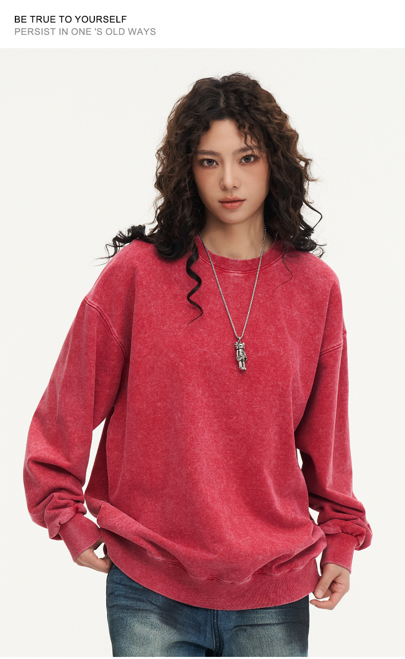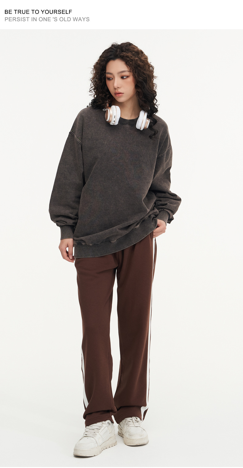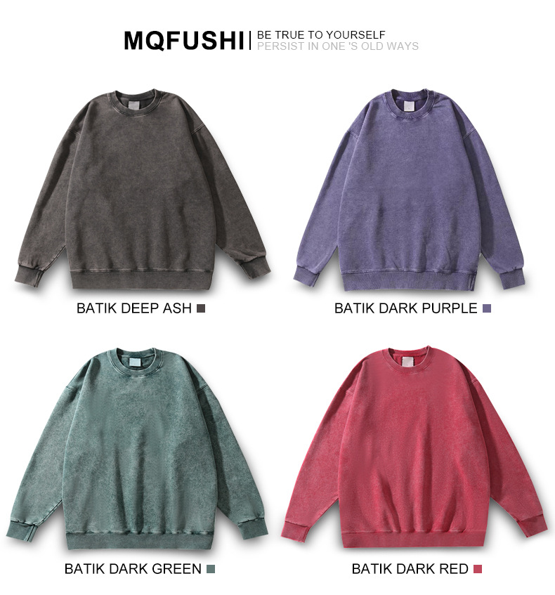 봄가을 425g 순면 왁스염색 워싱 빈티지 라운드넥 스웨트셔츠 루즈핏 블랙 풀오버 남성 유럽 사이즈 커플룩스토어 가기