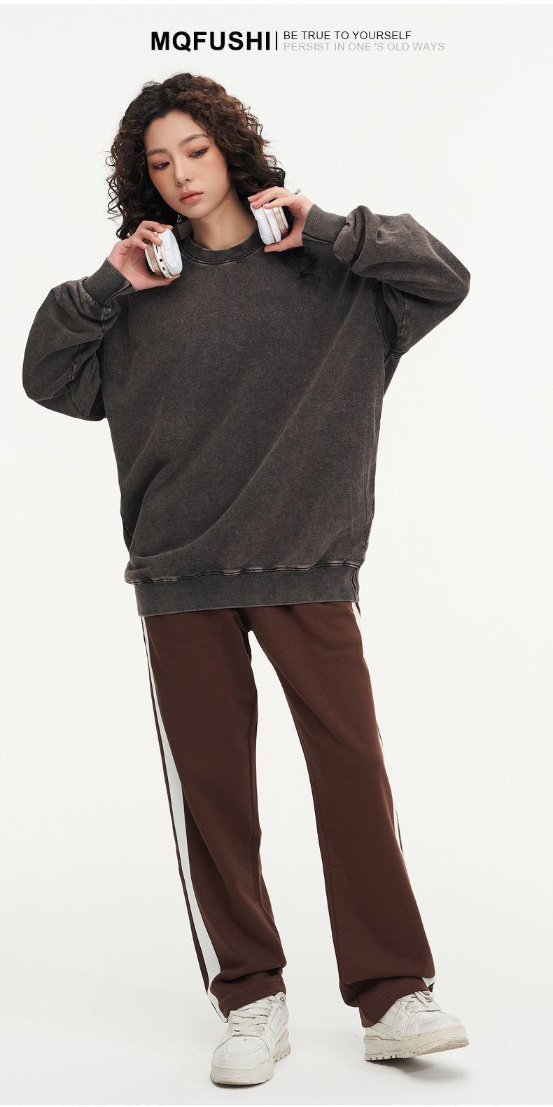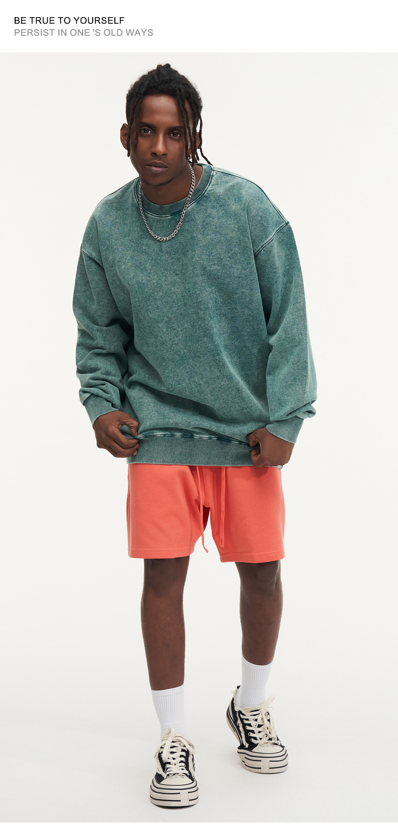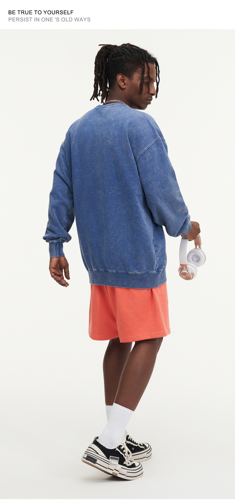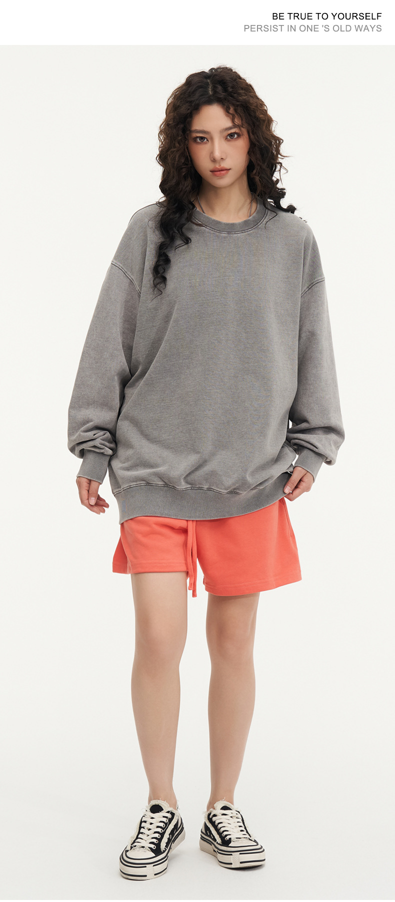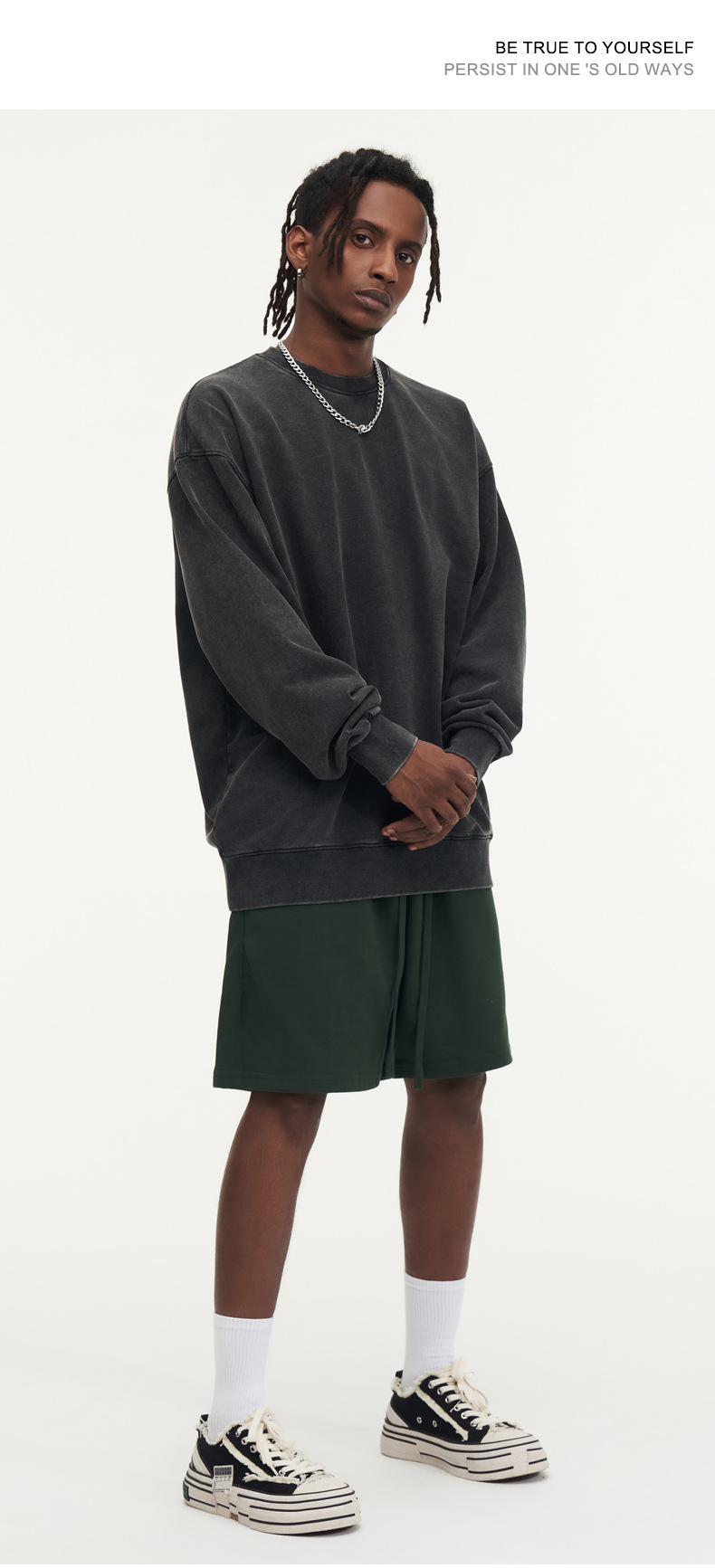 봄가을 425g 순면 왁스염색 워싱 빈티지 라운드넥 스웨트셔츠 루즈핏 블랙 풀오버 남성 유럽 사이즈 커플룩스토어 가기