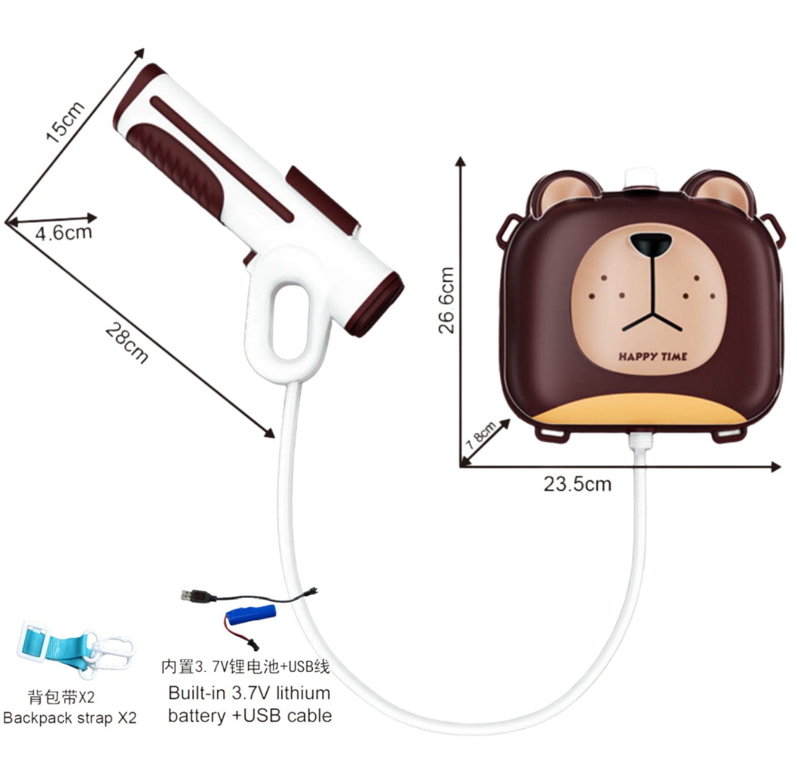 | 产品名称 | 电动背包水枪 | 外箱规格 | 83*58*71 |
