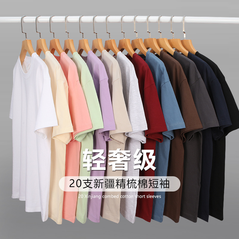 여름 남자 230g 헤비 코튼 반팔 티셔츠 남성용 느슨한 단색베이스 셔츠 패션 브랜드 티셔츠 화이트 의류스토어 가기