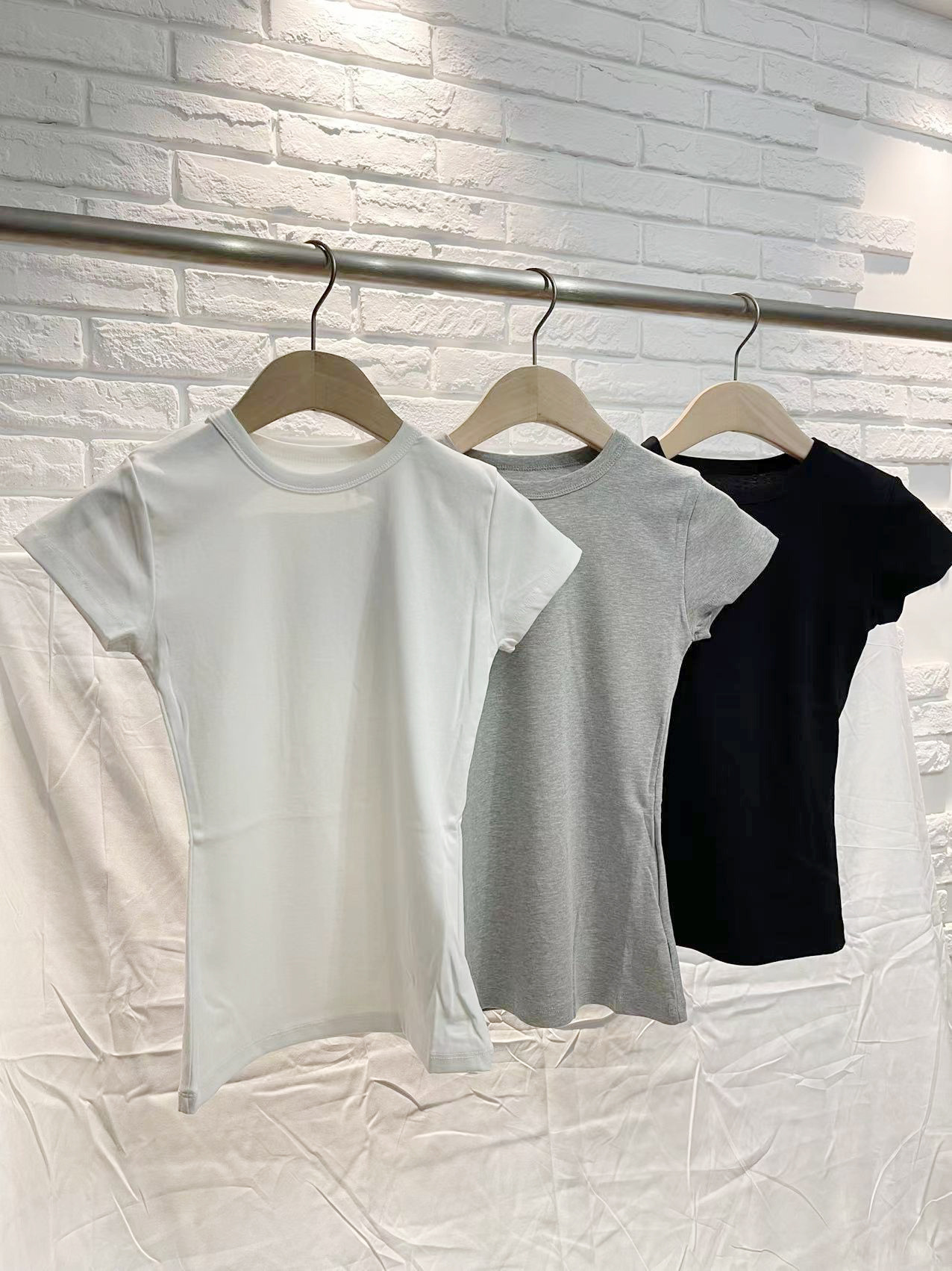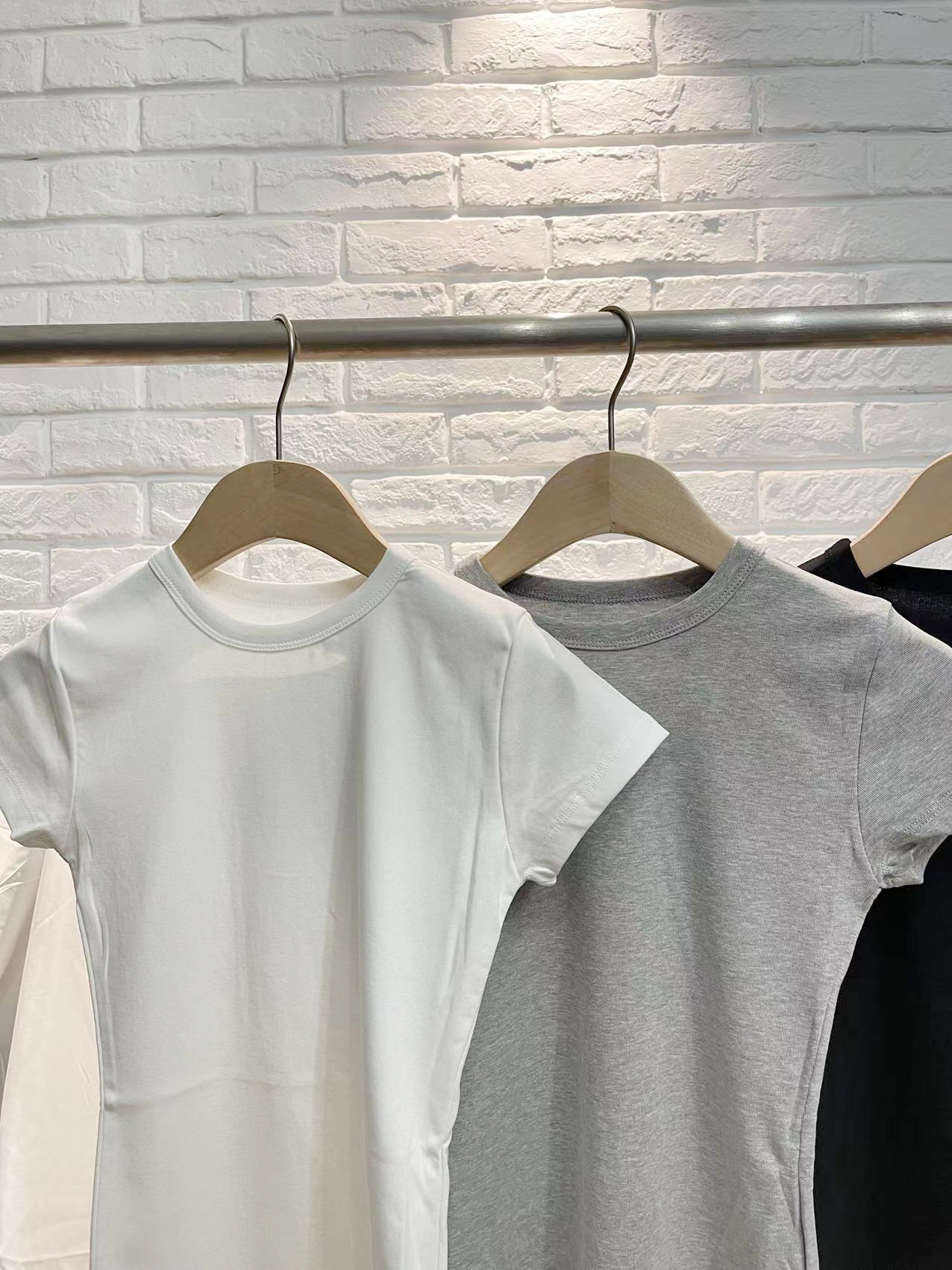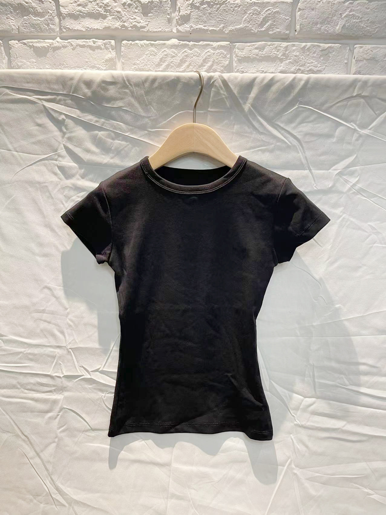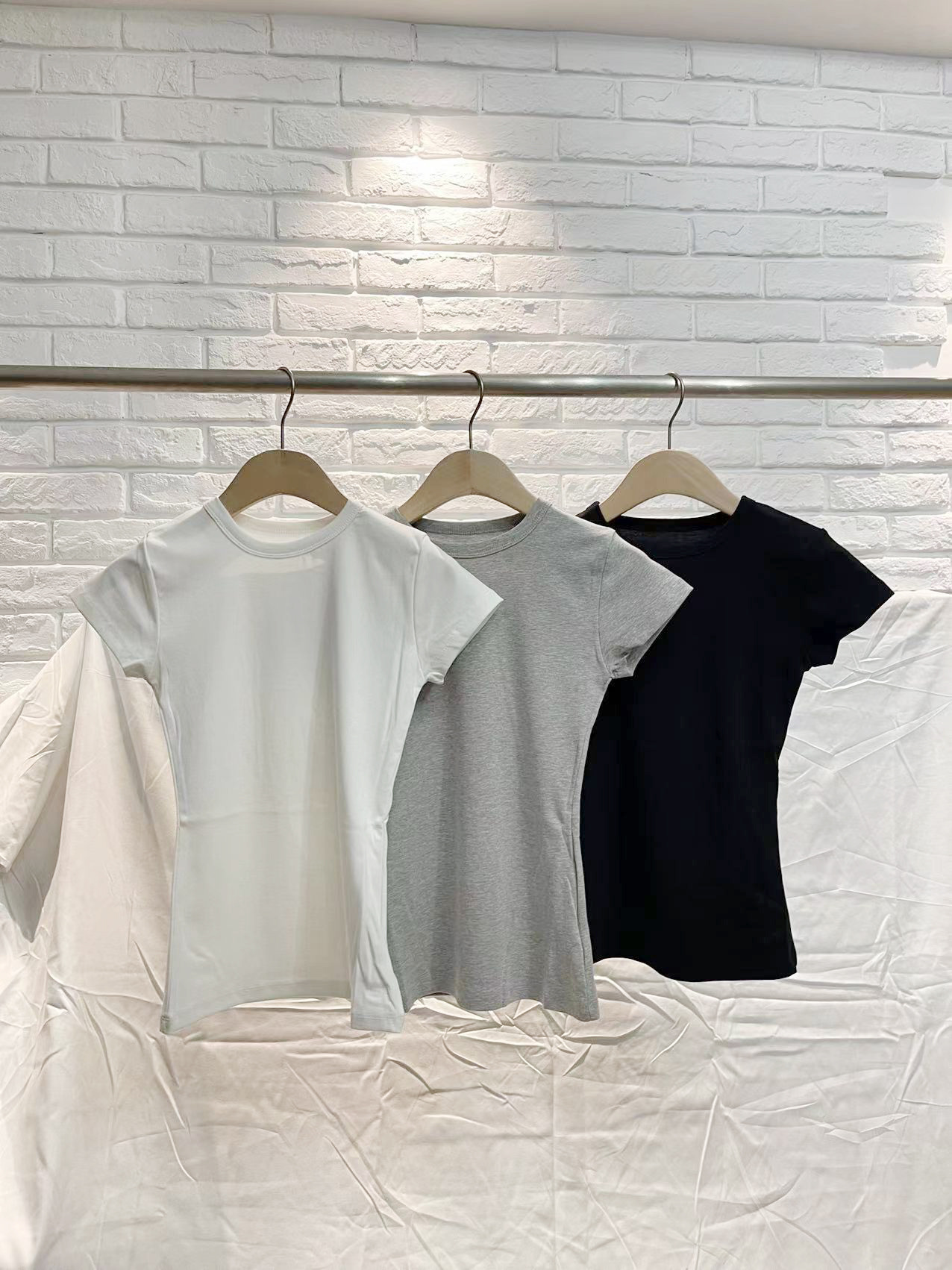 틈새 alrigh*t 기본 오른쪽 어깨 슬림 반팔 코튼 티셔츠 여성 클린핏 봄 여름 라운드 넥 자수 탑