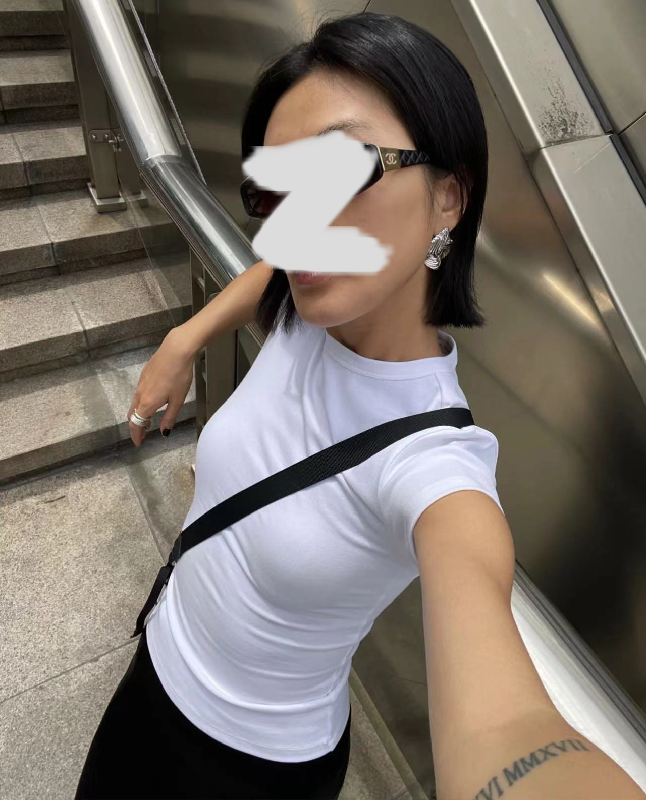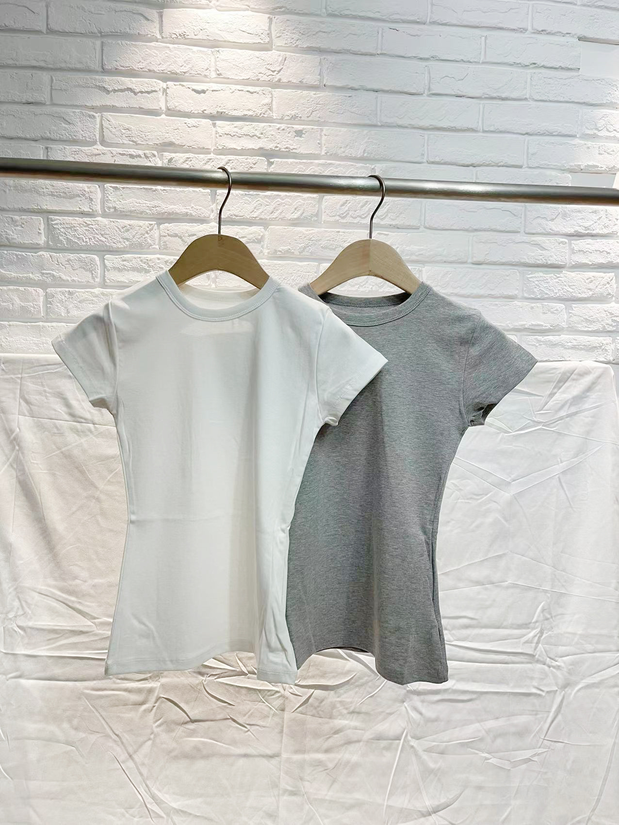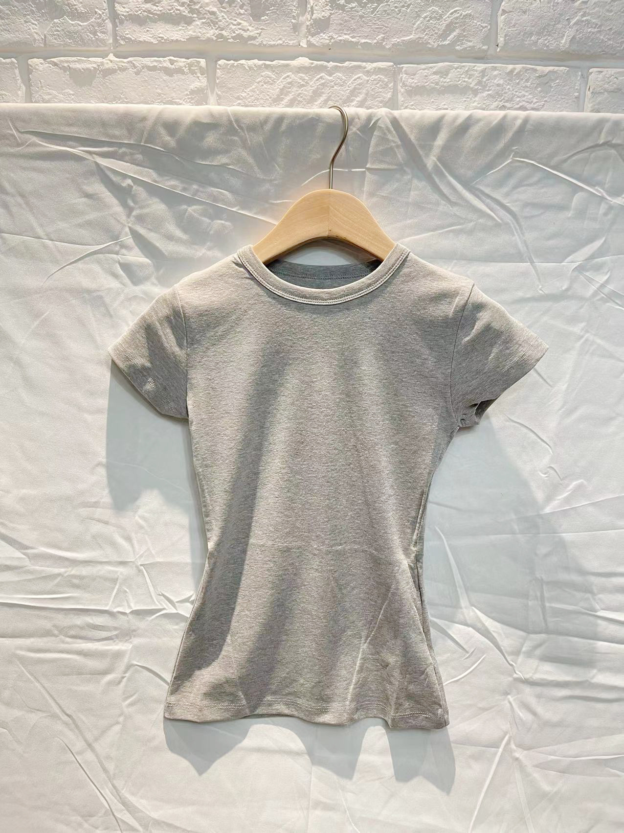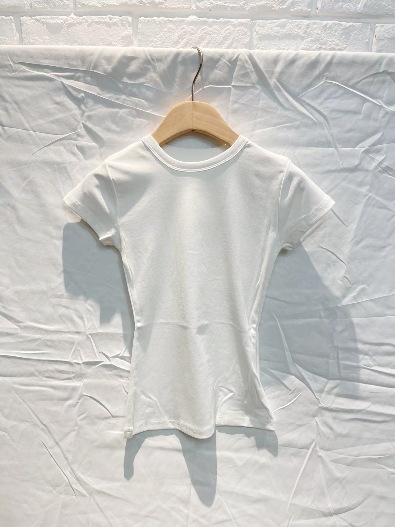 틈새 alrigh*t 기본 오른쪽 어깨 슬림 반팔 코튼 티셔츠 여성 클린핏 봄 여름 라운드 넥 자수 탑