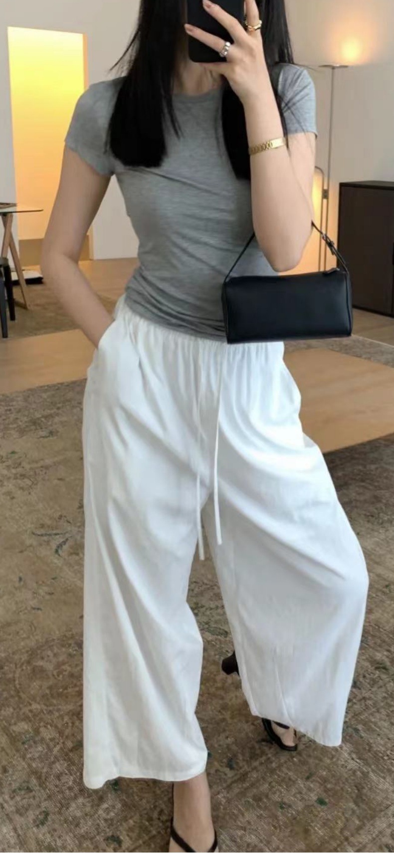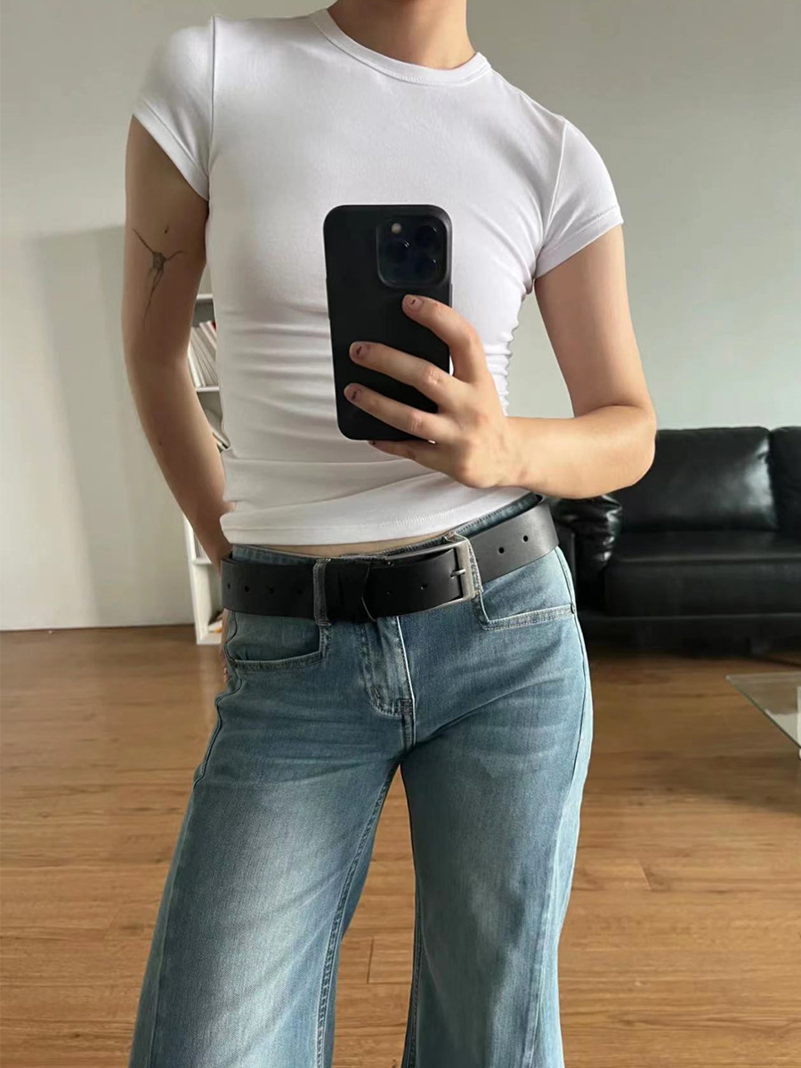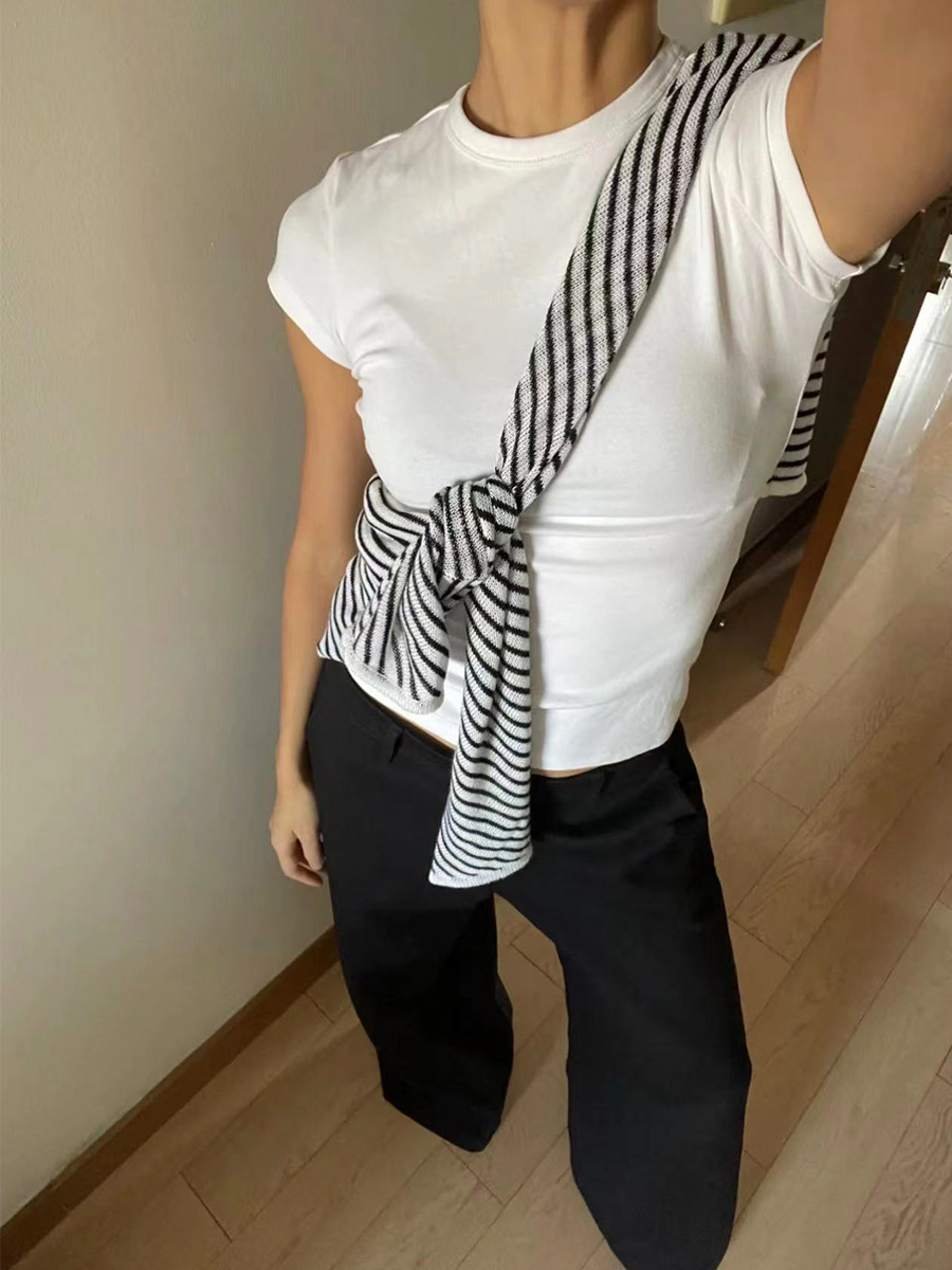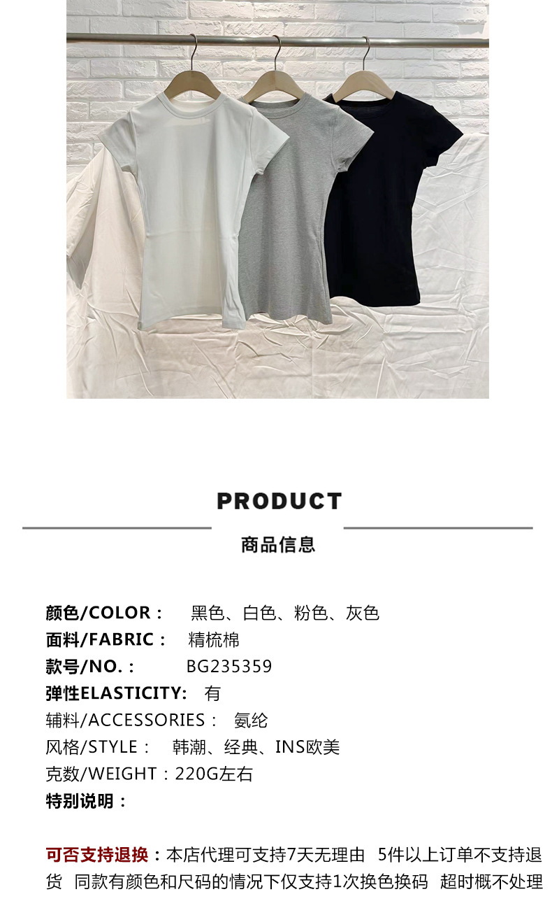 틈새 alrigh*t 기본 오른쪽 어깨 슬림 반팔 코튼 티셔츠 여성 클린핏 봄 여름 라운드 넥 자수 탑