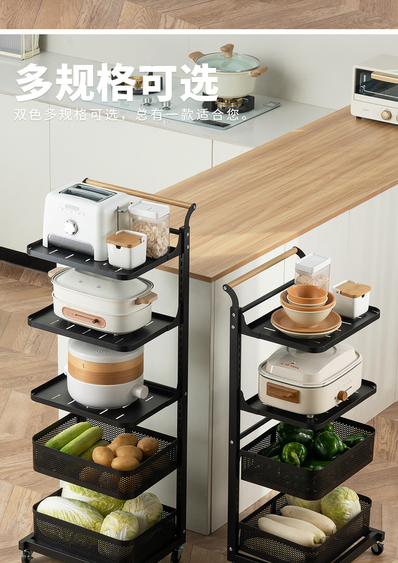 주방 보관 선반 가정용 바닥 냄비 랙 다층 과일 및 야채 바구니 트롤리 다기능 냄비 보관 랙