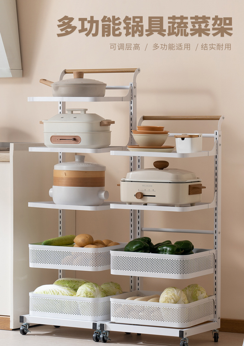 주방 보관 선반 가정용 바닥 냄비 랙 다층 과일 및 야채 바구니 트롤리 다기능 냄비 보관 랙스토어 가기