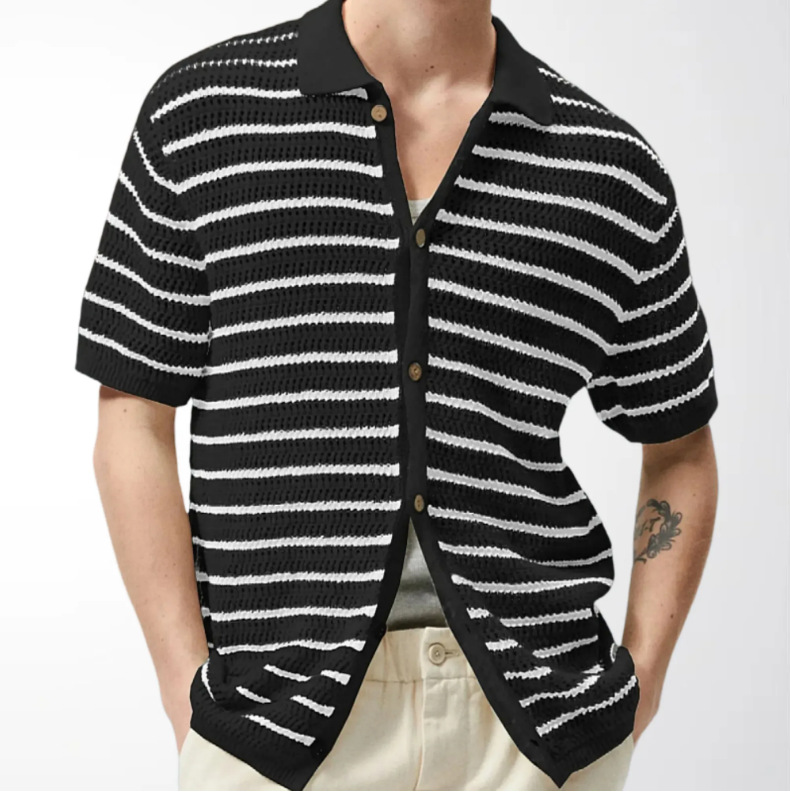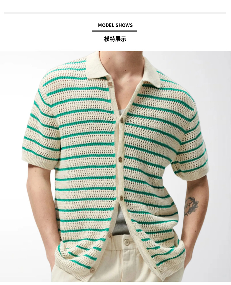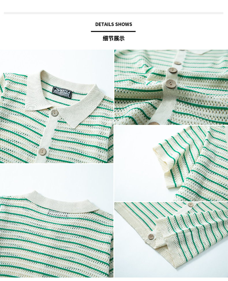 유럽과 미국의 국경 간 남성 의류 아마존 여름 새로운 니트웨어 줄무늬 모직 캐주얼 폴로 셔츠 남성 SY0208스토어 가기