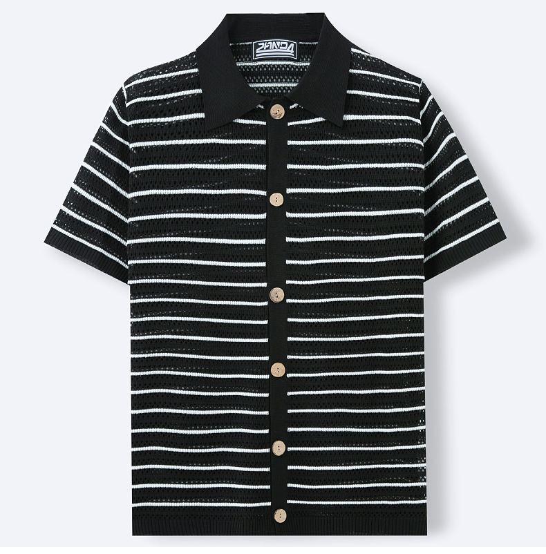 유럽과 미국의 국경 간 남성 의류 아마존 여름 새로운 니트웨어 줄무늬 모직 캐주얼 폴로 셔츠 남성 SY0208