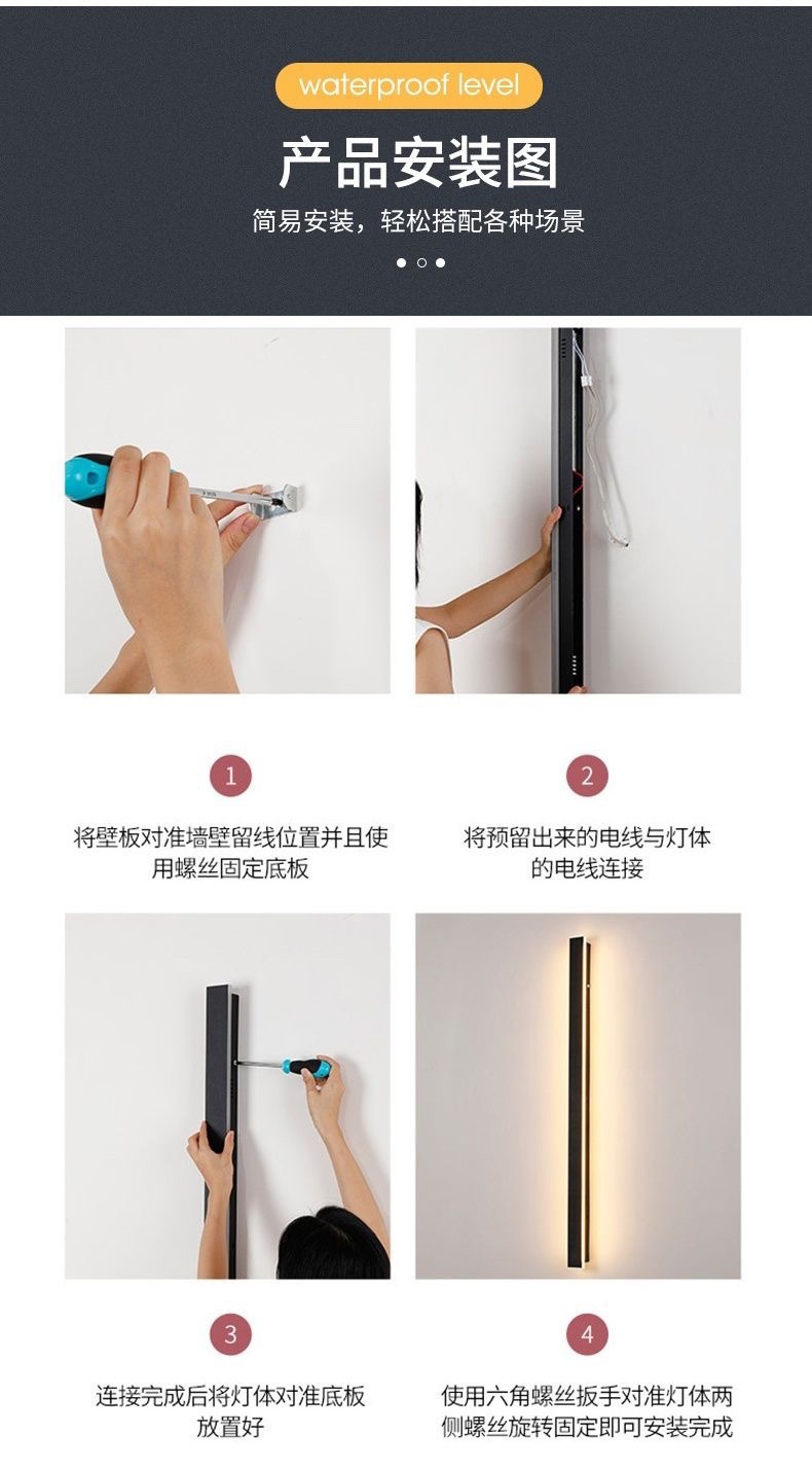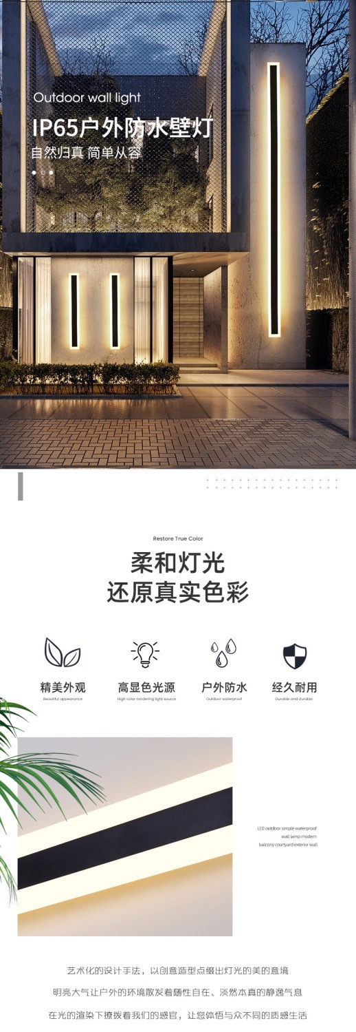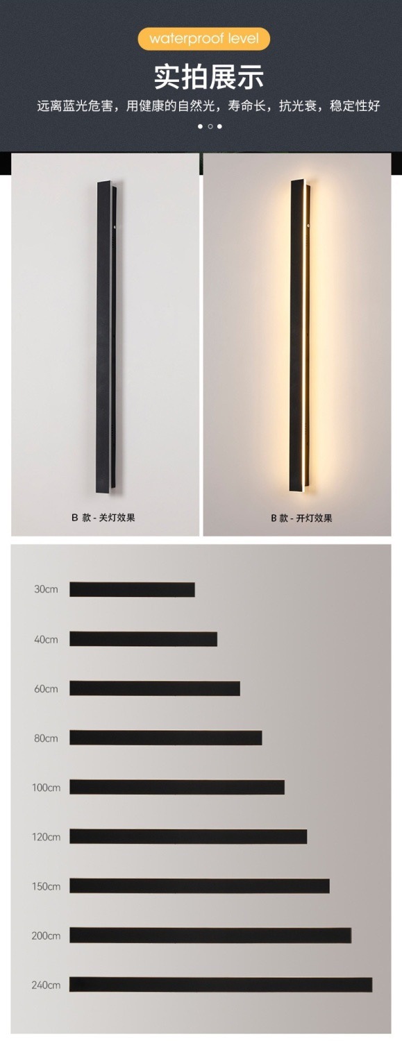 야외 벽 램프 긴 방수 LED 현대 간단한 단어 빌라 안뜰 거실 침실 머리맡 범용 벽 램프스토어 가기