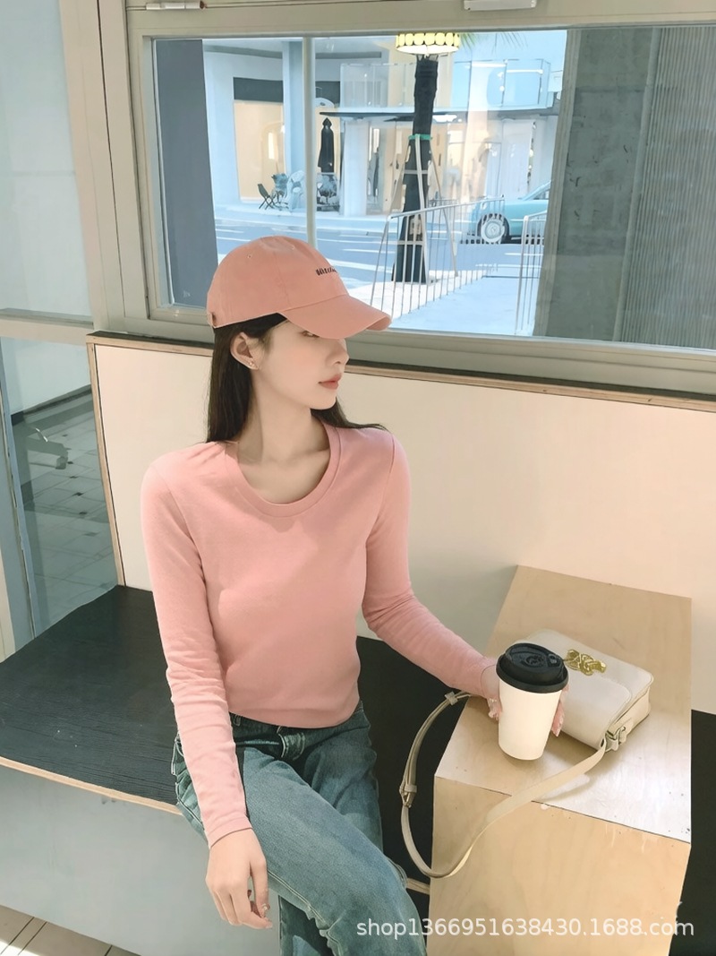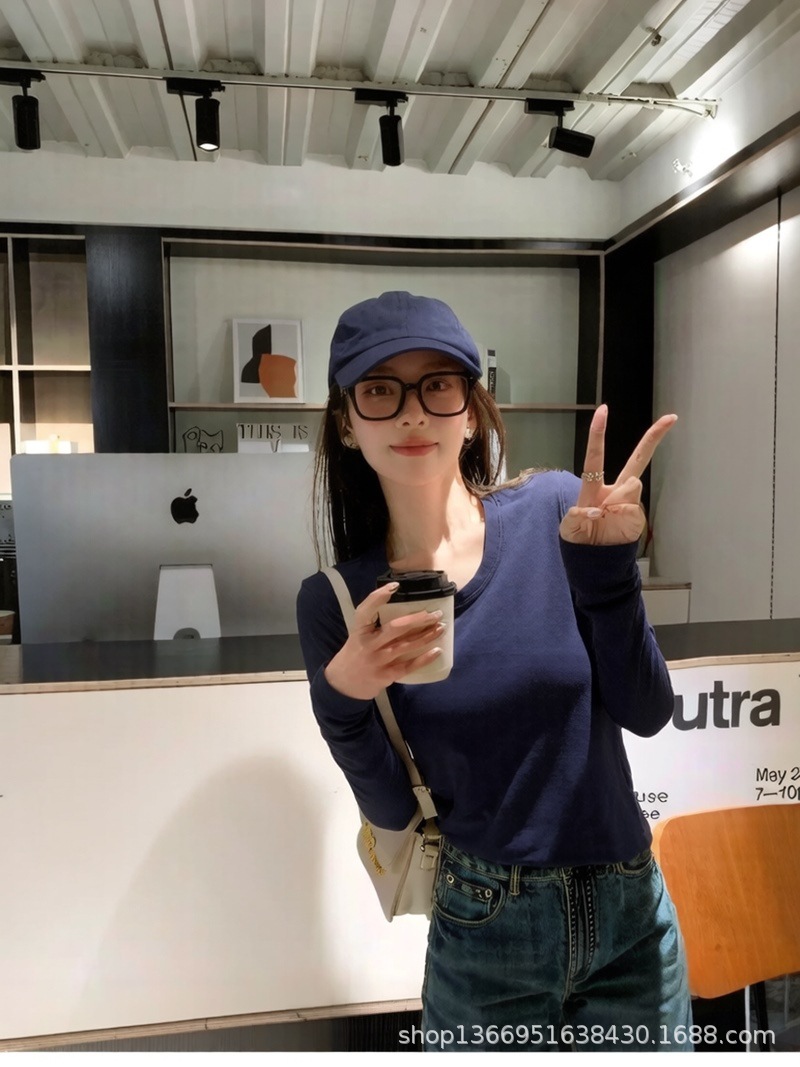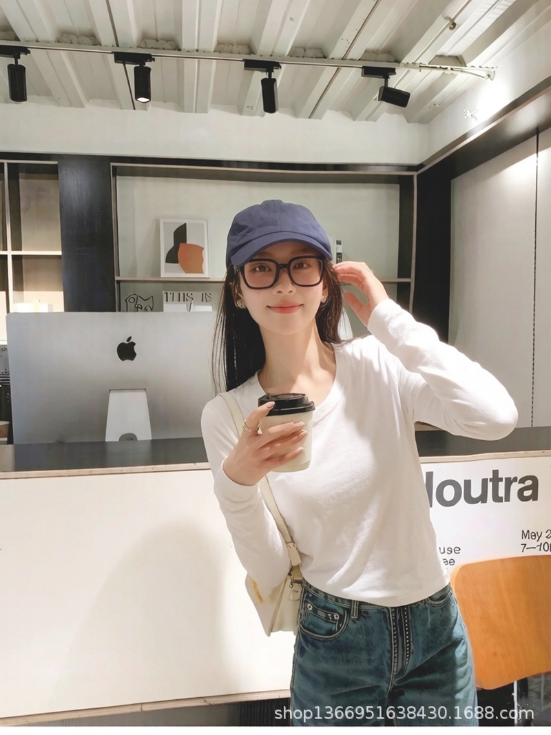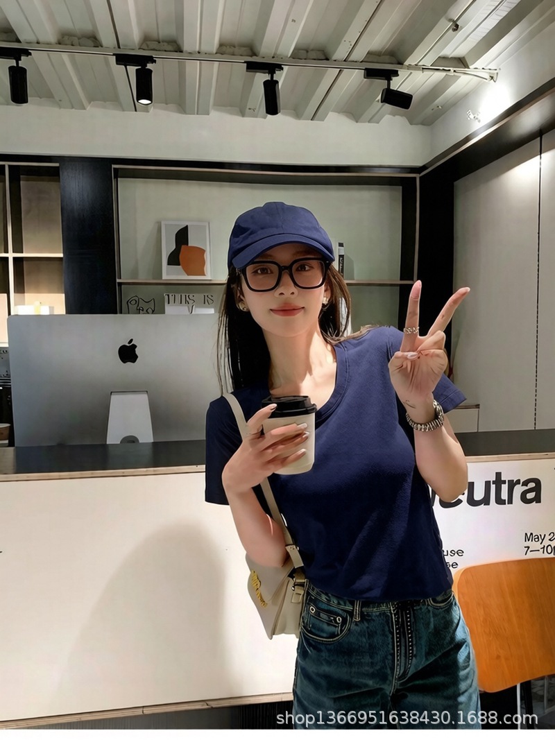 여름 무거운 수입 페루면 둥근 목 반팔 티셔츠 여성용 흰색면 슬림 한국식 어깨 슬리밍 작은 U 칼라스토어 가기