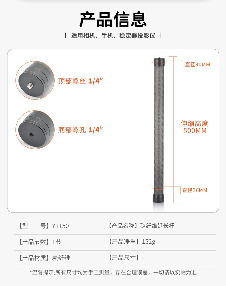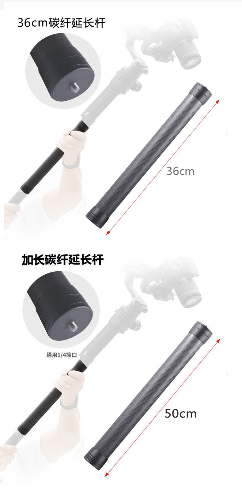 50cm 탄소섬유 연장봉, 범용 안정기, 연장봉, 핸드헬드 촬영, 파노라마 비디오, Vlog 촬영봉