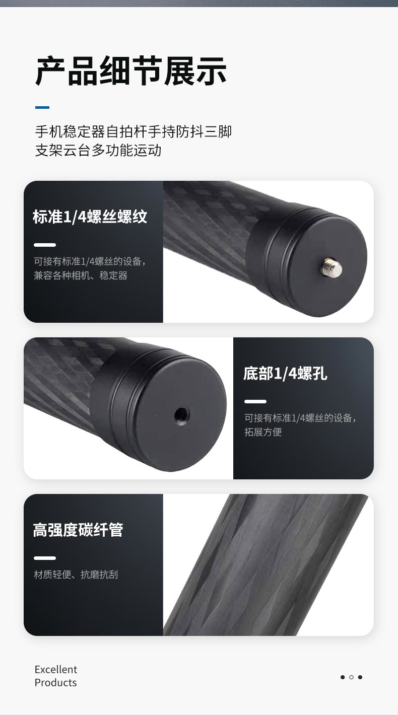50cm 탄소섬유 연장봉, 범용 안정기, 연장봉, 핸드헬드 촬영, 파노라마 비디오, Vlog 촬영봉스토어 가기